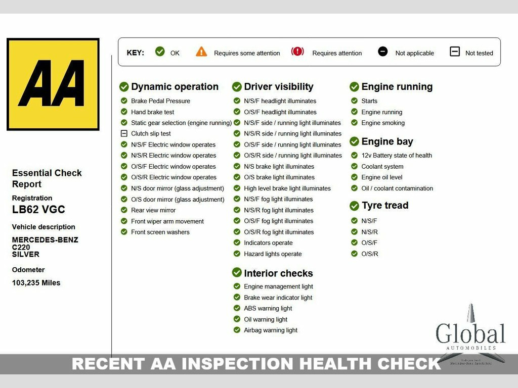 Buy with confidence from an Award Winning Independent Mercedes-Benz Specialist! We are delighted to offer our beautiful Mercedes C Class C220 CDi "Executive SE" Automatic Diesel saloon finished in the highly popular "Metallic Iridium Silver" and fitted with an Anthracite Leather interior (Heated / Electric) with matching door cards. Competitively Priced and just had a Major Service B performed including the all important Automatic Transmission Service. This Mature Owned vehicle is a "Facelift Model" and is supplied with its Original Manuals, Mercedes-Benz and Specialist Service History Record, Two Keys, MOT until October 2026, HPI Clearance Certificate and a Full and current V5 Logbook. The Specification; Heated Leather Interior (Electrically Operated), Parking Guidance (Front / Rear - Acoustic and Visual Parking Sensors), Cruise Control, Interior / Exterior Automatically Dimming Mirrors, Audio 20 Media System; Becker Navigation Preparation, Bluetooth Telephone and Audio Streaming, CD Player, FM/AM Radio and Auxiliary Input. Dual Zone Climate Control with Air Conditioner, Avantgarde Suspension, Tyre Pressure Loss Warner, Automatic Seat Belt Status Indication, Power Folding Electric Mirrors, Automatic Child Seat Recognition, Isofix Child Seat Points In Rear, Electric Windows, Cup Holder, Rear Armrest with Storage with Cup Holders, Front Armrest with Storage plus many more features. We supply a complimentary warranty. This vehicle is a joy t 17in Alloy Wheels - 5 Twin Spoke Design, Airbags - Rear Sidebags, Ashtray and Cigarette Lighter, Becker Map Pilot Navigation System, Cavansite Blue, Diamond Silver, Diamond White, Dolomite Brown, Heated Windscreen Washer System, Iridium Silver, Leather - Alpaca Grey, Leather - Black, Leather - Cappuccino, Leather - Sahara Beige, Luxury Package, Magnetite Black, Mirror Package, Obsidian Black, Palladium Silver, Seats - Heated Front, Stowage Package, Telephone Pre-Wiring with Hands-Free Fac, Tenorite Grey