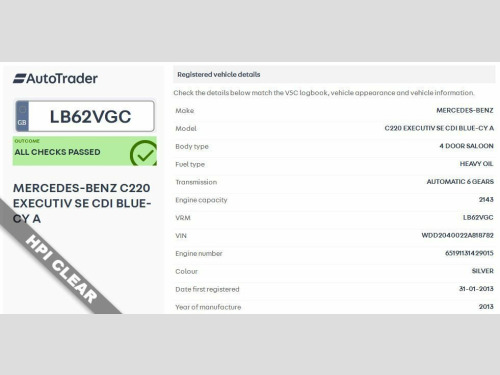 This 2013 Mercedes-Benz C-Class 2.1 C220 CDI BlueEfficiency Executive SE Saloon 4d Saloon is currently available for £4,995 in Blackburn Lancashire with Diesel engine and Automatic gearbox. For more information or to arrange a viewing, click here to send us an email using form below.
