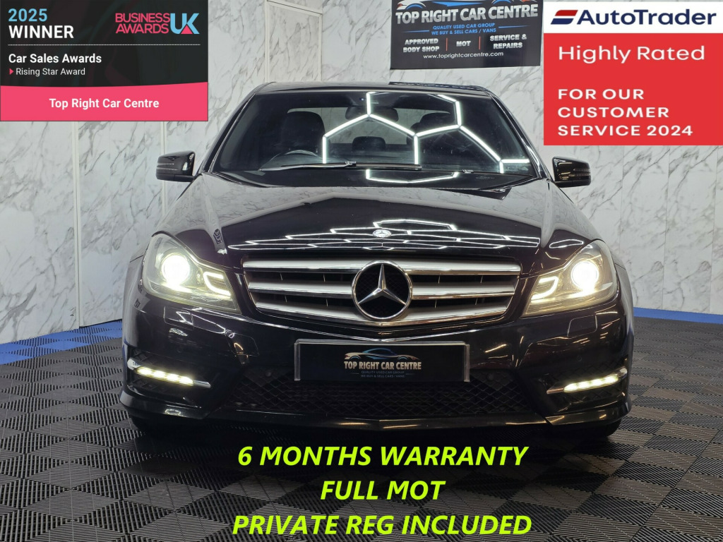 *** NIL DEPOSIT FINANCE AVAILABLE *** ***HPI CLEAR ***6 MONTHS WARRANTY AND BREAKDOWN COVER WITH THIS CAR.FULL SERVICE HISTORY all work receipts. FULL MOT on sale. Fresh service just been done.This stunning Mercedes Benz C Class has been sourced directly from its Previous Private Owner. Every now and again, a car comes into stock at Top Right Car Centre, that you cannot help but fall in love with.Top Spec BlueEfficiency Sport has massive centre screen SATNAV, part leather interior, eco mode, all electric windows, privacy glass, auto folding electric side mirrors, digital dual climate control, daytime running LED lights, cruise control. Clean Car in Black colour. Great comfortable family car. Well maintained body work and interior. Bullet fast response. Checked by our engineers. Professionally detailed. Good reliable runner. Price checked. We've just completed a full pre delivery inspection on the car to give you complete piece of mind. 2 central locking keys. Smooth gear box. Clean alloy wheels. Excellent condition tyres. Spare wheel. Multimedia has Bluetooth RADIO CD mp3. Run with no fault strong reliable engine. Good fuel economy. First to see will buy it this well looked after car. p/x welcome. We do price our cars/van as competitively as possible and because of this we sell cars/vans very quickly. BE QUICK! MISS IT - MISS OUT. With so much variety, quality and highly rated award winner 2024, it is no wonder we are super busy all the time. Why Buy From Top Right Car Centre?Thoroughly Inspected Cars. All our vehicles are quality-checked and HPi verified, giving you peace of mind with every purchase.Multi Award-Winning Family Business. As a trusted family-run business, we have earned awards for our customer service and expertise.Hand-Picked, Quality Cars. We carefully select only the finest cars with full service histories, so you can drive away with confidence.Test Driven for Assurance. Each car is personally test-driven by our team, ensuring it meets our high standards.Delivery Service available. in alloy wheels - amg 7 spoke design, amg bodystyling - front-rear and side skirts, door mirrors - electrically adjustable and heated with led indicators, electric windows - front and rear, spare wheel - space saver, tinted, abs - anti-lock braking system, asr - acceleration skid control, adaptive brake system with hold function-hill start assist, airbags - dual stage - driver, airbags - dual stage - front passenger, airbags - front sidebags, airbags - kneebag, airbags - window, alarm system with immobiliser and interior protection, automatic child seat recognition sensor, bas - brake assist, esp - electronic stability programme, first aid kit and warning triangle, hill start assist, isofix child seat fixing points in rear, pre-safe anticipatory safety system, remote central locking, attention assist, agility control - sports suspension with adaptive damping system, agility control suspension with adaptive damping system, cruise control, parktronic - front with advanced parking guidance, parktronic - rear with advanced parking guidance, power assisted steering, sports suspension, tyre pressure loss warning system, aux-in socket and usb interface in the centre armrest, audio 20 radio cd-6 speakers-telephone keypad-bluetooth interface, bluetooth interface for hands-free telephone, active light system, headlamp assist - automatic headlamp activation, headlight wash system, headlights - adaptive high beam assist, headlights - bi xenon, headlights - bi-xenon with led daytime running lights, intelligent light system, automatic climate control - two-zone-independently adjustable for driver and passenger, automatically dimming rear view mirror and folding exterior door mirrors, centre armrest - front, cup holder, floor mats - amg, lumbar support, partial electric front seats, rain sensing windscreen wipers, roof lining - black, seats - electrically adjustable driver and passenger, steering column - manually adjustable for height and reach, steering wheel - amg-nappa leather-trimmed and gear shift, steering wheel - multi-function-12-button-controls audio and onboard settings, storage package, trim - brushed aluminium