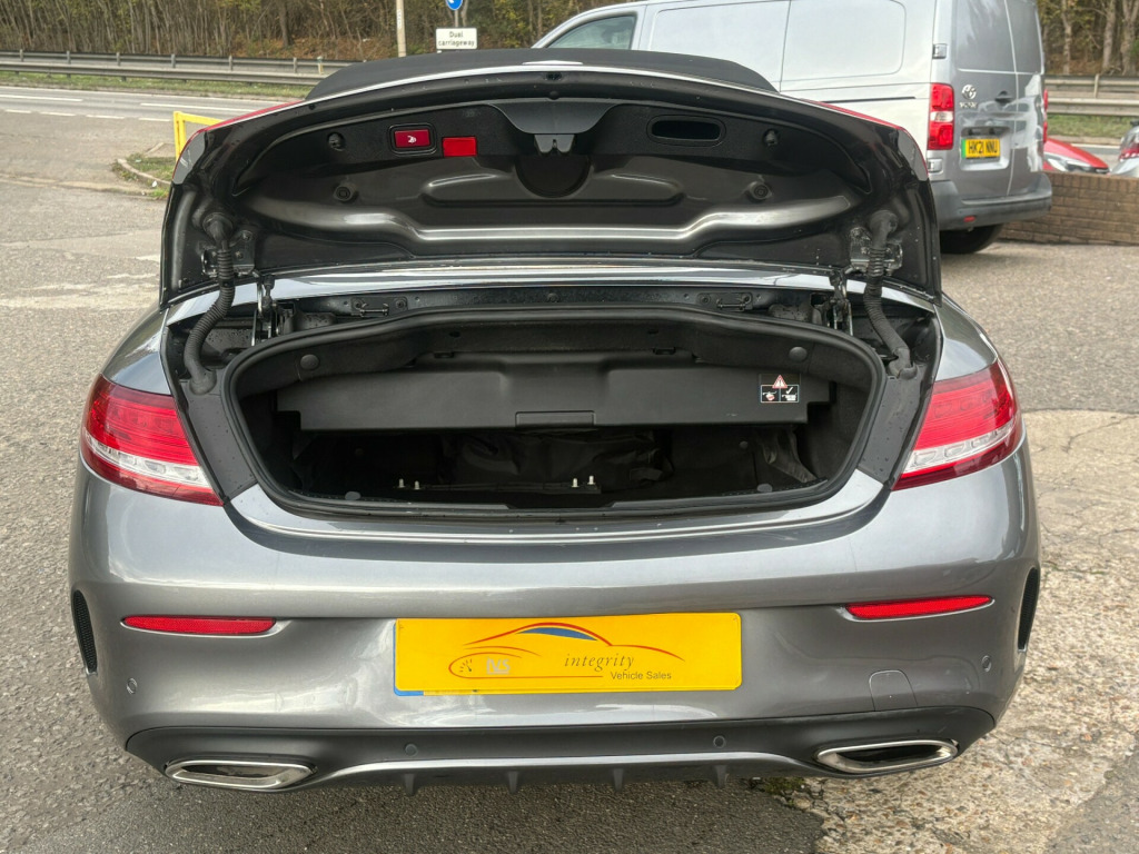 Presenting the stunning 2018 Mercedes-Benz C Class 2.1 C220d Sport Cabriolet, boasting a sleek convertible design and powered by a reliable diesel engine with a Euro 6 (s/s) rating delivering 170 ps. With only 31396 miles on the clock and an MOT valid until 08/05/2026, this beauty is good to go for years to come. Featuring 4 seats, 2 doors, and ULEZ compliance, this luxury car offers both style and eco-friendliness. Don't miss out on this opportunity to own a timeless and sophisticated vehicle. NOTE-THIS VEHICLE HAS BEEN CLASSIFIED BY INSURANCE AS CATEGORY S. r conditioning, bluetooth connection, climate control, colour satnav, comms pack, door mirrors electrically foldable, dual climate zones, full leather, keyless go, memory seats, rain-sensing wipers, satellite navigation, usb/ipod interface, xenon headlamps, adjustable steering column, cruise control, digital instrument cluster, esp, front parking sensor, parking sensors, power steering, rear parking sensor, stability control, steer-by-wire technology, steering wheel rake adjustment, steering wheel reach adjustment, traction control, trip computer, abs, child locks, isofix child seat anchor points, multiple airbags, quick-clear screen, service indicator, side air bags, tyre pressure monitor, alarm, central locking, immobiliser, keyless entry, locking wheel nuts, privacy glass, remote alarm, remote central locking, auto-dip rearview, automated high-beam assist, electric front windows, electric handbrake, electric mirrors, electric tailgate, electric windows, heated door mirrors, power hood, rear electric windows, windscreen heating, auxiliary input socket, cd player, digital radio, steering wheel audio controls, stereo, electric seats, electrically adjustable passenger seat, front armrest, front head restraints, heated front seat, heated seats, height adjustable drivers seat, lumbar support, rear armrest, rear headrests, 2 zone climate control, push button start, alloy wheels, auto lighting, body coloured bumpers, colour coded body, front fog lights, led indicator lights, metallic paintwork, tyre repair kit