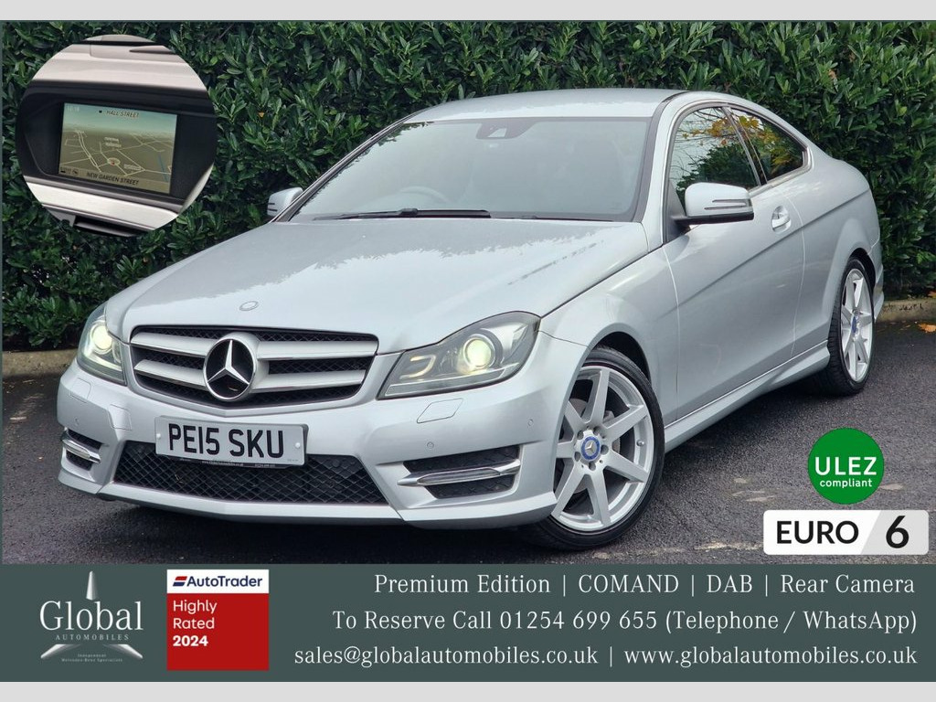 Buy with confidence from an Award Winning Independent Mercedes-Benz Specialist! We are delighted to offer our beautiful Mercedes C Class C250 CDi "AMG Sport Final Edition" Premium Automatic Twin Turbo Diesel Coupe finished in the highly popular "Iridium Silver" and fitted with an Unmarked (Electric / Heated) Combination of Leather / Alcántara interior with Contrasting Blue Stitching. Competitively Priced and in Superb Condition! This Mature Owned vehicle is a "Facelift Model" and is supplied with its Original Manuals, Mercedes-Benz and Specialist Service History Record, Two Keys, MOT until October 2026, HPI Clearance Certificate and a Full and current V5 Logbook. The vehicle has been Serviced recently at 76,195 miles. The Specification; AMG Final Edition, AMG Sports Package, AMG Styling Package, Premium Package, Unmarked 18" AMG Alloy Wheels, Bi Xenon Headlamps with Signature LED Daytime Running Lamps, Intelligent Lighting System (iLS) and Automatic High Beam Assist (iHC). COMAND Media System; Post Code Entry Navigation, DAB Radio, Bluetooth Audio Streaming, Bluetooth Telephone, DVD Player plus Multiple Media Inputs. Traffic Sign Recognition Cameras, Reversing Rear View Camera, Parking Guidance (Front / Rear - Acoustic and Visual Parking Sensors), Mirrors Package, Theft Protection Package, Cruise Control, Tyre Pressure Loss Warner, Sports Suspension, Power Folding Mirrors, Rear Seatbelt Indication Status, Automatic Child Seat Re Becker Map Pilot Navigation System, Iridium Silver, Palladium Silver, Premium Package, Seats - Heated Front