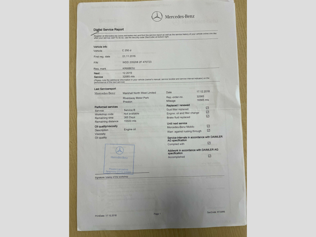 FINANCE AVAILABLE. 10GB Music Register and MP3 Compatibility, 18in Alloy Wheels - AMG 5 Spoke Design - Painted Titanium Grey, 3 Years Free European Map Updates, 8.4in Colour Display - High-Resolution, 9-channel Amplifier, ABS - Anti-Lock Braking System, AMG Bodystyling - Front and Rear Apron - Side Skirts, ASR - Acceleration Skid Control, ATTENTION Assist, Active Bonnet - Pedestrian Safety which Detects an Impact and Raises Bonnet, Active Park Assist with Parktronic, Adaptive Brake Lamps, Adaptive Brake System with Hold Function and Brake Drying Function, Agility Control - Sports Suspension - Lowered by 15mm, Airbags - Drivers Kneebag, Airbags - Dual Stage - Front Passenger, Airbags - Dual Stage - Side in Front Seats, Airbags - Dual-Stage - Driver, Airbags - Pelvisbag, Alarm System with Immobiliser and Interior Protection, Ambient Lighting - Choice of Three Colour Settings, Ambient Lighting - Cupholders - Door Handle Recess and Overhead Panel in LED, Ambient Lighting - Door Trim and Side of Centre Console in LED, Ambient Lighting - Footwells in LED, Ambient Lighting - Front Door Sills in LED, Analogue Clock, Automatic Child Seat Recognition Sensor, Automatic Climate Control - Two-Zone, Automatic Powered Boot Closing, Automatically Dimming Rear View Mirror, Bluetooth Interface for Hands-Free Telephone, Burmester Surround Sound System, Central Locking with Interior Switch, Centre Armrest - Front with Storage, Childproof Locks - Manually Operated for Rear Doors and Electrically Operated for Rear Power Windows, Chrome Trim on Top Half of Door Handles, Collision Prevention Assist Plus, Courtesy Lights in Doors, Crash Sensor with Emergency Opening Function for Doors, Cruise Control with SPEEDTRONIC Variable Speed Limiter, Cup Holder in Centre Console x2, DAB Digital Radio Tuner, Dashboard Trim - Black, Daytime Running Lights - LED, Door Mirrors - Drivers Automatically Dimming, Door Mirrors - Electrically Adjustable-Folding-Heated, Door Mirrors - Memory Function, Door Sill Panels - Mercedes-Benz Lettering, Dynamic Select with a Choice of Driving Modes - Comfort - ECO - Sport - Sport Plus - Individual, EASY-PACK Powered Tailgate, ESP - Electronic Stability Programme, Electric Parking Brake, Electric Windows - 4 - With One-Touch Opening and Closing - including Obstruction Sensors, Electronic Key - Chrome Surround, Exhaust System - Visible Twin-Pipe Integrated into the Bumper, First Aid Kit, Floor Mats - Black with AMG Lettering, Folding Box Beneath the Luggage Compartment Floor, Glove Compartment - Illuminated, Hard Disk Drive HDD, Headlights - High-Performance LED, Heated Front Seats, Heated Windscreen Washer System, ISOFIX Child Seat Attachment Points with Top Tether in Rear, Immobiliser, Instrument Cluster with Two Tube-Design Round Dials and 5.5in TFT Multi-Function Display, Integrated WLAN Hotspot for Onboard Access of WLAN Enabled Devices, Interior Lighting Package, Keyless Go Comfort Package, Keyless Start, Linguatronic Voice Control, Live Traffic Information, Load Compartment Cover, Luggage Net in Cargo Area, Media Interface, Memory Package, Mercedes Me Connect, Mercedes Me Connect - Remote Online, Mercedes-Benz Apps, Mirror Package, Outside Temperature Gauge, Panoramic Glass Sunroof, Parking Sensor - Front, Parking Sensor - Rear, Perforated Front Brake Discs and Brake Calipers with Mercedes-Benz Lettering, Pollen Filter, Radiator Grille with Integrated Star - Two Louvres in Matt Iridium Silver with Chrome Trim, Radio Aerial Integrated into Rear Window, Rain Sensing Windscreen Wipers, Rear Lights - LED, Rear Reading Lights - LED, Rear Seat Belts Status Indicator, Remote Boot Release, Remote Central Locking, Reversing Camera, Roof Lining - Black, Roof Rails - Chrome, SD Card Slot in Centre Console, Satellite Navigation - COMAND Online System, Seat - Electrically Adjustable Driver, Seat - Electrically Adjustable Front Passenger, Seat Belts - Black, Seat Comfort Package - Driver and Front Passenger Seat, Seats - AMG Sports, Seats - Cushion Depth Adj. Part service history