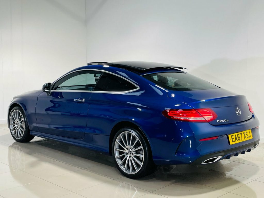 Mercedes-Benz C-Class 2.1 C250d AMG Line (Premium Plus) Coupe G-Tronic+ 4MATIC EA67 XSJ | 31,000 miles | Brilliant Blue This stunning Mercedes-Benz C250d AMG Line Coupe combines sleek coupe styling with powerful diesel performance and confident 4MATIC all-wheel drive. Powered by the strong 2.1 diesel engine producing 204 PS and paired with the smooth G-Tronic+ automatic gearbox, it delivers effortless acceleration, excellent refinement, and sure-footed handling in all conditions Finished in eye-catching Brilliant Blue, this low-mileage example benefits from the highly desirable Premium Plus specification, offering a luxurious and technology-packed interior. Standout features include a 360-degree camera system for easy manoeuvring, 19-inch AMG alloy wheels, and privacy glass, enhancing both style and practicality Key Features AMG Line Styling Premium Plus Specification G-Tronic+ Automatic Gearbox 4MATIC All-Wheel Drive 360 Degree Camera System 19 Inch AMG Alloy Wheels Privacy Glass Panoramic Glass Roof Heated Leather Seats Additional Information Euro 6 (s/s) 204 PS 2.1 Diesel Engine ULEZ Compliant Very Low Mileage Example A superbly specified, low-mileage C250d AMG Line Coupe, offering standout looks, strong performance, and premium features in a rare and desirable configuration 360 Degree Camera, Brilliant Blue, 19in Alloy Wheels - AMG Multi-Spoke Desi, 18in Alloy Wheels - AMG 5 Spoke Design -, ABS - Anti-Lock Braking System, AMG Bodystyling - Front and Rear Apron a, ATTENTION Assist, Active Bonnet - Pedestrian Safety Measur, Active Parking Assist including PARKTRON, Adaptive Brake Lamps, Adaptive Brake with Hold Function - Hill, Agility Control - Sports Suspension - Lo, Anti-Theft Protection Package, Audio 20 CD, Automatic Child Seat Recognition Sensor, Automatic Seat-Belt Presenter for Driver, Bluetooth Interface for Hands-free Funct, Central Locking with Interior Switch - A, Centre Armrest - Front with Stowage, Collision Prevention Assist Plus, DAB Digital Radio