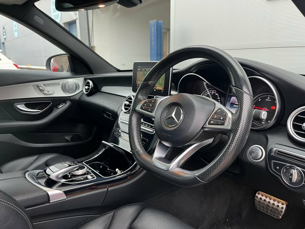 This 2017 Mercedes Benz C Class C250d AMG Line (Premium Plus) presents a compelling proposition with its remarkably low mileage of just 75,000 miles for its age, complemented by a clear vehicle history check. Finished in sleek black leather, this Euro 6 compliant 2.1L diesel model boasts the desirable AMG Line trim, enhancing its sporty aesthetic. Notable features include striking 19in AMG Multi-Spoke alloy wheels, available in both painted titanium grey and bi-colour finishes, alongside the advanced LED Intelligent Light System for superior visibility. Privacy glass adds a touch of exclusivity and comfort. The performance of this C250d AMG Line is equally impressive, with an acceleration of 0-60mph achieved in a swift 6.9 seconds. This brisk performance, combined with the premium specification and the efficiency of its Euro 6 diesel engine, positions this Mercedes Benz above many other vehicles in its class. The inclusion of the Premium Plus package further elevates the driving experience, offering a refined and dynamic journey. 18in Alloy Wheels - AMG 5 Spoke Design -, 8.4in Colour Display - High-Resolution, ABS - Anti-Lock Braking System, AMG Bodystyling, ATTENTION Assist, Active Bonnet - Pedestrian Safety which , Active Parking Assist including PARKTRON, Adaptive Brake Assist with Hold Function, Adaptive Brake Lamps, Agility Control - Sports Suspension - Lo, Airbags - Dual Stage - Driver and Front , Alarm System with Immobiliser and Interi, Audio 20 CD, Automatic Child Seat Recognition Sensor, Automatically Dimming Rear View Mirror a, Bluetooth Interface for Hands-Free Telep, Brake Calipers with Mercedes-Benz Letter, Brushed Stainless Steel Sports Pedals wi, Central Locking with Interior Switch - A, Childproof Lo