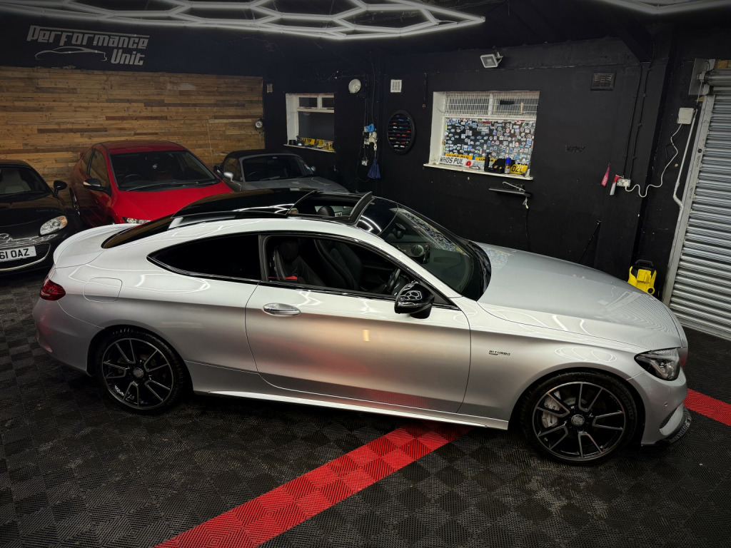 Mercedes-Benz C43 AMG 3.0 V6 BiTurbo 4MATIC Coupe (Premium Plus) – 2017, , Here at Performance Unit, we are delighted to welcome this stunning Mercedes-Benz C43 AMG 3.0 V6 BiTurbo 4MATIC Coupe (Premium Plus) into our carefully curated collection. This beautifully maintained 2017 example combines AMG performance, luxury, and everyday usability in one striking package. Finished to an immaculate standard inside and out, with a full and over-serviced history, recent gearbox service, and new front discs and pads, this C43 is a true credit to its previous owner. Low Mileage Only 49,726 miles Immaculate inside and out, A true embodiment of performance and sophistication, this C43 AMG offers an effortless blend of dynamic power and refined luxury. Presented in immaculate condition both inside and out, it has been meticulously cared for and over-serviced throughout its life, , Key Features:, 3.0 V6 BiTurbo AMG engine – 4MATIC all-wheel drive, Premium Plus specification, Upgraded 19 AMG alloy wheels, AMG bodystyling with front and rear aprons, side skirts, and boot lid spoiler, AMG Performance Exhaust System, Panamericana Front Grill , BITURBO 4MATIC badging, Mirror package with electrically adjustable, heated mirrors, Tinted glass all round, Heated windscreen washer system, Perforated AMG front brake discs with Mercedes-Benz calipers, TIREFIT with tyre inflation compressor, , Interior & Comfort:, Full black leather interior with red stitching, Red seatbelts, Electric and memory seats with heating function, Electric steering column adjustment, Keyless entry and start, Leather dashboard, Dual-zone climate control, Cruise control, Technology & Entertainment:, Burmester surround sound system, COMAND Online satellite navigation, Bluetooth telephone and audio streaming, DAB digital radio, USB connectivity, , Maintenance:, Full service history, Recent gearbox service, New front brake discs and pads, No warning lights or issues, This C43 AMG Coupe offers an ideal blend of performance, luxury, and style. A truly cherished example, ready to be enjoyed by its next owner. , Call our sales team today to enquire about this vehicle. , Performance vehicles are the ultimate thrill so why not experience the adrenaline rush through your body as you fulfil your ambition. At Performance Unit we supply our customer with some of the finest performance vehicles across the UK. We also offer nationwide delivery. Reserve this vehicle now with a small deposit. Warranty Packages included.