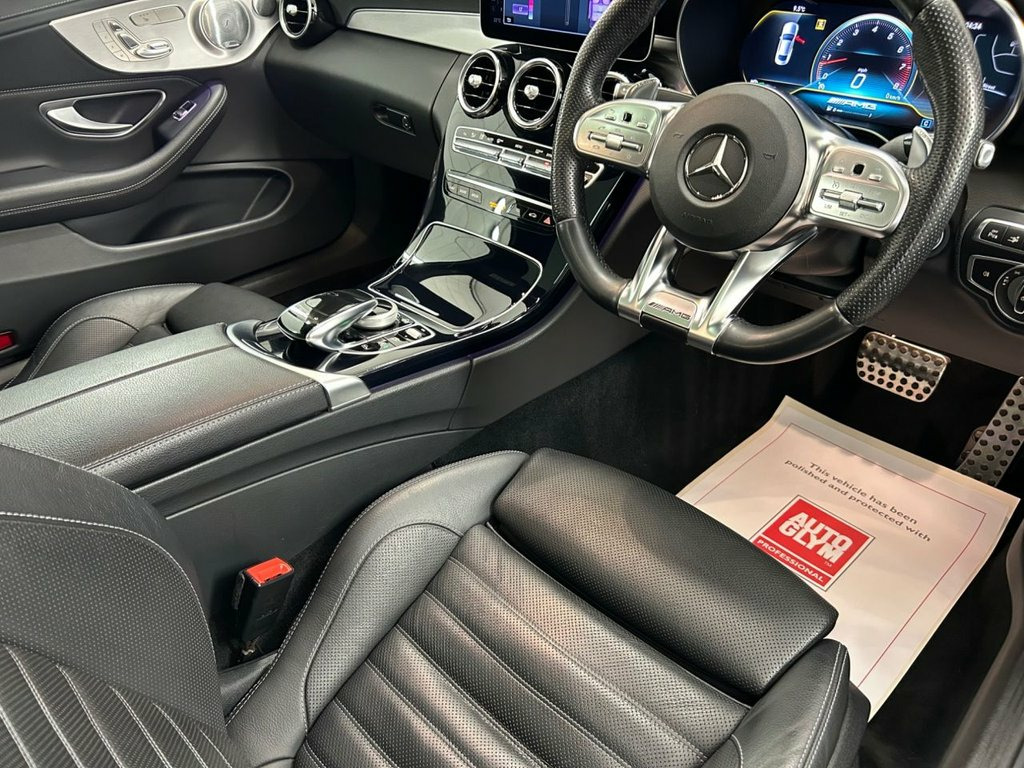 A Stunning 2 Owner Machine presented with AMG 'Premium Plus' Trim level. Bodywork is Obsidian Black. The interior is trimmed with Black Leather and wheels are 19 Inch Multi-spoke. Specification includes a Powered Panoramic Roof, 16 Way Electric seats with Driver and Passenger Memory Pack, Burmester Audio Equipment, Front and Rear Parking Sensors, a 360 Degree Camera system and a Power Operated Boot lid. Additional specification includes Satellite Navigation, Climate control, Cruise control, Bluetooth and Multi-media Connectivity, Apple Car Play and Android Auto, 3 Stage Seat Heating, Electric, Heated and Power-folding Mirrors, Privacy Glass, Configurable Ambient Lighting and the list goes on....... Switchable Drive Modes and Sports Exhaust complete the offer of this Incredible Machine. Supplied with 2 Keys, original Handbook pack and Service confirmation at 3464, 10264, 16998 and 25509 miles. A Fresh service will also be carried out as part of our pre-sale preparation. 19in Alloy Wheels - AMG Multi-Spoke Desi, Leather - Black, Obsidian Black