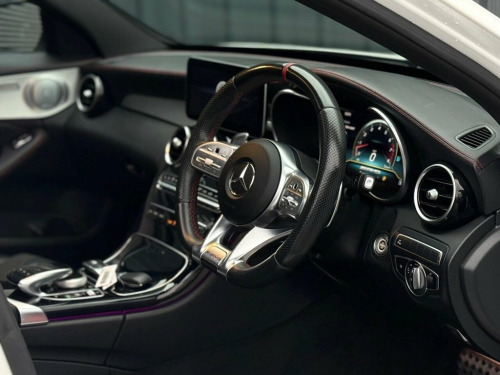 This 2019 Mercedes Benz C Class C43 V6 AMG (Premium Plus) offers exceptional value with its remarkably low mileage of just 41,000 miles for its age. This Euro 6 compliant, four wheel drive model is powered by a potent 3.0L petrol engine, delivering exhilarating performance. Inside, you'll find a host of premium features designed for comfort and convenience, including heated front seats, THERMATIC automatic climate control for two zones, and seamless smartphone integration with both Android Auto and Apple CarPlay. Navigating tight spaces is made effortless thanks to the Active Parking Assist with PARKTRONIC sensors and a clear reversing camera. The AMG trim enhances the sporty character of this C Class, and its impressive acceleration, capable of 0-62mph in just 4.7 seconds, truly sets it apart. This vehicle also benefits from a low insurance group, making it a more economical choice to own and run compared to many similar cars. These highlights demonstrate how this Mercedes Benz C Class C43 V6 AMG (Premium Plus) offers a superior driving experience and ownership proposition. 18in Alloy Wheels - Aero 5-Spoke - Silve, ABS - Anti-Lock Braking System, AMG Bodystyling - Front and Rear Apron a, AMG Boot Lid Spoiler in Body Colour, AMG Boot Logo in Central Screen, AMG Ride Control Sports Suspension, ARTICO Leather Dashboard with Red Contra, ATTENTION Assist, Active Bonnet - Pedestrian Safety Measur, Active Parking Assist including PARKTRON, Adaptive Brake Assist with Hold Function, Adaptive Brake Lamps, Alarm System with Immobiliser and Interi, Automatic Child Seat Recognition Sensor, Automatically Dimming Rear View Mirror a, BITURBO 4MATIC Lettering on Front Wings, Brake Calipers with AMG Lettering, Central Locking with Interior Switch - A, Childproof Locks - Manually
