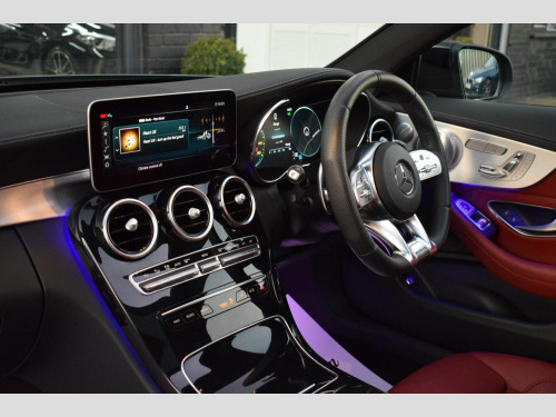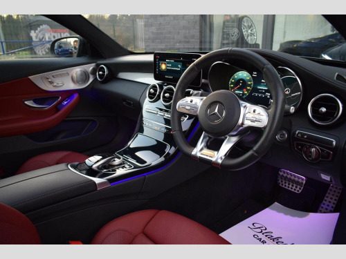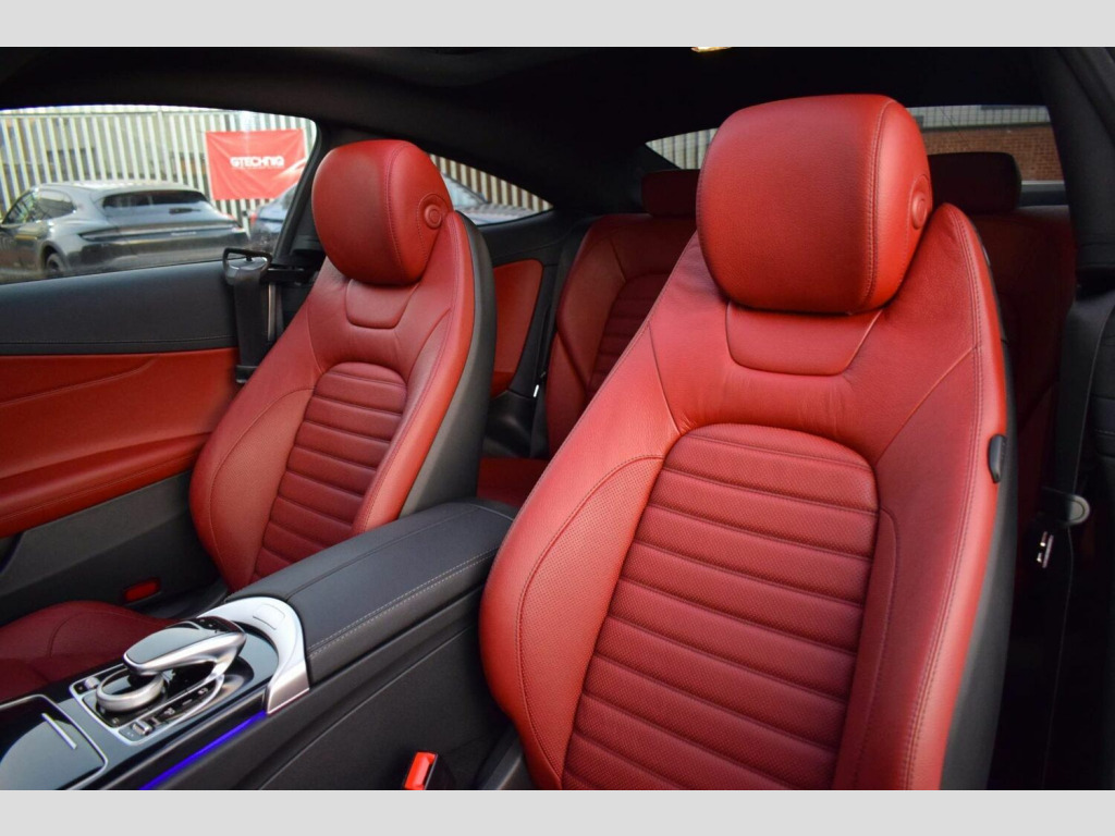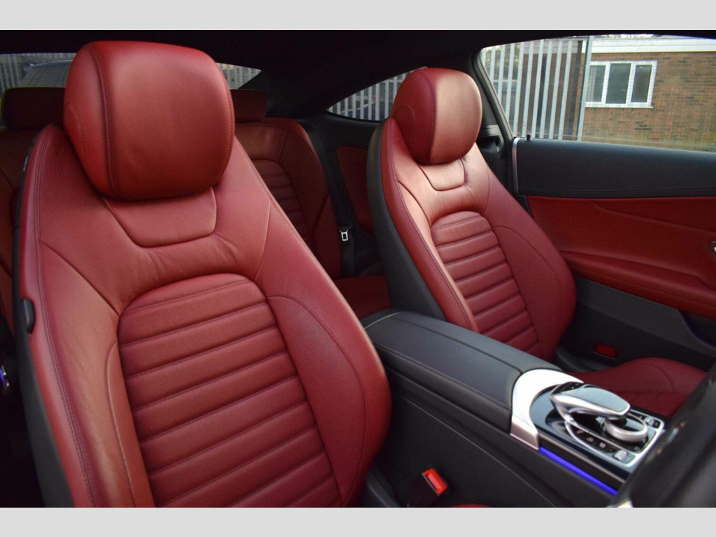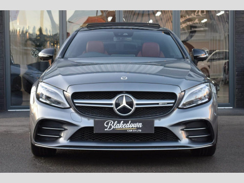 2018 68 Mercedes-Benz C43 V6 AMG (Premium) finished in Selenite Grey Metallic with full Cranberry Red Leather interior and optional extra upgraded 19 Multispoke AMG Alloys. Just 27450 miles covered by just one owner from new. Superb spec thanks to the Premium trim level which offers on top of the already impressive equipment list features such as: Panoramic glass sunroof, Burmester surround sound system, KEYLESS-GO Comfort package, 360° camera, MULTIBEAM LED Intelligent Light System, Wireless charging, COMAND Online system with touchpad, 12.3 digital instrument cluster display and Ambient Lighting. Additionally this C43 also benefits from optional 19in Alloy Wheels - AMG Multi-Spoke Design, Memory Package and Cranberry Red Leather. Presented in beautiful showroom condition inside and out with two keys and all correct handbooks, documentation etc present. Four Pirelli P Zero tyres fitted with excellent tread and all other consumables in good order. Other equipment includes: AMG Ride Control Sports Suspension, Active Parking Assist including PARKTRONIC, Brake Calipers - with AMG Lettering, Full LED Tail Lights, Reversing Camera, SPEEDTRONIC Cruise Control and Variable Speed Limiter, Smartphone Integration via Android Auto or Apple CarPlay, Steering - AMG 2 Stage Speed-Sensitive Sports Steering, Steering Wheel - 3-Spoke Multi-Function Sports in Black Leather with Flattened Bottom Section, Tinted Glass All Round - Green, Tyre Pressure Monitoring System and more.