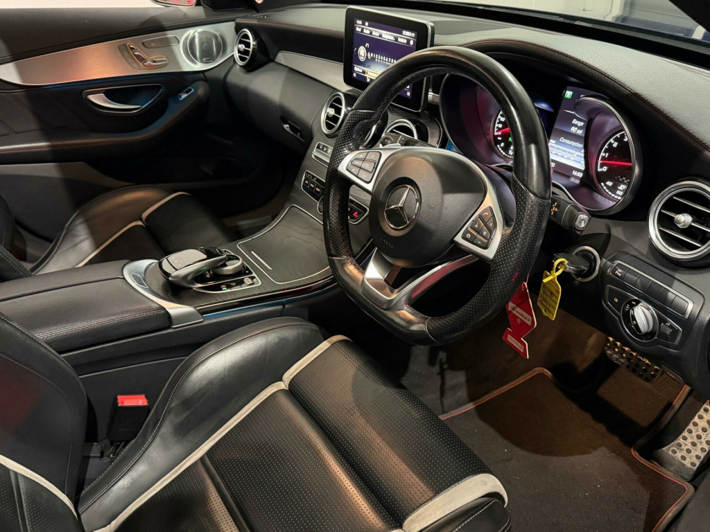 This 2016 Mercedes Benz C Class C43 V6 AMG (Premium Plus) presents a compelling proposition with its remarkably low mileage of just 53,000 miles for its age, coupled with a clear vehicle history check. This Euro 6 compliant, four wheel drive model boasts a powerful 3.0L petrol engine, delivering exhilarating performance. Inside, you'll find the supportive AMG Performance seats, perfect for spirited driving, and the convenience of heated front seats. The cabin is kept at the ideal temperature with THERMATIC automatic climate control, ensuring comfort for all occupants.The exterior is enhanced by striking 19in AMG 5-Twin-Spoke Design alloy wheels in a bi-colour finish, and the advanced LED High Performance headlamps with integrated daytime running lights provide excellent visibility. This C43 AMG is also noted for its low insurance group, making it a more accessible option than many comparable vehicles. Its impressive acceleration, capable of reaching 0-62mph in just 4.7 seconds, truly sets it apart, demonstrating its dynamic capabilities and sporty nature. in alloy wheels - amg 5-spoke design - bi-colour, 8.4in colour display - high-resolution, abs - anti-lock braking system, amg bodystyling, amg boot lid spoiler in body colour, amg ride control sports suspension, amg sports exhaust system, attention assist, active bonnet - pedestrian safety which detects an impact and raises bonnet, active parking assist including parktronic, adaptive brake lamps, adaptive brake with hold function - hill start assist - brake drying, airbags - dual stage - driver and front passenger, airbags - front sidebags, airbags - pelvisbag, alarm system with immobiliser and interior protection, automatic child seat recognition sensor, automatically dimming rear view mirror and drivers door mirror, biturbo 4matic lettering on front wings, bluetooth interface for hands-free telephone, brushed stainless steel sports pedals with rubber studs, central locking with interior switch - automatic locking and crash sensor with emergency opening function, childproof locks - manually operated for rear doors and electrically operated for rear power windows, collision prevention assist plus, dab digital radio tuner, drivers kneebag, dynamic select with a choice of driving modes - comfort - eco - sport - sport plus - individual, esp - electronic stability programme, electric parking brake, electric windows - 4 - with one-touch opening and closing - including obstruction sensors, electronic key - chrome surround, first aid kit and warning triangle, floor mats - black with amg lettering and red edging, front centre armrest with stowage compartment, front door sill panels with amg lettering, front seats - electrical height and backrest adjustment and four-way lumbar adjustment, fuel computer, full led tail lights, gearshift paddle on steering wheel, headlamps - led high performance with integrated led daytime running lights, heated front seats, heated windscreen washer system, isofix child seat attachment points with top tether in rear, illuminated glove compartment, instrument cluster with two tube-design round dials and 5.5in tft multi-function display, interior lighting package, mercedes connect me - standard services, mirror package, outside temperature display, perforated front brake discs and brake calipers with amg lettering, pre-wiring for garmin map pilot navigation system, premium plus package, radiator grille - diamond grille with integrated star - chrome pins, radio aerial integrated into rear window, rain sensing windscreen wipers, remote boot release, reversing camera, speedtronic cruise control and variable speed limiter, seat belts - red, seat comfort package, seats - rear split folding 40-20-40, seats - sports with optimised lateral support, service indicator assyst, speakers with frontbass, status display for rear seat belts in instrument cluster, steering - amg 2 stage speed-sensitive sports steering, steering column - manually adjustable for height and reach, steering wheel - multi-function with audio and onboard settings control, steering wheel - multifunction sports in black nappa leather with flattened bottom section, stowage - double cup holder in centre console, stowage package, sun visors with illuminated vanity mirrors, thermatic - automatic climate control - two-zone, tirefit with tyre inflation compressor, tinted glass all round - green, top surround of side windows in matt black, trim - high-gloss black with aluminium door trims, two tailpipe trim elements in twin-tailpipe design integrated into rear bumper, two usb ports and an sd card slot in centre console, tyre pressure monitoring system, windowbags for driver-front passenger and rear passengers, night package, privacy glass, 19in alloy wheels - amg 5-twin-spoke design - bi-colour, seats - amg performance, headlamps - led intelligent light system, 19in alloy wheels - amg multi-spoke design - painted in black
