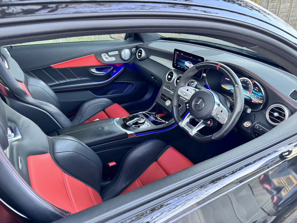 Direct Car Sales are excited to offer a 2019 MERCEDES-BENZ C CLASS, a highly sought-after vehicle that is very rare, with only one owner from new. This black vehicle boasts a Petrol 3982cc engine and has been meticulously maintained, with five services, the last of which was carried out in October 2025. , ONE OWNER FROM NEW. , The vehicle features a range of premium specifications, including 19-inch forged AMG alloys, an AMG night pack, and a premium plus pack. The interior is equipped with grey open pore oak trim and Nappa red pepper leather, providing a comfortable and luxurious driving experience. , As a new facelift model, this vehicle benefits from a range of advanced features, including a panoramic roof, selectable driving modes, and 360-degree cameras. Additionally, the vehicle is equipped with Apple CarPlay, a digital dash, ambient lighting, keyless entry, satellite navigation, cruise control, air conditioning, and a DAB radio. , This vehicle has a comprehensive range of features, including wireless charging, auto full beam assistance, and a premium sound system. With its rare specification and unmodified condition, this vehicle is a unique opportunity for those seeking a luxury driving experience. , The vehicle is sold with a three-month warranty and low-rate finance options are available. Part exchange is also welcome. We encourage interested parties to act quickly to secure this rare vehicle. , This car is our directors personal vehicle so mileage may change slightly.