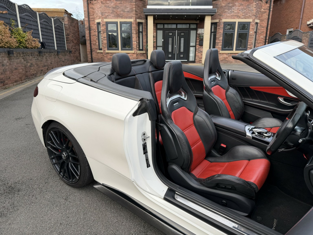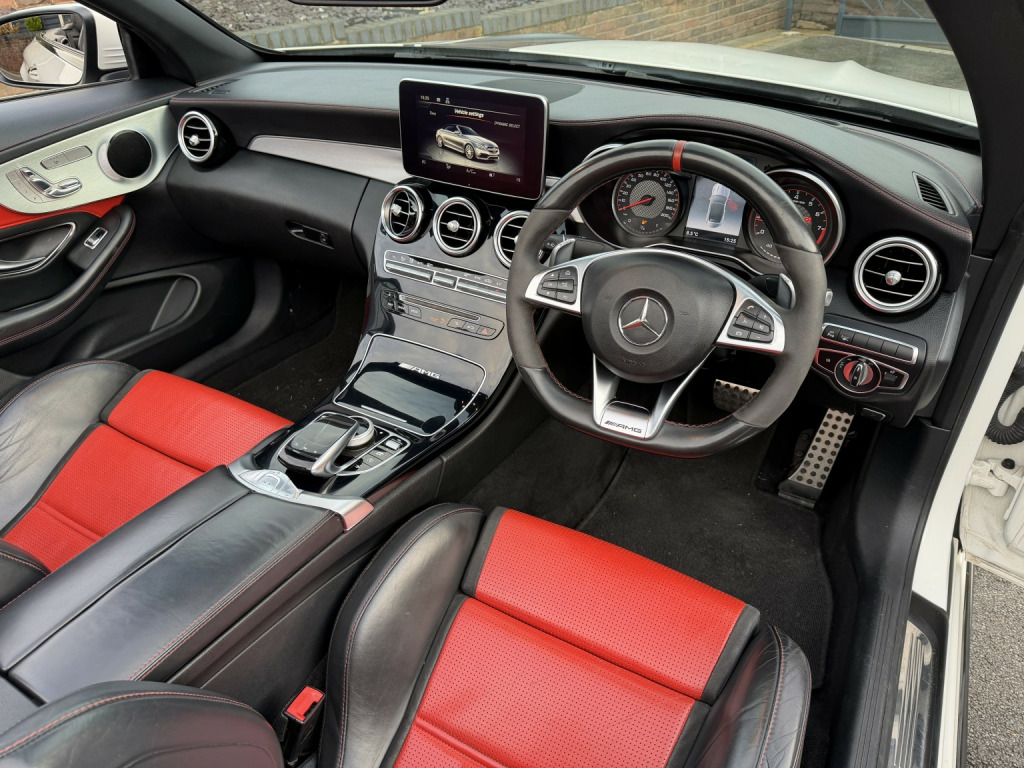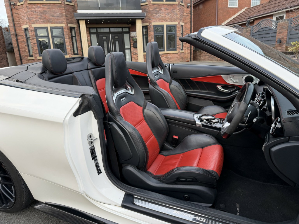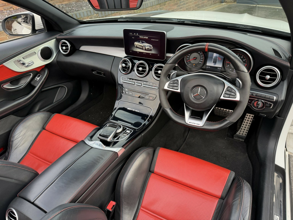 2017/67 Mercedes C63s Convertible AMG Premium 4.0 Twin Turbo 67,900 Miles, FINISHED in Stunning Polar White with Factory Red Fabric Roof ! Full Mercedes Service History recently serviced at Mercedes , 3 Owners From New, HPI clear, and a massive Specification which includes