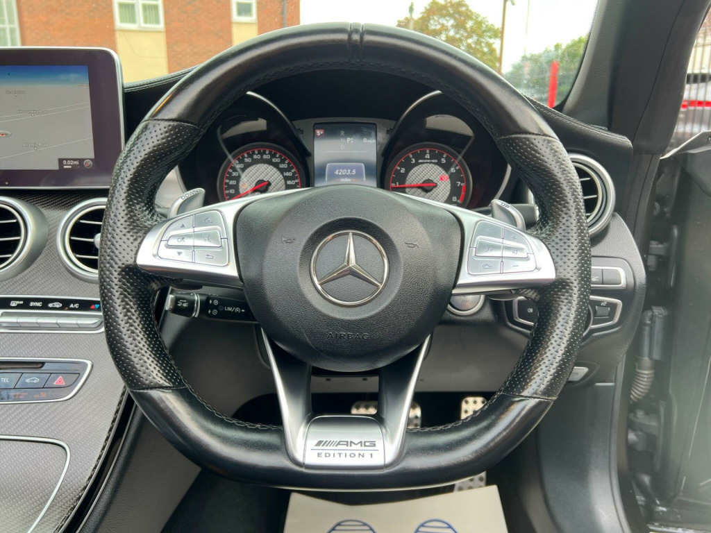 WELCOME TO KINGSTANDING CAR SALES WE ARE PLEASED TO OFFER THIS 1 OFF MERCEDES C63s EDITION 1 WARRANTED ON THE MILES BACKED UP WITH A FULL SERVICE HISTORYFULLY LOADED WITH A VERY UNIQUE ELECTRIC LEATHER QUILTED INTERIORWRAPPED IN MATT BLACK THIS CAR STANDS OUT FROM ALL THE RESTFULLY LOADED MODEL WITH HEADS UP DISPLAYREVERSE 3D CAMERASLANE ASSISTSATNAVMEMORY SEATSAMAZNG LOOKING CARCOMES WITH A PRIVATE REGFULLY HPI CLEAR WITH A REPORTVERY SMOOTH ENGINE AND GEARBOX6 MONTHS PARTS AND LABOUR WARRANTY INCLUDED FOR A PEACE OF MINDWE TAKE ANY CAR IN PART EXCHANGEVIEWING BY APPOINTMENTS ONLYANY INSPECTION IS WELCOMEOVER 40 CARS TO CHOOSE FROMCHEAPEST EDTION 1 AVAILABLE NATIONALLY ON AUTOTRADERThis 2016 Mercedes-Benz C Class C63 V8 BiTurbo AMG S Edition 1 boasts a clear vehicle history, offering peace of mind for its next owner. Powered by a potent 4.0L V8 BiTurbo petrol engine, this Euro 6 compliant model delivers exceptional performance. The AMG S Edition 1 trim level is further enhanced by desirable optional packages, including the Lane Tracking Package with Blind Spot Assistance, the Driving Assistance Package featuring Adaptive Cruise Control and Blind Spot Assistance, and the AMG Drivers Package. Comfort and convenience are also addressed with the Air-Balance Package, while the striking 19in front and 20in rear AMG Forged Cross-Spoke alloy wheels, painted in Titanium Grey, add to its distinctive appearance.Experience exhilarating acceleration with this C63, capable of reaching 0-62mph in a rapid 4.1 seconds, a figure that truly sets it apart from many other vehicles in its class. This impressive speed is a testament to the engineering prowess of the AMG S Edition 1. Beyond its performance, the C Class also offers practical benefits, including generous boot space, making it a versatile choice for both spirited driving and everyday use. 0 degree camera, head-up display, driving assistance package, lane tracking package, 19in front-20in rear alloy wheels - amg forged cross-spoke design painted titanium grey, amg exterior carbon-fibre trim - package 1, amg exterior carbon-fibre trim - package 2, soft top colour - brown, air-balance package, nappa leather - black-saddle brown, amg drivers package, 19in front-20in rear alloy wheels - amg forged cross-spoke design painted matt black, abs - anti-lock braking system, aircap - wind deflector and draught-stop, amg bodystyling - front apron - bonnet - side skirts - fenders and rear diffuser-style apron design, amg bonnet with powerdomes, amg dynamic select with a choice of driving modes - comfort-sport-sport plus-individual-race, amg electronic rear axle differential lock, amg high-performance brake system, amg instrument cluster, amg night package, amg performance exhaust system, amg performance seats, amg ride control sports suspension, amg-specific spoiler lip, asr - acceleration skid control, attention assist, acoustic soft-top - with enhanced climate and noise comfort, active bonnet - pedestrian safety measure which detects an impact and raises bonnet, active parking assist including parktronic, adaptive brake assist with hold function and brake drying function, adaptive brake lamps, ambient lighting, anti-theft protection package, automatic child seat recognition sensor, automatic seat-belt presenter for driver and front passenger, bluetooth interface for hands-free function, brake calipers - red with amg lettering, comand online system, central locking with interior switch - automatic locking and crash sensor with emergency opening function, collision prevention assist plus, dab digital radio tuner, door mirrors - electrically adjustable and heated, dual-stage airbags - driver and front passenger - sidebags in front seats - driver kneebag - pelvis bag and windowbags for driver - front passenger and rear passengers, esp - electronic stability programme, electric parking brake, electronic key - chrome surround, first aid kit and warning triangle, floor mats - black with amg lettering, front centre armrest with stowage compartment, front door sill panels with amg lettering, front electric windows with one-touch opening and closing including obstruction sensors, fuel computer, full led tail lights, headlamps - led intelligent light system, heated front seats, heated windscreen washer system, high-resolution 8.4-in multimedia colour display, isofix child seat attachment points with top tether in rear, illuminated glove compartment, instrument cluster with two tube-design round dials and 5.5in tft multi-function display, interior lighting package, keyless entry, keyless start, large front splitter, memory package, mercedes me connect - remote online, mercedes me connect - standard services, mirror package, outside temperature display, race start function, radio aerial integrated into rear window, rain sensing windscreen wipers, remote boot release, reversing camera, speedtronic cruise control and variable speed limiter, seat belts - black, seats - rear split folding 40-20-40, service indicator assyst, soft top colour - black, speakers with frontbass, sports pedals in brushed stainless steel with rubber studs, status display for rear seat belts in instrument cluster, steering - amg 3 stage speed-sensitive sports steering, steering column - electronically adjustable for height and reach, steering wheel - amg performance in nappa leather with flattened bottom section - 12 o clock marking - bezel in silver chrome with edition 1 lettering and silver-coloured aluminium shift paddles, steering wheel - gear shift paddles, steering wheel - multi-function with audio and onboard settings control, stowage - double cup holder in centre console, stowage package, sun visors with illuminated vanity mirrors, thermatic - automatic climate control - two-zone, tirefit with tyre inflation compressor, tinted glass all round - green, top surround of side windows in polished aluminium, trim - amg matt carbon fibre, two usb ports and an sd card slot in centre console, tyre pres