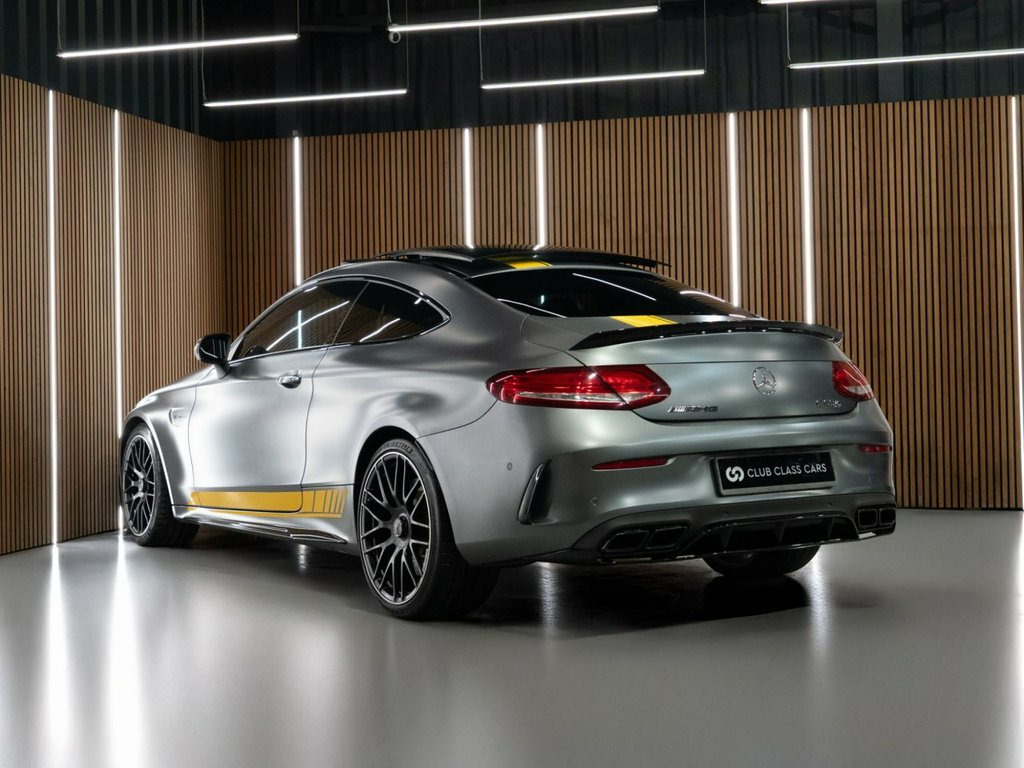 2017 Mercedes-Benz C63S 4.0 V8 BiTurbo Edition 1 Motorsport 2dr Coupe SpdS MCT in Selenite Grey Magno with 2 owners and just over 32,000 miles. 1 of 23 UK supplied car with a fantastic spec including AMG Ceramic Braking System, Head-Up Display, 19in Front & 20in Rear AMG Forged Cross-Spoke Alloy Wheels, AMG Performance Seats in Black with Yellow Stitching (Heated & Electrically Adjustable), AMG Night Package, Active Parking Assist, Rear View Camera, COMAND Online System, Sat Nav, Bluetooth, Cruise Control, Ambient Lighting, Dynamic LED Headlights, Burmester Sound System, Power Tailgate, AMG Performance Exhaust System etc. Full Mercedes-Benz Dealership Service History with previous services completed as follows; - 20/1/2018 @ 6,480 miles - 21/1/2019 @ 11,349 miles - 1/7/2020 @ 16,907 miles (Gearbox & Transfer Case) - 22/7/2021 @ 21,544 miles - 4/9/2023 @ 27,717 miles (Gearbox & Transfer Case) - 16/10/2024 @ 29,666 miles Will come with a new service and 12 month MOT. Nappa Leather - Black with Yellow Diamon, Selenite Grey Magno, Head-Up Display, 19in Front-20in Rear Alloy Wheels - AMG , 8.4in Colour Display - High-Resolution, ABS - Anti-Lock Braking System, AMG Aerodynamics Package, AMG Bodystyling, AMG Bonnet with Powerdomes, AMG Boot Lid Spoiler in Body Colour, AMG Dynamic Select with a Choice of Driv, AMG Electronic Rear Axle Differential Lo, AMG High-Performance Brake System, AMG Instrument Cluster, AMG Lettering in Diamond Grille, AMG Night Package, AMG Performance Exhaust System, AMG Performance Seats, AMG Ride Control Sports Suspension, ATTENTION Assist, Active Bonnet - Pedestrian Safety which , Active Parking Assist including PARKTRON, Adaptive B
