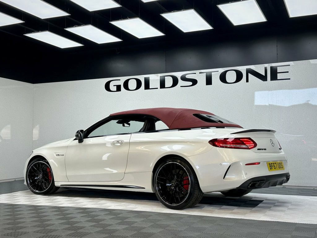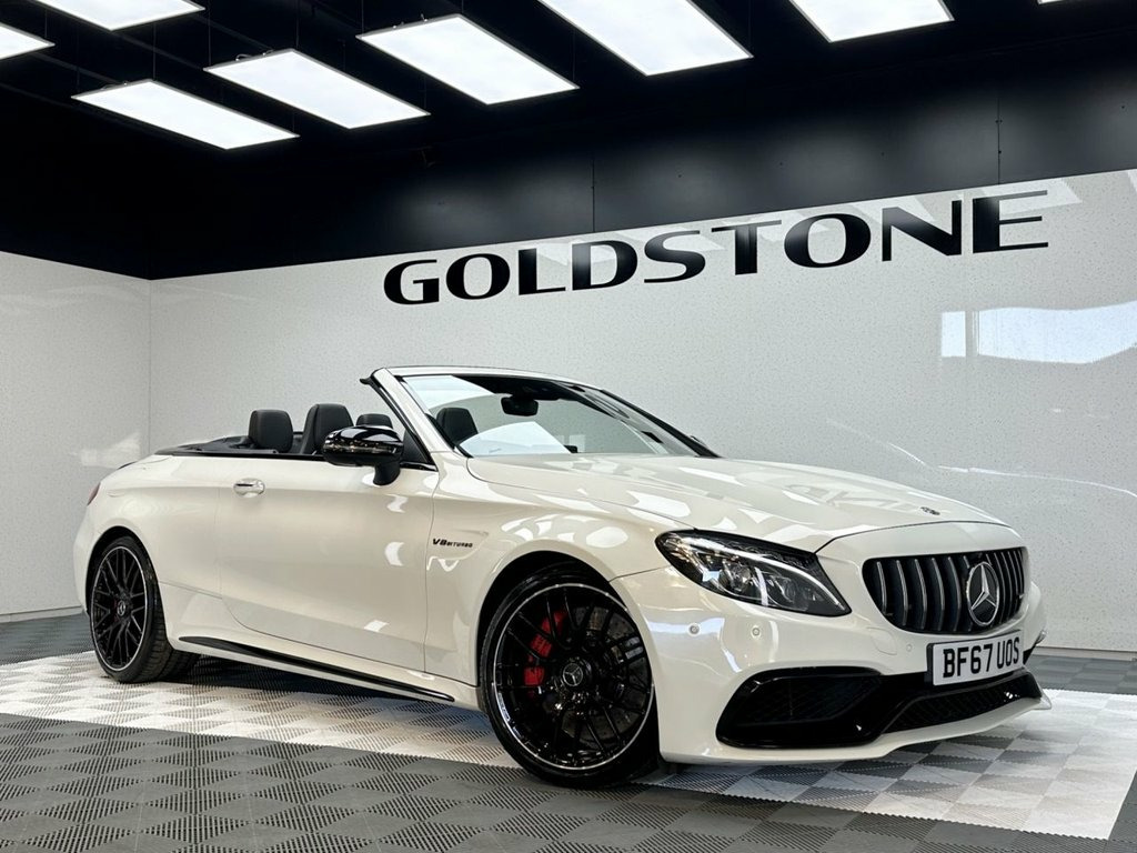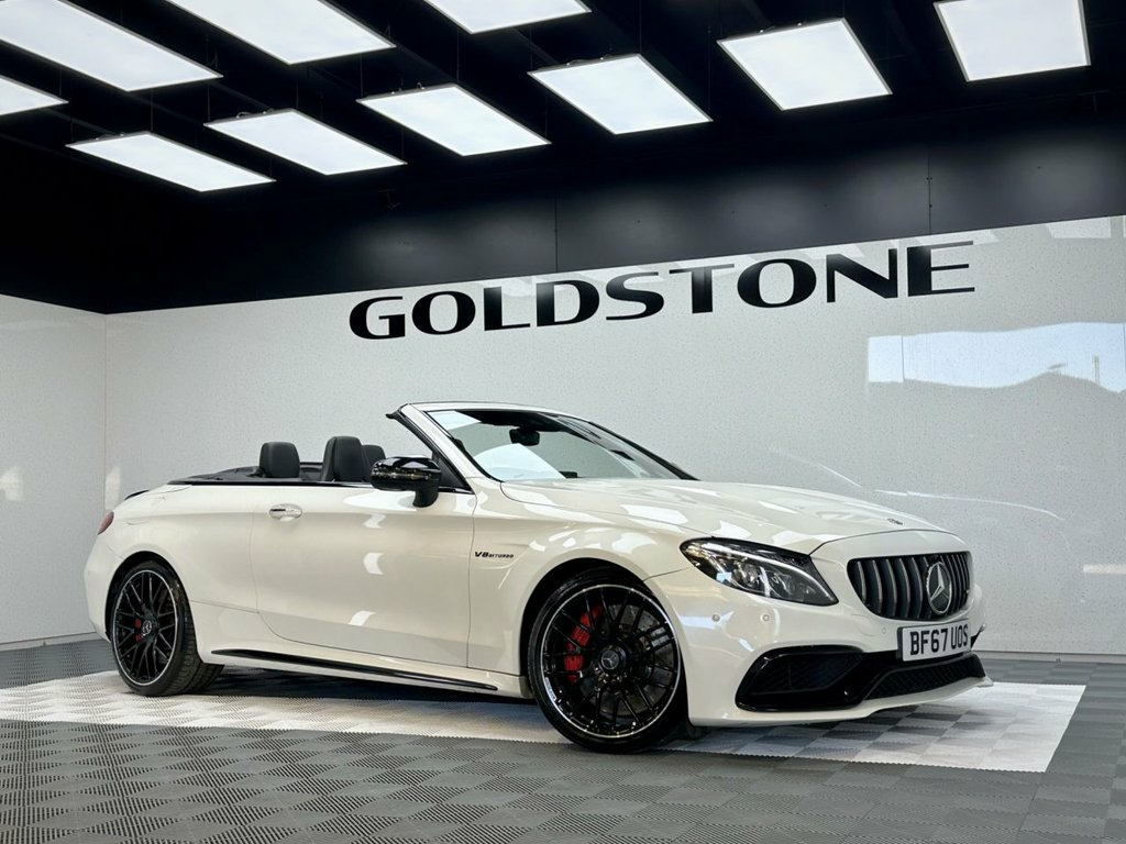 STUNNING HIGH SPEC DIAMOND WHITE 63 S | PERFORMANCE SEATS | 360 CAMERAS | AMG NIGHT PACKAGE | 19"/20" AMG FORGED ALLOYS | PERFORMANCE STEERING WHEEL | BURMESTER SOUND SYSTEM | SWITCHABLE AMG EXHAUST | HEATED MEMORY ADJUST SEATS | PADDLE SHIFT WITH LAUNCH CONTROL | SERVICE HISTORY | RECENT FRONT DISCS | LOVELY CONDITION THROUGHOUT | A TRULY MESMERISING V8 BITURBO EXPERIENCE | Presented by Goldstone Cars Finished in breathtaking Diamond White and boasting a thrilling V8 BiTurbo engine, this 2017 Mercedes-AMG C63 S Convertible offers raw performance wrapped in refined luxury. A true flagship of open-top motoring, this high-spec C63 S is engineered to stir the senses and dominate the road. Highlights & Key Features: • 4.0L V8 BiTurbo – 503 BHP • AMG Speedshift MCT with Paddle Shift & Launch Control • Switchable AMG Performance Exhaust – Unleash the Full Roar on Demand • AMG Night Package – Gloss Black Styling Accents • Staggered 19"/20" AMG Forged Alloys – Striking and Lightweight • 360° Surround Cameras – Total Visibility from Every Angle • Performance AMG Seats – Heated, Memory Adjust, Designed to Hold You Firm • Performance AMG Steering Wheel – Tactile Control Meets Motorsport Design • Burmester Surround Sound System – Audiophile-Grade In-Car Acoustics • Premium Package – Loaded with Comfort and Tech Enhancements • Service History &n Diamond White, 360 Degree Camera, AMG Night Package, Soft Top Colour - Red, 19in Front-20in Rear Alloy Wheels - AMG , 19in Alloy Wheels - AMG 5-Twin-Spoke Des, 8.4in Colour Display - High-Resolution, ABS - Anti-Lock Braking System, AIRCAP - Wind Deflector and Draught-Stop, AIRSCARF - Neck Level Heating System, AMG Bodystyling - Front Apron - Bonnet -, AMG Bonnet with Powerdomes, AMG Boot Lid Spoiler in Body Colour, AMG Dynamic Select with a Choice of Driv, AMG Electronic Rear Axle Differential Lo, AMG High-Performance Brake System, AMG Instrument Cluster, AMG Lettering in Diamond Grille, AMG Performance Exhaust System, AMG Performance Seats, AMG Ride Control Sports Suspension, AMG Track Pace