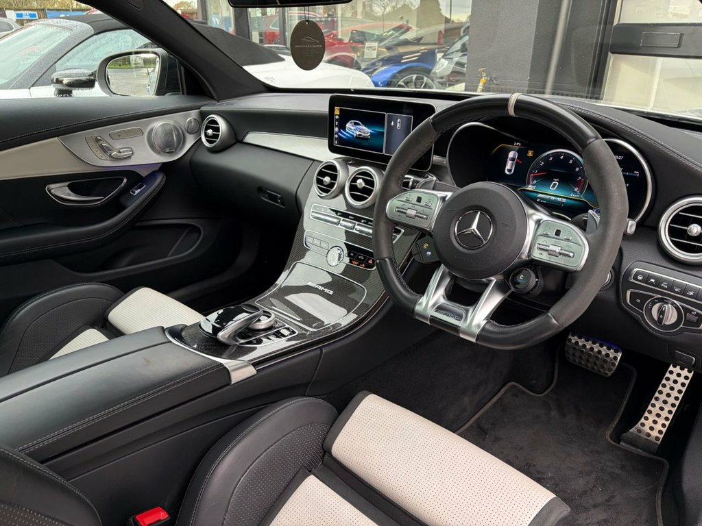 PER4MANCE CARS ARE DELIGHTED TO OFFER THIS STUNNING 2019 MERCEDES BENZ C63 AMG S PREMIUM PLUS (510PS) FINISHED IN A CRAYON GREY WRAP WITH TWO TONE AMG PERFORMANCE LEATHER SEATS, FACELIFT MODEL, AERODYNAMICS PACKAGE, BLACK STYLING PACKAGE, COMMAND ONLINE SYSTEM WITH SATELLITE NAVIGATION, BLUETOOTH AND DAB, WIRELESS CHARGING, DRIVER ASSISTANCE PACKAGE, CARBON FRONT SPLITTER, CARBON SIDE SKIRTS, CARBON REAR DIFFUSER, PANORAMIC GLASS SUNROOF, FORGED 19/20" WHEELS, CARBON INTERIOR INTERFACE, FLAT BOTTOMED NAPPA LEATHER MULTIFUNCTION STEERING WHEEL, ELECTRIC MEMORY SEATS, AMG ENTRY ALUMINIUM ILLUMINATED KICK PLATES , HEAD UP DISPLAY, BURMESTER SURROUND SOUND SYSTEM, DRIVER WARNING SYSTEMS, QUAD TAILPIPES, 360 CAMERA, FRONT AND REAR PARK ASSIST, TYRE PRESSURE MONITOR, AMG PERFORMANCE EXHAUST SYSTEM, RED AMG BRAKE CALIPERS, FULL LED HEADLIGHTS, ARTICO LEATHER DASHBOARD WITH CONTRAST STITCHING, HEATED FRONT SEATS, PADDLE SHIFT GEARS, DUAL ZONE CLIMATE CONTROL, AMG RIDE CONTROL SPORTS SUSPENSION AND MUCH MUCH MORE... PLS CHECK THIS CAR IS ON SITE! Full dealer facilities available, Finance available, please apply via our website or call for a quote. We have a team of experienced buyers who hand pick our cars from all parts of the UK so you can buy with confidence all vehicles are HPI Clear and prepared to the highest standard. We believe in providing our customers with a personal and first class level of service, Full dealer facilities available, Part exchanges welcomed. Please ca Head-Up Display, Nappa Leather - Two-Tone Platinum White , Driving Assistance Package, AMG Interior Carbon Fibre Trim Package, Privacy Glass, AMG Aerodynamics Package, 19in Front-20in Rear Alloy Wheels - AMG , 19in Alloy Wheels - AMG- 5-Twin-Spoke Li, ABS - Anti-Lock Braking System, AMG Bonnet with Powerdomes, AMG Boot Lid Spoiler in Body Colour, AMG Drivers Package, AMG Dynamic Select with a Choice of Driv, AMG Electronic Rear Axle Differential Lo, AMG Emblem in Front Head Restraints, AMG Front Apron with A-Wing in High Glos, AMG High-Performance Brake System, AMG Performance Exhaust System, AMG Performance Seats, AMG Rear Apron with 4 Diffuser Fins, AMG Ride Control Sports Suspension, AMG