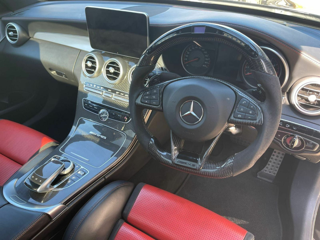 Stunning C63 AMG S With Awesome Power. Finished In Black Metallic With Two Tone Red and Black Nappa Leather Interior. Fantastic Spec Inc: Stage 2 power Upgrade, Downpipes, Carbon LED Race Steering Wheel, 360 Degree Camera, Head Up Display, AMG Selectable Performance Exhaust System, 19'' AMG Cross Spoke Alloys In Matt Black, Red AMG Calipers, Carbon Interior Trim, AMG Night Pack, Electric Heated AMG Performance Seats With Memory, Panoramic Glass Sunroof, Burmester Surround Sound System, COMAND Online, Privacy Glass, DAB, DVD, Bluetooth Interface, LED Intelligent Light System, Electric Folding and Auto Dimming Mirrors, Keyless Entry, Rear Camera, Parking Sensors, Park Assist, Emergency Braking, Adaptive Brake Lights, Adaptive High Beam Assist, Power Closing Boot Lid, Touchpad, Cruise Control. This C63 S Comes With Full Service History.