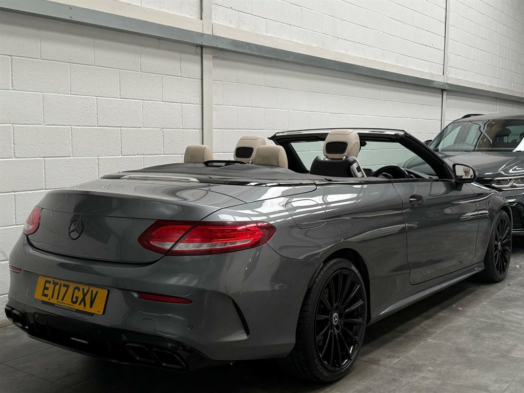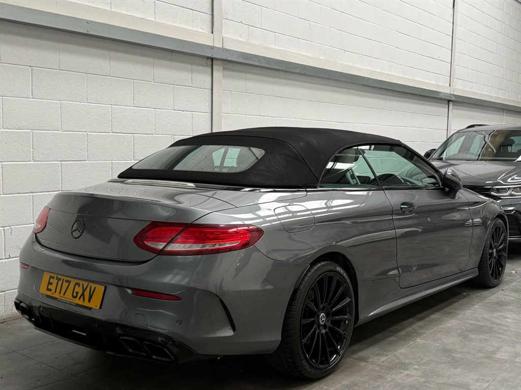 Full Service History, Sat Nav, 360 Surround View Cameras, Premium Plus, GT Grill, Black Pack, Burmester Sound System, Heated Front Seats, C63 Style Diffuser, Convertible, 18" Black Alloys, ABS - Anti-Lock Braking System,AIRCAP - Wind Deflector and Draught-Stop,AIRSCARF - Neck Level Heating System,AMG Bodystyling - Front and Rear Apron and Side Skirts,ATTENTION Assist,Acoustic Soft-Top - with Enhanced Climate and Noise Comfort,Active Bonnet - Pedestrian Safety Measure which Detects an Impact and Raises Bonnet,Active Parking Assist including PARKTRONIC,Adaptive Brake Lamps,Adaptive Brake with Hold Function - Hill Start Assist - Brake Drying,Agility Control - Sports Suspension - Lowered by 15mm,Ambient Lighting,Anti-Theft Protection Package,Audio 20 CD,Automatic Child Seat Recognition Sensor,Automatic Seat-Belt Presenter for Driver and Front Passenger,Bluetooth Interface for Hands-free Function,Central Locking with Interior Switch - Automatic Locking and Crash Sensor with Emergency Opening Function,Centre Armrest - Front with Stowage,Collision Prevention Assist Plus,DAB Digital Radio Tuner,Door Mirrors - Electrically Adjustable and Heated,Dual-Stage Airbags - Driver and Front Passenger - Sidebags in Front Seats - Driver Kneebag - Pelvis Bag and Windowbags for Driver - Front Passenger and Rear Passengers,Dynamic Select with a Choice of Driving Modes - Comfort - ECO - Sport - Sport Plus - Individual,ESP - Electronic Stability Programme,Electric Parking Brake,Electronic Key - Chrome Surround,Exhaust System - Visible Twin-Pipe Integrated into Rear Bumper,First Aid Kit and Warning Triangle,Floor Mats - Black with AMG Lettering,Front Door Sill Panels with Mercedes-Benz Lettering,Front Electric Windows with One-Touch Opening and Closing including Obstruction Sensors,Fuel Computer,Full LED Tail Lights,Gearshift Paddle on Steering Wheel,Headlamps - LED High Performance with Integrated LED Daytime Running Lights,Heated Front Seats,Heated Windscreen Washer System,ISOFIX Child Seat Attachment Points with Top Tether in Rear,Illuminated Glove Compartment,Instrument Cluster with Two Tube-Design Round Dials and 5.5in TFT Multi-Function Display,Interior Lighting Package,Keyless Entry,Memory Package,Mercedes Connect Me - Standard Services,Mirror Package,Outside Temperature Display,Perforated Front Brake Discs and Brake Calipers with Mercedes-Benz Lettering,Premium Plus Package,Radio Aerial Integrated into Rear Window,Rain Sensing Windscreen Wipers,Remote Boot Release,Reversing Camera,SPEEDTRONIC Cruise Control and Variable Speed Limiter,Seat Belts - Black,Seat Comfort Package,Seats - Rear Split Folding 40-20-40,Semi-Automatic Boot Separator,Service Indicator ASSYST,Soft Top Colour - Black,Sports Direct-Steer System with Speed Sensitive Steering,Sports Pedals in Brushed Stainless Steel with Rubber Studs,Sports Seats with Integrated Head Restraints,Status Display for Rear Seat Belts in Instrument Cluster,Steering Column - Electronically Adjustable for Height and Reach,Steering Wheel - 3-Spoke Multi-Function AMG in Leather with Flattened Bottom Section - Chrome Inserts and Perforated Leather in Grip Area,Steering Wheel - Multi-Function with Audio and Onboard Settings Control,Stowage - Double Cup Holder in Centre Console,Stowage Package,Sun Visors with Illuminated Vanity Mirrors,THERMATIC - Automatic Climate Control - Two-Zone,TIREFIT with Tyre Inflation Compressor,Tinted Glass All Round - Green,Top Surround of Side Windows in Polished Aluminium,Trim - Black Ash Wood with Aluminium Door Trims,Two USB Ports and an SD Card Slot in Centre Console,Tyre Pressure Monitoring System,18" Black Alloys,GT Grill,Black Pack,360 Surround View Cameras,C63 Style Diffuser,Burmester Sound System