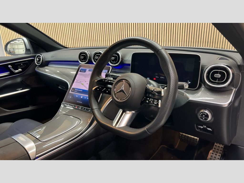 Mercedes-Benz C Class C200 AMG Line 4dr 9G-Tronic 11.9" high resolution multimedia colour display, 12.3" digital instrument cluster display, Active lane keeping assist, Active parking assist with PARKTRONIC, Attention assist, Blind spot assist, Cruise control with speedtronic variable speed limiter, DYNAMIC SELECT with a choice of driving modes (Comfort, ECO, Sport, Sport+, Individual), E-call, Extended MBUX functions, Finger print sensor, Fluorescent jacket for driver, Hard disc navigation, MBUX navigation premium, Mercedes me remote services, Outside temperature gauge, Service indicator (ASSYST), Smartphone integration, Sports direct steer speed sensitive steering, Status display for rear seat belts in instrument cluster, Traffic sign assist, Wireless charging system for mobile devices, 9G TRONIC 9 speed automatic transmission, Petrol Particulate Filter, Sport suspension, DAB Digital radio, MBUX multimedia system, Adaptive brake lights, Adaptive high beam assist, AMG body styling front apron, rear apron and side skirts, AMG Line exterior, Body coloured bumpers, Body coloured door mirrors, Electric windows with one touch opening/closing and obstruction sensors, Electrically adjustable and heated door mirrors, Heat insulating dark tinted glass, LED daytime running lights, LED high performance headlamps, LED Indicators, LED tail lights, LED third brake light, Radiator diamond grille with integrated Mercedes Benz star and louvre silver with chrome pins, Rain sensor with automatic windscreen wiper activation, Rear boot, Rear side wing doors, Two visible exhaust pipes integrated into rear bumper, 3 seat bench in 2nd row, 40:20:40 split folding rear bench seat, Ambient lighting premium, Ambient lighting with projection of brand logo, AMG floor mats, AMG line interior, Artico man-made leather upholstery, Auto Mercedes-Benz child seat recognition sensor, Black roof liner, Double cupholder in centre console, Electrically height/reach adjustable steering column, Folding rear seat backrest, Front and rear head restraints, Gearshift paddles on steering wheel, Heated front seats, Illuminated door sills with Mercedes Benz lettering, Illuminated glove compartment stowage, Multifunction sports steering wheel in nappa leather, Rear top tether child seat ISOFIX attachment, Single front passenger seat, Sports seats, Sunvisors with illuminated vanity mirrors, THERMATIC 2 zone automatic climate control, Interior light package - C Class, Memory package - C Class, Mirror package - C Class, Parking package with reversing camera - C Class, Stowage space pack - C Class, USB package plus - C Class, 3 rear 3 point seatbelts, Active bonnet pedestrian safety measure which detects an impact and raises bonnet, Active brake assist, Adaptive brake system with HOLD function and brake drying in the wet, Anti-lock braking system (ABS), Black seat belts, Brake calipers with Mercedes-Benz lettering + perforated front brake discs, Child proof door locks, Drivers knee airbag, Drivers pelvis airbag, Dual stage driver/passenger airbags, Electric parking brake, Electronic Stability Programme (ESP), Front centre airbag between driver and front passenger seats, Front side airbags, Tyre pressure monitoring system, Warning triangle and first aid kit, Window airbags for driver, front passenger and rear passenger, Antitheft alarm system, Interior monitoring system and Increased antitheft protection, Central locking with interior switch, automatic locking and crash sensor with emergency opening function, Chrome surround in electric key, Keyless Go, Urban guard vehicle protection plus, Dashboard, instrument panel and beltlines in ARTICO man made leather in nappa look, Metal structure trim element with centre console in metal structure finish, 18" AMG 5 spoke design aerodynamically optimised alloy wheels painted in tantalite grey with high sheen finish, TIREFIT with tyre inflation compressor