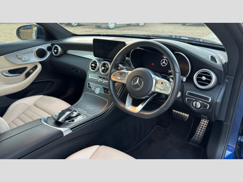 Mercedes-Benz C Class C200 AMG Line Edition Premium 2dr 9G-Tronic 12.3" digital instrument cluster display, Active park assist with parktronic system, Attention assist, Bluetooth interface for hands free telephone, Collision prevention assist plus, Comand Online HDD Nav with media interface,radio/CD/DVD/MP3, 10.25 screen, linguatronic voice control, Cruise control with speedtronic variable speed limiter, DYNAMIC SELECT with a choice of driving modes (ECO, Comfort, Sport, Sport+ and Individual), ECO start/stop function, High resolution 10.25" multimedia colour display, Instrument cluster with 5.5-inch TFT multi-function display, Mercedes me connect including emergency call system, accident recovery, breakdown and maintenance management, Multi function trip computer, Outside temperature display, Pre-wiring for SD navigation system, Remote boot release, Reversing camera, Service indicator (ASSYST), Sports direct steer speed sensitive steering, Status display for rear seat belts in instrument cluster, Wireless charging, 66l fuel tank with increased capacity, 9G Tronic plus 9 speed automatic, Agility control sports suspension lowered by 15 mm, Petrol Particulate Filter, Sport exhaust system, DAB digital radio tuner, Frontbass loudspeakers, Mid-range sound system, SD card slot, Two USB ports and one SD Card slot in centre console, Adaptive brake lights, AMG bodystyling front and rear aprons, side skirts, Body coloured bumpers, Chrome pins diamond radiator grille with integrated stars, Door sill panels with Mercedes Benz lettering, Electric windows with one touch opening/closing and obstruction sensors, Exterior mirrors heated and electronically adjustable, Full LED tail lamps, Green tinted glass, LED daytime running lights, LED Indicators, LED third brake light, Multi beam LED headlights, Privacy glass (rear side windows and rear screen), Radio aerial integrated into rear window, Rain sensor windscreen wipers, Side windows surround in polished aluminium, Visible twin pipe exhaust trim integrated into rear bumper, 2 cupholders in front centre console, 2 rear head restraints, 3-spoke leather multi function AMG steering wheel with flattened bottom section and chrome inserts with perforated leather in grip area, 40:20:40 split folding rear seats, Ambient lighting, AMG sports seats, Auto Mercedes-Benz child seat recognition sensor, Black floor mats with AMG lettering, Electrical height and back adjustment front seat, Front centre armrest with storage compartment, Front head restraints, Front LED reading lights, Heated front seats, Height/reach adjustable steering column, Illuminated glove compartment stowage, Leather upholstery, Sports pedals with stainless steel surfaces and rubber studs, Steering wheel gearshift paddles, Steering wheel touch control buttons for audio and onboard settings, Sunvisors with illuminated vanity mirrors, THERMATIC 2 zone automatic climate control, Interior lighting package - C Class, Memory pack with Electric adjustable steering wheel - C Class, Mirror package - C Class, Seat comfort pack - C Class, Stowage space pack - C Class, 2 rear seatbelts, 3 point automatic seatbelts, Active bonnet, Adaptive brake system with hold function, hill start assist and brake drying function, Anti-lock braking system (ABS), Automatic seatbelt pretensioner for driver and front passenger, Black seat belts, Brake calipers with Mercedes-Benz lettering + perforated brake discs, Dual stage airbags - driver and front passenger, front sidebags, driver kneebag, pelvis bag and windowbags for driver, front and rear passengers, Electronic parking brake, Electronic Stability Programme (ESP), ISOFIX child seat attachment points with top tether in rear, Tyre pressure monitoring system, Warning triangle and first aid kit, Anti-theft alarm system/interior protection with tow-away protection and interior monitoring systems, Central locking with interior switch, automatic locking and crash sensor with emergency opening function, Chrome surround in electric key, Immobiliser, Artico man-made leather dashboard, Black ash wood with brushed aluminium trim, 18" 5 spoke aero alloy wheels in Silver, TIREFIT with tyre inflation compressor