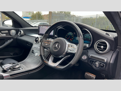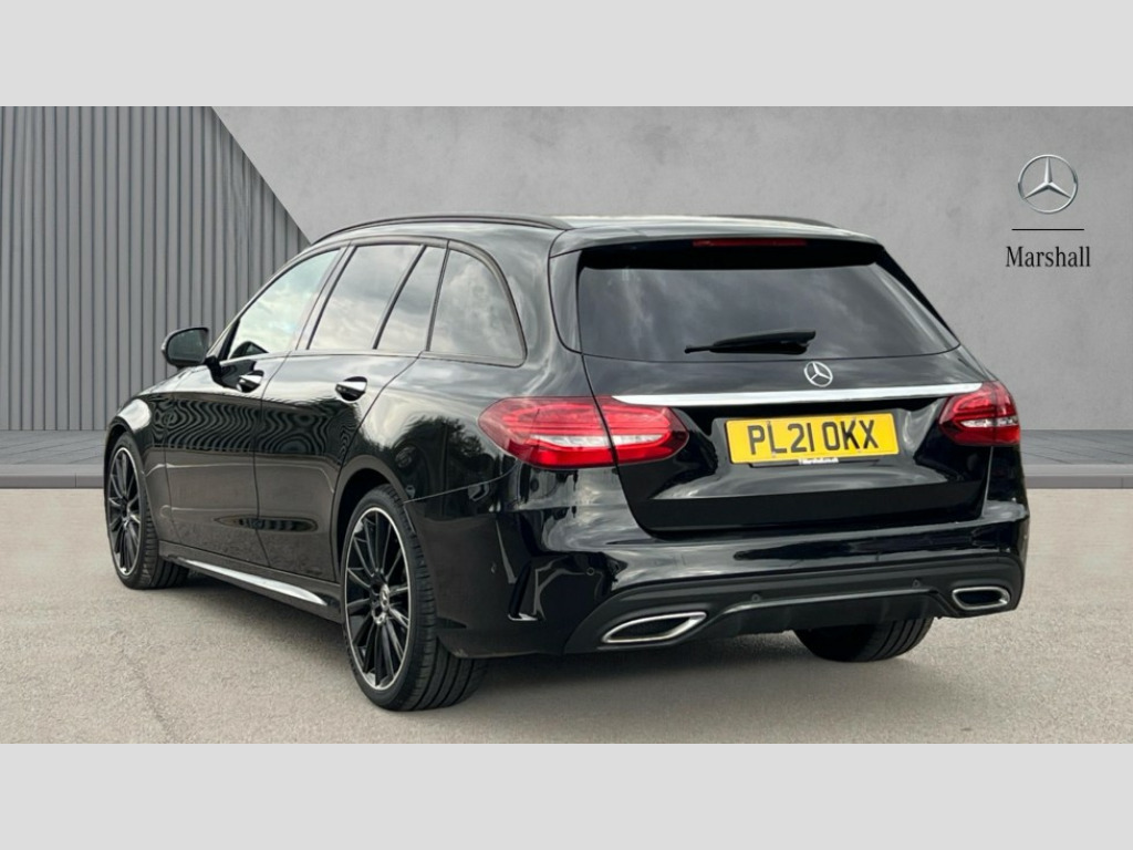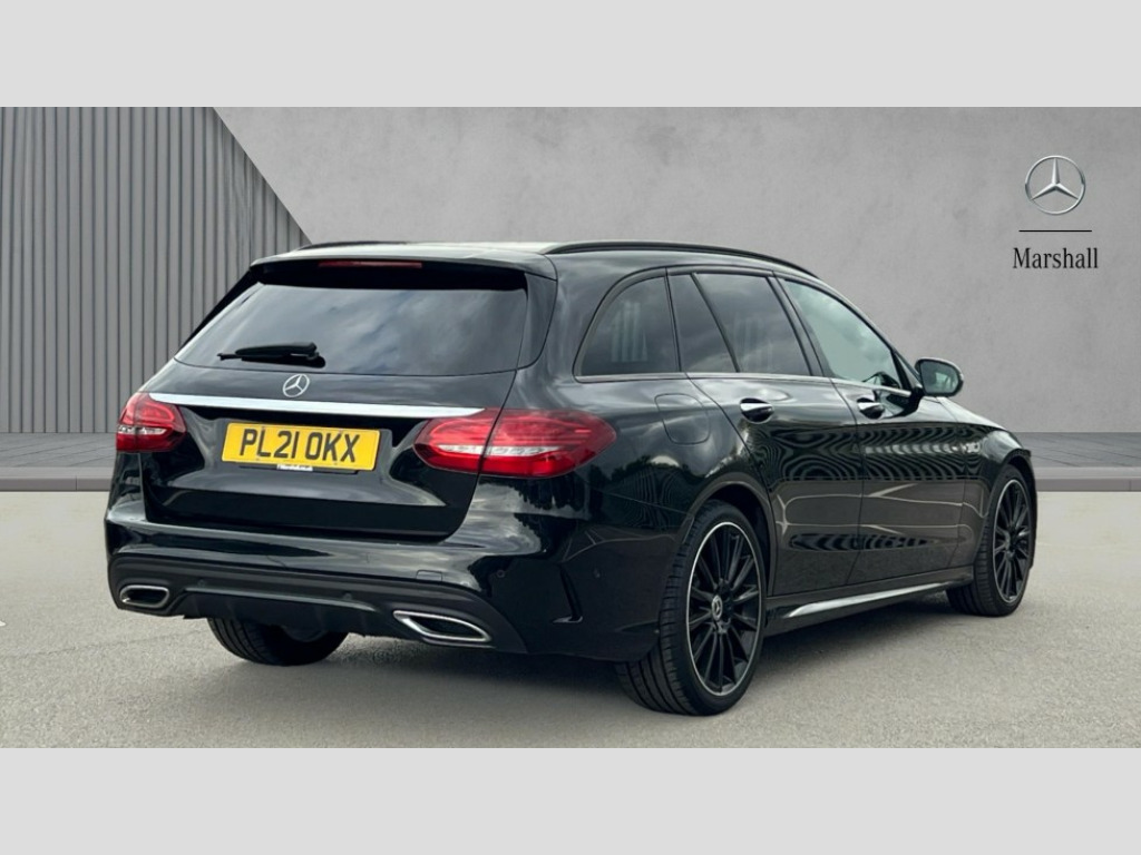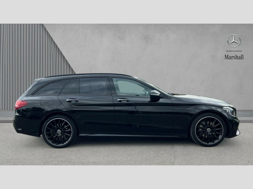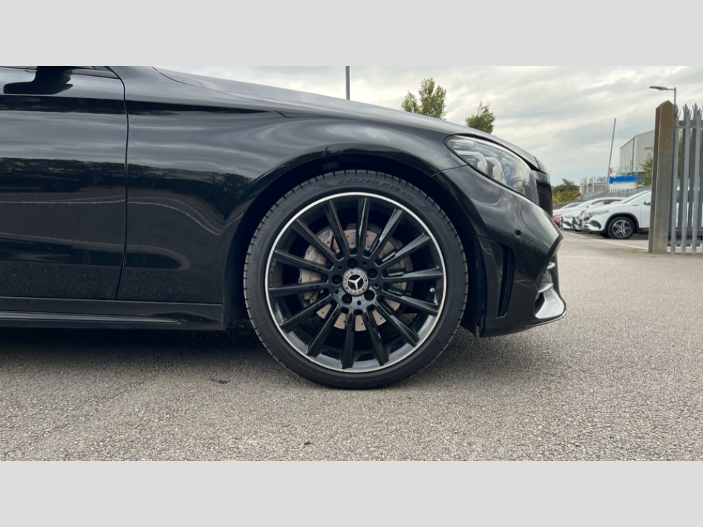 Mercedes-Benz C Class C200 AMG Line Night Ed Premium Plus 5dr 9G-Tronic 12.3" digital instrument cluster display, 360 degree parking camera, Active park assist with parktronic system, Analogue clock, Attention assist, Collision prevention assist plus, Colour display - 10.25" colour display screen, Comand Online HDD Nav with media interface, linguatronic voice control, 2 USB port and one SD card slot in centre console, DYNAMIC SELECT with a choice of driving modes (ECO, Comfort, Sport, Sport+ and Individual), Easy pack automatic powered tailgate, Mercedes connect me, Multi function trip computer, Outside temperature gauge, Remote boot release, Service indicator (ASSYST), Smartphone integration with Apple CarPlay and Android auto, Sports direct steer speed sensitive steering, Status display for rear seat belts in instrument cluster, Wireless charging, 66 litre fuel tank, 9G TRONIC 9 speed automatic transmission, Agility control sports suspension lowered by 15 mm, Petrol Particulate Filter, Burmester surround sound system with 13 speakers and a 9 channel amplifier with total output of 590 watts, DAB Digital radio, Steering wheel mounted audio controls, Adaptive brake lights, AMG body styling front apron, rear apron and side skirts, Automatically dimming rear view mirror and driver's exterior mirror, Chrome pins diamond radiator grille with integrated stars, Electric front sliding and fixed rear panoramic glass sunroof, Electric windows with one touch opening/closing and obstruction sensors, Electrically adjustable and heated door mirrors, Green tinted glass, Heated windscreen washers, High gloss black exterior mirror housing, High gloss black rear bumper insert, LED Indicators, LED tail lights, LED third brake light, Multi beam LED headlights, Privacy glass (rear side windows and rear screen), Radio aerial integrated into rear window, Rain sensor windscreen wipers, Rear wiper, Side windows surround in matt black, Twin tailpipe design integrated into rear bumper, 2 cupholders in front centre console, 3 spoke flat bottom AMG steering wheel in nappa leather with chrome inserts perforated leather grip, 40:20:40 split folding rear seats, AMG sports seats, Auto Mercedes-Benz child seat recognition sensor, Black floor mats with AMG lettering, Dual zone automatic climate control, Front and rear head restraints, Front centre armrest with storage compartment, Front door sills with Mercedes Benz lettering, Gearshift paddles on steering wheel, Heated front seats, Illuminated glovebox, Interior lighting - 64 colour Ambient lighting, Leather upholstery, Load compartment cover, Multifunction steering wheel, Rear top tether child seat ISOFIX attachment, Sports pedals with stainless steel surfaces and rubber studs, Sunvisors with illuminated vanity mirrors, Keyless go comfort package - C Class, Lighting pack - C class, Memory pack with Electric adjustable steering wheel - C Class, Mirror pack - C Class, Night package - C Class estate, Seat comfort pack - C Class, Stowage space pack - C Class, 3 rear 3 point seatbelts, Active bonnet, Adaptive brake system with HOLD function and brake drying in the wet, Anti-lock braking system (ABS), Black seat belts, Brake calipers with Mercedes-Benz lettering + perforated front brake discs, Child proof door locks, Drivers knee airbag, Drivers pelvis airbag, Dual stage driver/passenger airbags, Electronic parking brake, ESP with ASR, Front passenger seat occupancy sensor, Front side airbags, Hill start assist, Rear seatbelt warning indicator, Tyre pressure monitoring system, Warning triangle and first aid kit, Window airbags, Alarm system/interior protection/immobiliser, Central locking with interior switch, automatic locking and crash sensor with emergency opening function, Chrome surround in electric key, Urban guard, Artico man-made leather dashboard with contrast stitching, Open pore black ash wood trim, 19" AMG multi spoke design alloy wheels painted black, Runflat tyres