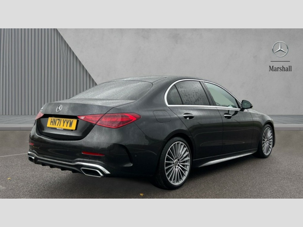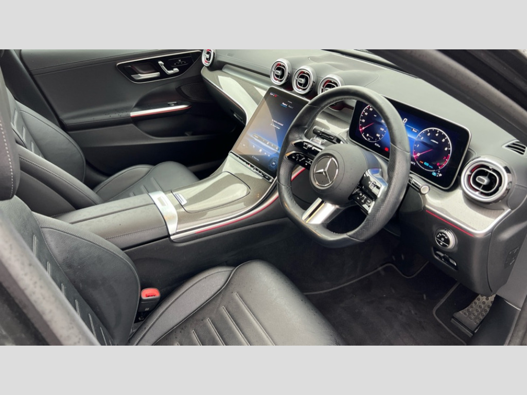 Mercedes-Benz C Class C200 AMG Line Premium 4dr 9G-Tronic 11.9" high resolution multimedia colour display, 12.3" digital instrument cluster display, Active blind spot assist, Active brake assist plus, Active lane keeping assist, Attention assist, Cruise control with speedtronic variable speed limiter, DYNAMIC SELECT with a choice of driving modes (ECO, Comfort, Sport, Sport+ and Individual), E-call, Extended MBUX functions, Finger print sensor, Fluorescent jacket for driver, MBUX augmented reality for navigation, MBUX navigation premium, MBUX voice control activated by keywords "Hey Mercedes", Mercedes connect me, Mercedes me remote services, Outside temperature gauge, Pre-installation for digital key transfer, Remote boot release, Service indicator (ASSYST), Smartphone integration, Sports direct steer speed sensitive steering, Status display for rear seat belts in instrument cluster, Wireless charging system for mobile devices, 66l fuel tank with increased capacity, 9G TRONIC 9 speed automatic transmission, Petrol Particulate Filter, Sports suspension with selective damping system and lowered by 15 mm, Sporty engine sound system, DAB Digital radio, MBUX multimedia system, Steering wheel mounted audio controls, Adaptive brake lights, Adaptive high beam assist plus, AMG body styling front apron, rear apron and side skirts, AMG front bumper with sporty air intakes and chrome elements, AMG rear bumper with high gloss chrome elements, AMG side skirts in vehicle colour, B-pillar trim in glossy black, Body coloured bumpers, Body coloured door mirrors, Chrome beltline trim, Daytime running lights, Digital light LED headlamps, Electric windows with one touch opening/closing and obstruction sensors, Electrically adjustable and heated door mirrors, Green tinted glass, LED Indicators, LED tail lights, LED third brake light, Powerdomes on bonnet, Privacy glass, Radiator diamond grille with integrated Mercedes Benz star and louvre silver with chrome pins, Radio aerial integrated into rear window, Rain sensor with automatic windscreen wiper activation, Rear boot, Rear side wing doors, Two visible exhaust pipes integrated into rear bumper, 3 spoke flattened bottom AMG multifunction steering wheel in black nappa leather with chrome inserts and perforated leather in grip area, AMG sports seats, Auto Mercedes-Benz child seat recognition sensor, Black air vents with silver chrome elements, Black floor mats with AMG lettering, Black roof liner, Door trim elements high gloss black with silver chrome surroundings and switches, Double cupholder in centre console, Electrically height/reach adjustable steering column, Folding rear seat backrest, Front and rear head restraints, Front centre armrest with storage compartment, Gearshift paddles on steering wheel, Heated front seats, Illuminated door sills with Mercedes Benz lettering, Illuminated glove compartment stowage, Interior lighting - 64 colour Ambient lighting, Leather upholstery, Overhead control unit in high gloss black, Rear top tether child seat ISOFIX attachment, Single front passenger seat, Sports pedals with stainless steel surfaces and rubber studs, Sunvisors with illuminated vanity mirrors, THERMATIC 2 zone automatic climate control, Interior lighting package - C Class, Memory package - C Class, Mirror pack - C Class, Parking package with 360 degree camera - C Class, Seat comfort pack - C Class, Stowage space pack - C Class, USB package - C Class, 3 rear 3 point seatbelts, Active bonnet pedestrian safety measure which detects an impact and raises bonnet, Adaptive brake system with HOLD function and brake drying in the wet, Anti-lock braking system (ABS), Black seat belts, Brake calipers with Mercedes-Benz lettering + perforated front brake discs, Child proof door locks, Drivers knee airbag, Drivers pelvis airbag, Dual stage driver/passenger airbags, Electric parking brake, Electronic Stability Programme (ESP), Front centre airbag between driver and front passenger seats, Front side airbags, Larger brake discs on front axle, Rear passenger airbag, Rear seatbelt warning indicator, Sports braking system with perforated front disc brakes, Tyre pressure monitoring system, Warning triangle and first aid kit, Window airbags, Central locking with interior switch, automatic locking and crash sensor with emergency opening function, Chrome surround in electric key, Keyless Go comfort access, URBAN GUARD vehicle protection (Thatcham Category 1) consisting of break-in, anti-theft alarm system (ATA),interior monitoring and tow-away protection, Artico man-made leather dashboard with contrast stitching, Centre console trim in metal weave, 19" AMG multi spoke design alloy wheels painted in black with high sheen finish, Summer tyres, TIREFIT with tyre inflation compressor