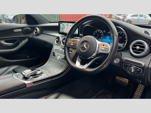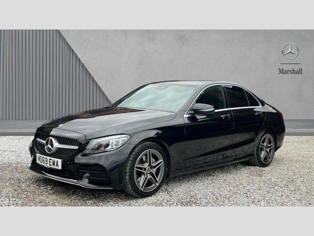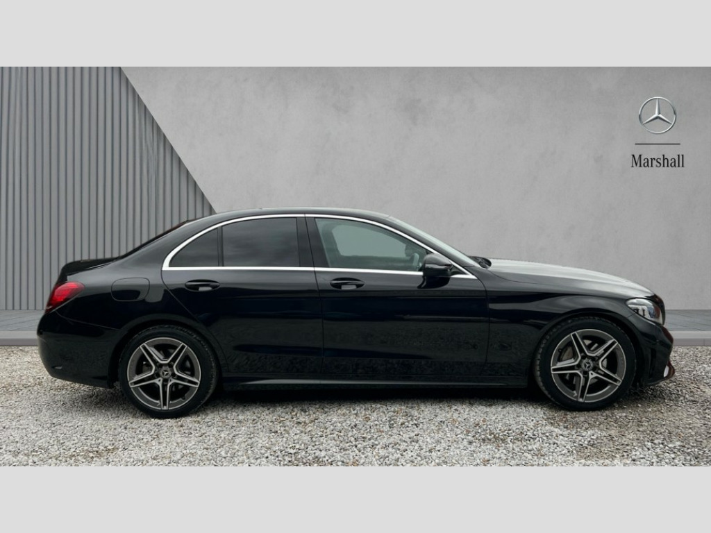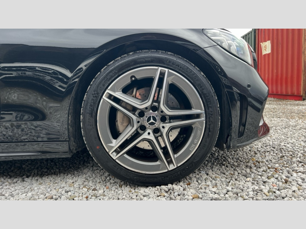 Mercedes-Benz C Class C200 AMG Line Premium 4dr 9G-Tronic Active park assist with parktronic system, Attention assist, Bluetooth system, Collision prevention assist plus, Comand Online HDD Nav with media interface,radio/CD/DVD/MP3, 10.25 screen, linguatronic voice control, DYNAMIC SELECT with a choice of driving modes (ECO, Comfort, Sport, Sport+ and Individual), Multi function trip computer, Outside temperature gauge, Remote boot release, Reversing camera, Service indicator (ASSYST PLUS), Smartphone integration with Apple CarPlay and Android auto, Wireless charging, Petrol Particulate Filter, 2 USB ports in centre console, DAB Digital radio, Mid-range sound system with 7 speakers and 225W amplifier, SD card slot, Steering wheel mounted audio controls, Adaptive brake lights, Aerial in rear window, AMG body styling, Body coloured bumpers, Body coloured door mirrors, Chrome pins diamond radiator grille with integrated stars, Electric windows one touch open/close, Electrically adjustable and heated door mirrors, Green tinted glass, Heated windscreen washers, LED daytime running lights, LED Indicators, LED tail lights, LED third brake light, Multi beam LED headlights, Rain sensor windscreen wipers, Side windows surround in polished aluminium, Twin exhaust pipes, 2 cupholders in front centre console, 3 spoke flat bottom AMG steering wheel in nappa leather, 40:20:40 split folding rear seats, AMG floormats, AMG sports seats, Auto Mercedes-Benz child seat recognition sensor, Dual zone automatic climate control, Electric front seat height adjustment, Front and rear head restraints, Front centre armrest with storage compartment, Front door sills with Mercedes Benz lettering, Gearshift paddles, Heated front seats, Illuminated glovebox, Interior lighting - 64 colour Ambient lighting, Multifunction steering wheel, Rear top tether child seat ISOFIX attachment, Sports pedals with stainless steel surfaces and rubber studs, Sunvisors with illuminated vanity mirrors, Lighting pack - C class, Mirror pack - C Class, Seat comfort pack - C Class, Stowage space pack - C Class, 3 rear 3 point seatbelts, ABS with Brake Assist, Active bonnet, Adaptive brake system, Black seat belts, Brake calipers with Mercedes-Benz lettering + perforated brake discs, Child proof door locks, Crash sensor, Drivers knee airbag, Drivers pelvis airbag, Dual stage driver/passenger airbags, Electronic parking brake, ESP with ASR, Front passenger seat occupancy sensor, Front side airbags, Hill start assist, Rear seatbelt warning indicator, Tyre pressure monitoring system, Warning triangle and first aid kit, Window airbags, Alarm system/interior protection/immobiliser, Chrome surround in electric key, Remote central locking, Tyre inflation kit