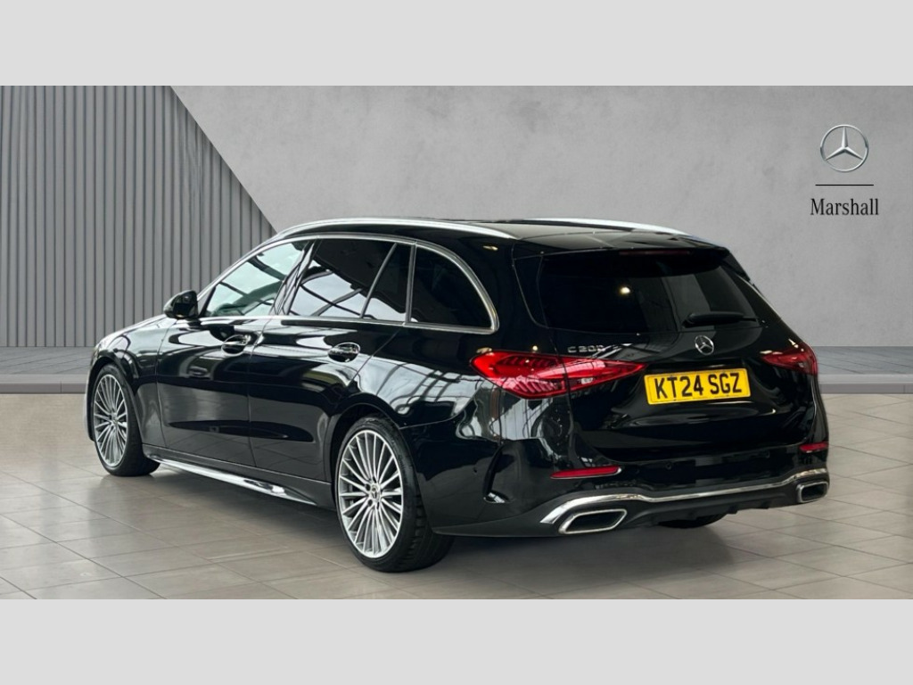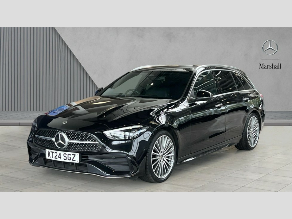 Mercedes-Benz C Class C200 AMG Line Premium 5dr 9G-Tronic 11.9" high resolution multimedia colour display, 12.3" digital instrument cluster display, Active blind spot assist, Active brake assist plus, Active lane keeping assist, Attention assist, Cruise control with speedtronic variable speed limiter, DYNAMIC SELECT with a choice of driving modes (Comfort, ECO, Sport, Sport+, Individual), E-call, Easy pack automatic powered tailgate, Extended MBUX functions, Finger print sensor, Fluorescent jacket for driver, MBUX augmented reality for navigation, MBUX navigation premium, MBUX voice control activated by keywords "Hey Mercedes", Mercedes connect me, Mercedes me remote services, Outside temperature gauge, Pre-installation for digital key transfer, Remote boot release, Service indicator (ASSYST), Smartphone integration, Speed limit assist, Sports direct steer speed sensitive steering, Status display for rear seat belts in instrument cluster, Traffic sign assist, Wireless charging system for mobile devices, 66l fuel tank with increased capacity, 9G TRONIC 9 speed automatic transmission, Agility control sports suspension and lowered by 15 mm, Petrol Particulate Filter, Sporty engine sound system, DAB Digital radio, MBUX multimedia system, Adaptive brake lights, Adaptive high beam assist plus, AMG body styling front apron, rear apron and side skirts, AMG front bumper with sporty air intakes and chrome elements, AMG rear bumper with high gloss chrome elements, AMG side skirts in vehicle colour, B-pillar trim in glossy black, Body coloured bumpers, Body coloured door mirrors, Chrome beltline trim, Chrome roof rails, Daytime running lights, Digital light LED headlamps, Electric windows with one touch opening/closing and obstruction sensors, Electrically adjustable and heated door mirrors, Green tinted glass, Heat insulating dark tinted glass, Illuminated front door sill panels, LED Indicators, LED tail lights, LED third brake light, Noise acoustic glass, Powerdomes on bonnet, Privacy glass, Radiator diamond grille with integrated Mercedes Benz star and louvre silver with chrome pins, Radio aerial integrated into rear window, Rain sensor with automatic windscreen wiper activation, Rear side wing doors, Rear wiper, Two visible exhaust pipes integrated into rear bumper, 3 seat bench in 2nd row, 3 spoke flattened bottom AMG multifunction steering wheel in black nappa leather with chrome inserts and perforated leather in grip area, 40:20:40 split folding rear bench seat, Ambient lighting premium, AMG sports seats, Artico man-made leather upholstery, Audio and onboard settings control on multifunction steering wheel, Auto Mercedes-Benz child seat recognition sensor, Black air vents with silver chrome elements, Black floor mats with AMG lettering, Black roof liner, Door trim elements high gloss black with silver chrome surroundings and switches, Double cupholder in centre console, Electrically height/reach adjustable steering column, Folding rear seat backrest, Front and rear head restraints, Front centre armrest with storage compartment, Gearshift paddles on steering wheel, Heated front seats, Illuminated door sills with Mercedes Benz lettering, Illuminated glove compartment stowage, Load compartment cover, Overhead control unit in high gloss black, Rear top tether child seat ISOFIX attachment, Single front passenger seat, Sports pedals with stainless steel surfaces and rubber studs, Sunvisors with illuminated vanity mirrors, THERMATIC 2 zone automatic climate control, Interior lighting package - C Class, Memory package - C Class, Mirror pack - C Class, Parking package with 360 degree camera - C Class, Seat comfort pack - C Class, Stowage space pack - C Class, USB package plus - C Class, 3 rear 3 point seatbelts, Active bonnet pedestrian safety measure which detects an impact and raises bonnet, Adaptive brake system with HOLD function and brake drying in the wet, Anti-lock braking system (ABS), Black seat belts, Brake calipers with Mercedes-Benz lettering + perforated front brake discs, Child proof door locks, Drivers knee airbag, Drivers pelvis airbag, Dual stage driver/passenger airbags, Electric parking brake, Electronic Stability Programme (ESP), Front centre airbag between driver and front passenger seats, Front side airbags, Larger brake discs on front axle, Rear seatbelt warning indicator, Sports braking system, Tyre pressure monitoring system, Warning triangle and first aid kit, Window airbags for driver, front passenger and rear passenger, Central locking with interior switch, automatic locking and crash sensor with emergency opening function, Chrome surround in electric key, Dashcam, Keyless Go, URBAN GUARD vehicle protection (Thatcham Category 1) consisting of break-in, anti-theft alarm system (ATA),interior monitoring and tow-away protection, Artico man-made leather dashboard with contrast stitching, Centre console trim in metal weave, 19" AMG multi spoke light alloy wheels painted himalayas grey with high sheen finish, Noise reduced tyre with foam absorber, Summer tyres, TIREFIT with tyre inflation compressor