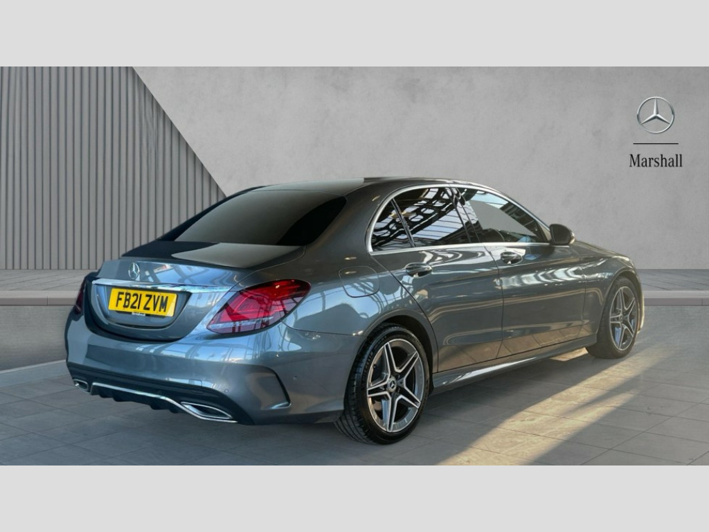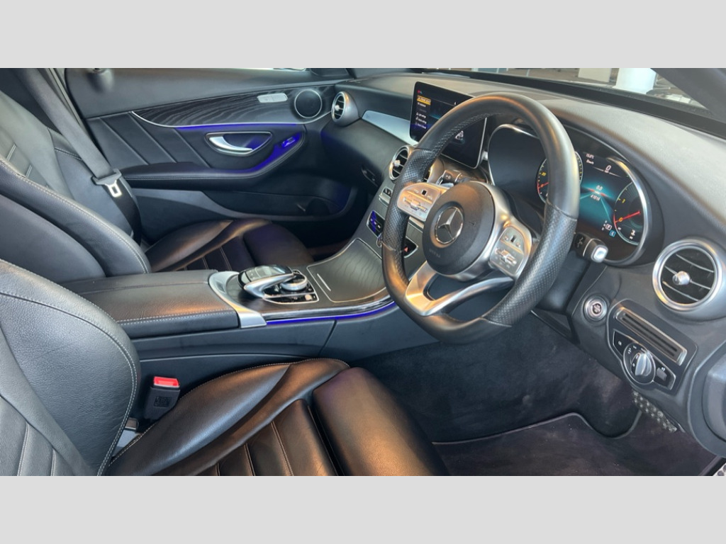 Mercedes-Benz C Class C200d AMG Line Edition Premium 4dr Auto 12.3" digital instrument cluster display, Active park assist with parktronic system, Attention assist, Collision prevention assist plus, Colour display - 10.25" colour display screen, Comand Online HDD Nav with media interface,radio/CD/DVD/MP3, 10.25 screen, linguatronic voice control, DYNAMIC SELECT with a choice of driving modes (ECO, Comfort, Sport, Sport+ and Individual), Mercedes connect me, Multi function trip computer, Outside temperature gauge, Remote boot release, Reversing camera, Service indicator (ASSYST PLUS), Smartphone integration with Apple CarPlay and Android auto, Wireless charging, Diesel particulate filter, 2 USB ports in centre console, Audio 20 with integrated media interface and bluetooth handsfree function, DAB Digital radio, Frontbass loudspeakers, Mid-range sound system with 7 speakers and 225W amplifier, SD card slot, Steering wheel mounted audio controls, Adaptive brake lights, AMG body styling front apron, rear apron and side skirts, Body coloured bumpers, Body coloured door mirrors, Chrome pins diamond radiator grille with integrated stars, Electric windows one touch open/close, Electrically adjustable and heated door mirrors, Green tinted glass, Heated windscreen washers, LED Indicators, LED tail lights, LED third brake light, Multi beam LED headlights, Privacy glass (rear side windows and rear screen), Radio aerial integrated into rear window, Rain sensor windscreen wipers, Side windows surround in polished aluminium, Twin exhaust pipes, 2 cupholders in front centre console, 3 spoke flat bottom AMG steering wheel in nappa leather with chrome inserts perforated leather grip, 40:20:40 split folding rear seats, AMG sports seats, Auto Mercedes-Benz child seat recognition sensor, Black floor mats with AMG lettering, Dual zone automatic climate control, Electric front seat height adjustment, Front and rear head restraints, Front centre armrest with storage compartment, Front door sills with Mercedes Benz lettering, Gearshift paddles on steering wheel, Heated front seats, Illuminated glovebox, Interior lighting - 64 colour Ambient lighting, Leather upholstery, Multifunction steering wheel, Rear top tether child seat ISOFIX attachment, Sports pedals with stainless steel surfaces and rubber studs, Sunvisors with illuminated vanity mirrors, Lighting pack - C class, Mirror pack - C Class, Seat comfort pack - C Class, Stowage space pack - C Class, 3 rear 3 point seatbelts, Active bonnet, Adaptive brake system, Black seat belts, Brake calipers with Mercedes-Benz lettering + perforated brake discs, Child proof door locks, Drivers knee airbag, Drivers pelvis airbag, Dual stage driver/passenger airbags, Electronic parking brake, ESP with ASR, Front passenger seat occupancy sensor, Front side airbags, Hill start assist, Rear seatbelt warning indicator, Tyre pressure monitoring system, Warning triangle and first aid kit, Window airbags, Alarm system/interior protection/immobiliser, Central locking with interior switch, automatic locking and crash sensor with emergency opening function, Chrome surround in electric key, Black ash wood open pore trim with analogue clock, Tyre inflation kit