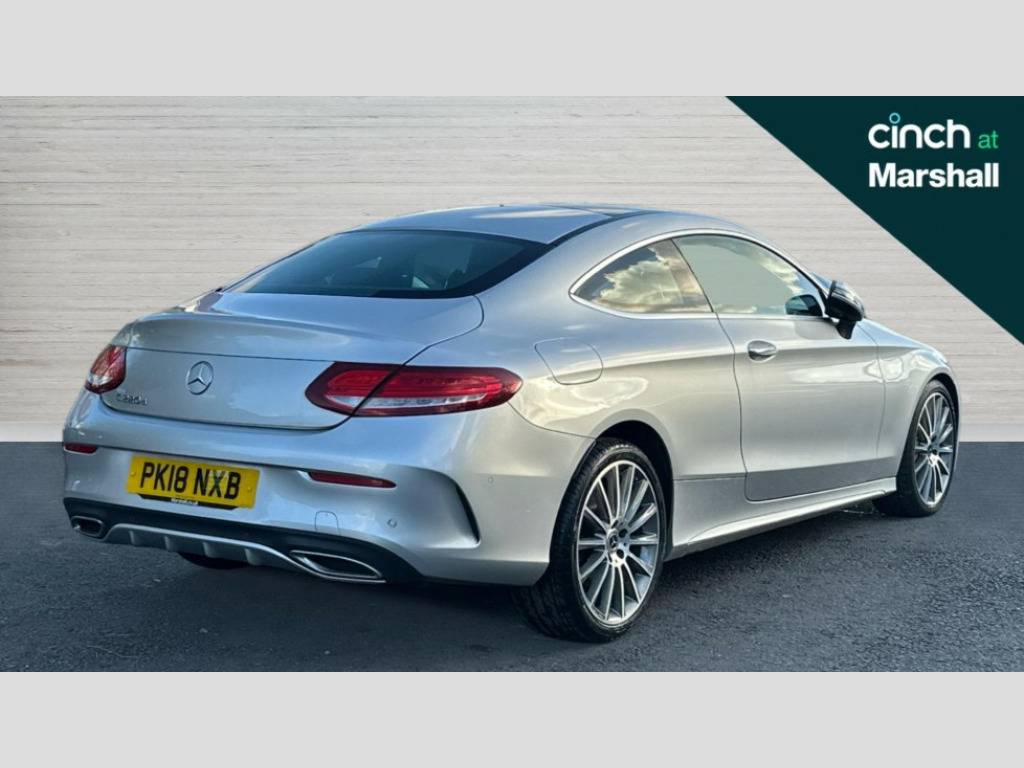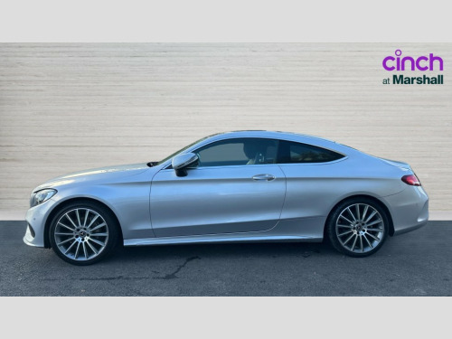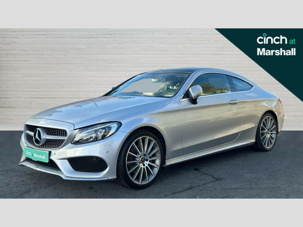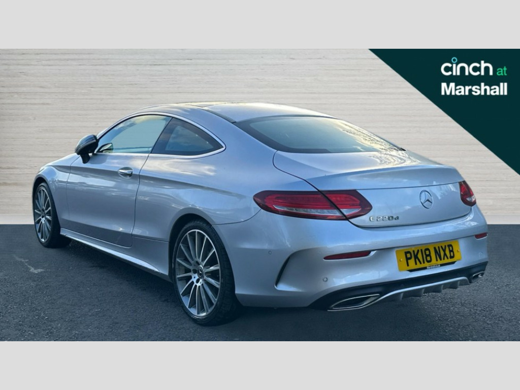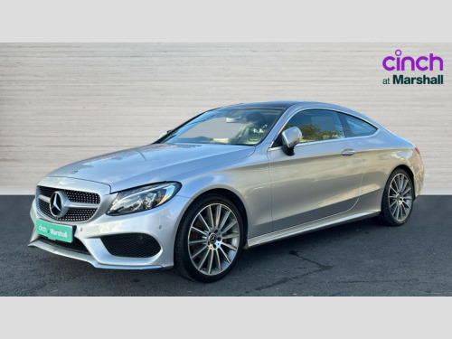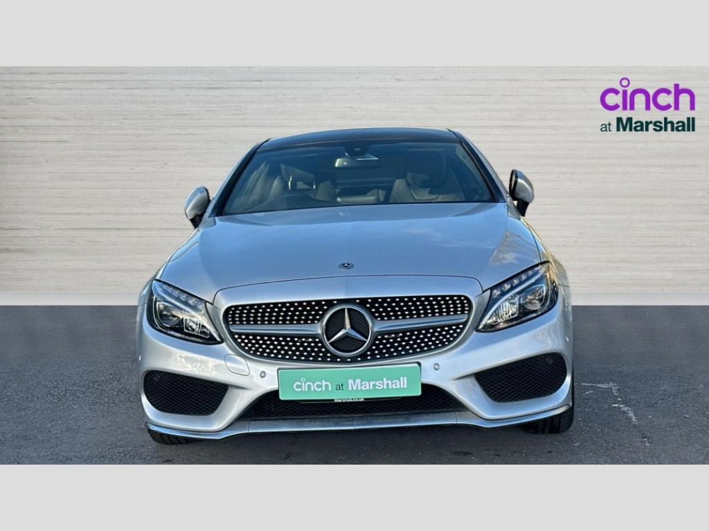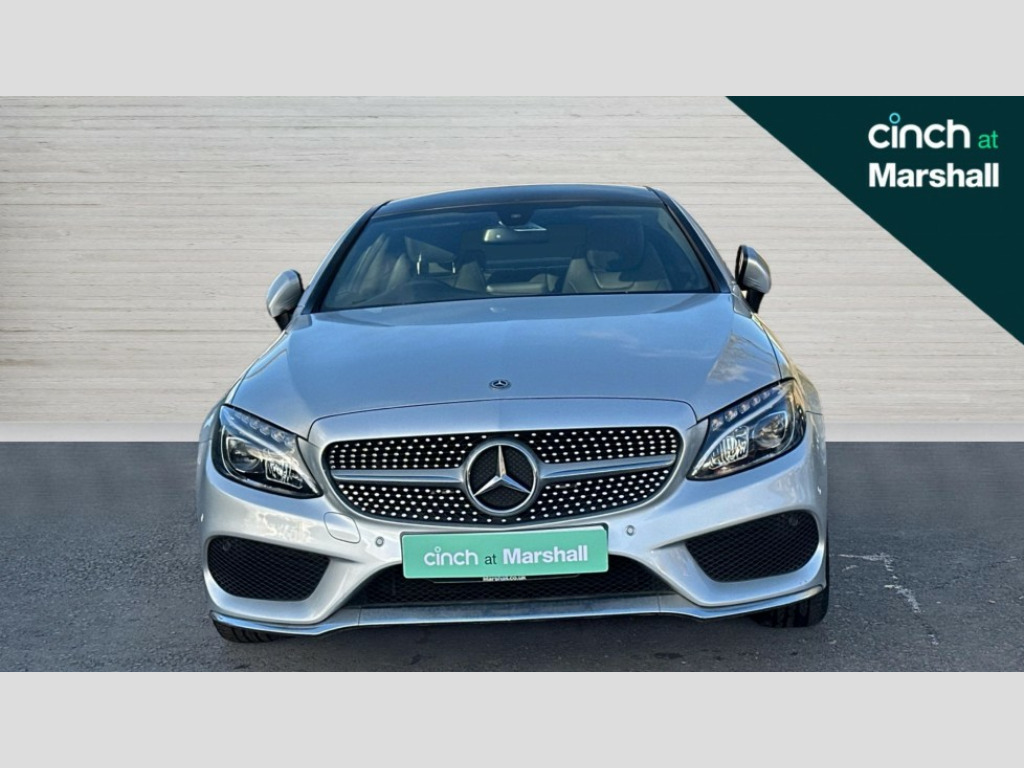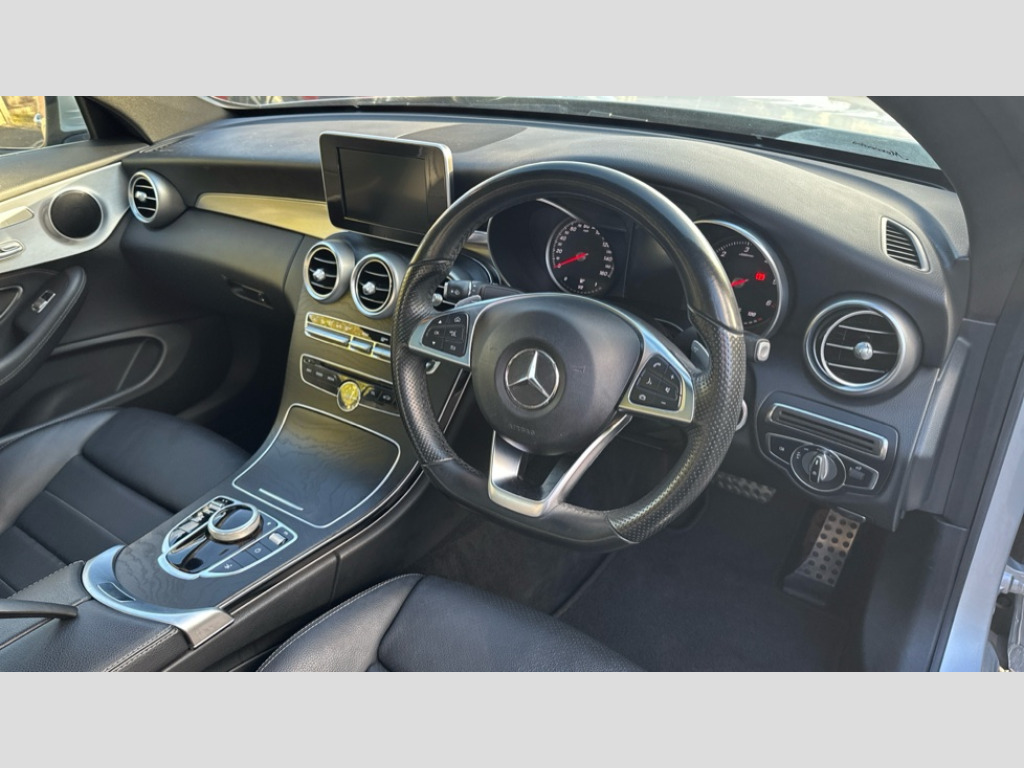 Mercedes-Benz C Class C220d AMG Line Premium 2dr Auto Active park assist with parktronic system, Attention assist, Bluetooth interface for hands free telephone, Collision prevention assist plus, DYNAMIC SELECT with a choice of driving modes (ECO, Comfort, Sport, Sport+ and Individual), Garmin Map Pilot navigation system with SD card, touchpad and voice control, Instrument cluster with 5.5-inch TFT multi-function display, Multi function trip computer, Outside temperature gauge, Remote boot release, Service indicator (ASSYST), Speed sensitive steering, Diesel particulate filter, 2 USB ports, Audio 20 radio/CD with 7" colour display with multi touch keypad, DAB digital radio module, Frontbass loudspeakers, Media interface, Steering column mounted multifunction controls, Adaptive brake lights, AMG front, rear apron and side skirts, Auto dimming driver's door mirror, Auto dimming rear view mirror, Body coloured bumpers, Chrome grille surround, Door sill plates with "Mercedes-Benz" lettering, Electric adjustable/heated/folding door mirrors, Electric front sliding and fixed rear panoramic glass sunroof, Electric windows one touch open/close, Green tinted glass, Heated windscreen washers, LED daytime running lights, LED tail lights, Radiator grille with integral star, Rain sensor windscreen wipers, Side windows surround in polished aluminium, Twin chrome exhaust tailpipes, 2 cupholders in front centre console, 2 rear head restraints, 3 spoke flat bottom multi-function leather AMG steering wheel, 4-way lumbar support for drivers seat, 4-way lumbar support for front passenger seat, 40:20:40 split folding rear seats, Advanced multicolour ambient light and LED interior light, AMG floormats, Auto dual-zone climate control system, Auto Mercedes-Benz child seat recognition sensor, Door courtesy lamps, Electric front seats, Electric height adjustable front seats, Front centre armrest with storage compartment, Front footwell illumination, Heated front seats, Height/reach adjustable steering column, Illuminated front/rear door handle recesses, Illuminated glovebox, Isofix rear child seat fastenings, LED reading lights, Sports pedals with stainless steel surfaces and rubber studs, Sports seats with integrated headrests, Steering wheel gearshift paddles, Sunvisors with illuminated vanity mirrors, Memory pack - C Class, Seat comfort pack - C Class, Stowage space pack - C Class, 2 rear seatbelts, ABS + BAS, Active bonnet, Adaptive brake system, Brake calipers with Mercedes-Benz lettering + perforated brake discs, Drivers knee airbag, Drivers pelvis airbag, Dual stage driver/passenger airbags, Electronic parking brake, ESP with ASR, Front side airbags, Hill hold control, Hill start assist, Tyre pressure monitoring system, Warning triangle and first aid kit, Window airbags, Alarm system/interior protection/immobiliser, Chrome surround in electric key, Keyless entry and keyless start, Remote central locking