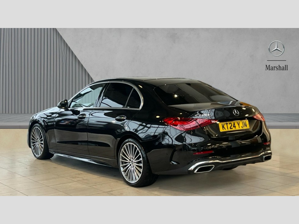 Mercedes-Benz C Class C220d AMG Line Premium 4dr 9G-Tronic 11.9" high resolution multimedia colour display, 12.3" digital instrument cluster display, Active blind spot assist, Active brake assist plus, Active lane keeping assist, AMG DYNAMIC SELECT with a choice of driving modes (Slippery, Comfort, Sport, Sport+, Individual), Attention assist, Cruise control with speedtronic variable speed limiter, E-call, Extended MBUX functions, Finger print sensor, Fluorescent jacket for driver, MBUX augmented reality for navigation, MBUX navigation premium, MBUX voice control activated by keywords "Hey Mercedes", Mercedes connect me, Mercedes me remote services, Outside temperature gauge, Pre-installation for digital key transfer, Remote boot release, Service indicator (ASSYST), Smartphone integration, Speed limit assist, Sports direct steer speed sensitive steering, Status display for rear seat belts in instrument cluster, 66l fuel tank with increased capacity, 9G TRONIC 9 speed automatic transmission, Agility control sports suspension and lowered by 15 mm, Diesel particulate filter, DAB Digital radio, MBUX multimedia system, Adaptive brake lights, Adaptive high beam assist plus, AMG body styling front apron, rear apron and side skirts, AMG front bumper with sporty air intakes and chrome elements, AMG rear bumper with high gloss chrome elements, AMG side skirts in vehicle colour, B-pillar trim in glossy black, Body coloured bumpers, Body coloured door mirrors, Chrome beltline trim, Daytime running lights, Digital light LED headlamps, Electric windows with one touch opening/closing and obstruction sensors, Electrically adjustable and heated door mirrors, Green tinted glass, LED Indicators, LED tail lights, LED third brake light, Powerdomes on bonnet, Privacy glass, Radiator diamond grille with integrated Mercedes Benz star and louvre silver with chrome pins, Radio aerial integrated into rear window, Rain sensor with automatic windscreen wiper activation, Rear boot, Rear side wing doors, Two visible exhaust pipes integrated into rear bumper, 3 seat bench in 2nd row, 3 spoke flattened bottom AMG multifunction steering wheel in black nappa leather with chrome inserts and perforated leather in grip area, 40:20:40 split folding rear bench seat, AMG sports seats, Artico man-made leather upholstery, Audio and onboard settings control on multifunction steering wheel, Auto Mercedes-Benz child seat recognition sensor, Black air vents with silver chrome elements, Black floor mats with AMG lettering, Black roof liner, Door trim elements high gloss black with silver chrome surroundings and switches, Double cupholder in centre console, Electrically height/reach adjustable steering column, Folding rear seat backrest, Front and rear head restraints, Front centre armrest with storage compartment, Gearshift paddles on steering wheel, Heated front seats, Illuminated door sills with Mercedes Benz lettering, Illuminated glove compartment stowage, Interior lighting - 64 colour Ambient lighting, Overhead control unit in high gloss black, Rear top tether child seat ISOFIX attachment, Single front passenger seat, Sports pedals with stainless steel surfaces and rubber studs, Sunvisors with illuminated vanity mirrors, THERMATIC 2 zone automatic climate control, Interior lighting package - C Class, Memory package - C Class, Mirror pack - C Class, Parking package with 360 degree camera - C Class, Seat comfort pack - C Class, Stowage space pack - C Class, USB package - C Class, 3 rear 3 point seatbelts, Active bonnet pedestrian safety measure which detects an impact and raises bonnet, Adaptive brake system with HOLD function and brake drying in the wet, Anti-lock braking system (ABS), Black seat belts, Brake calipers with Mercedes-Benz lettering + perforated front brake discs, Child proof door locks, Drivers knee airbag, Drivers pelvis airbag, Dual stage driver/passenger airbags, Electric parking brake, Electronic Stability Programme (ESP), Front centre airbag between driver and front passenger seats, Front side airbags, Larger brake discs on front axle, Rear seatbelt warning indicator, Sports braking system with perforated front disc brakes, Tyre pressure monitoring system, Warning triangle and first aid kit, Window airbags for driver, front passenger and rear passenger, Central locking with interior switch, automatic locking and crash sensor with emergency opening function, Chrome surround in electric key, Keyless Go, URBAN GUARD vehicle protection (Thatcham Category 1) consisting of break-in, anti-theft alarm system (ATA),interior monitoring and tow-away protection, Artico man-made leather dashboard with contrast stitching, Centre console trim in metal weave, 19" AMG multi spoke light alloy wheels painted himalayas grey with high sheen finish, Summer tyres, TIREFIT with tyre inflation compressor