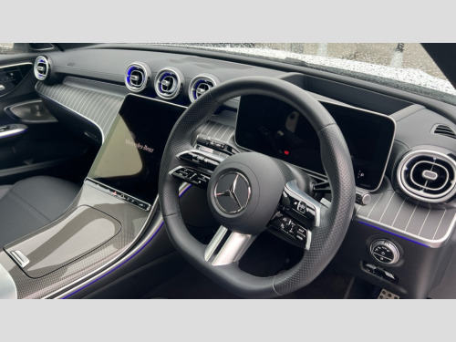 Mercedes-Benz C Class C220d AMG Line Premium Plus 5dr 9G-Tronic 11.9" high resolution multimedia colour display, 12.3" digital instrument cluster display, Active parking assist with PARKTRONIC, Attention assist, DYNAMIC SELECT with a choice of driving modes (Comfort, ECO, Sport, Sport+, Individual), E-call, Extended MBUX functions, Finger print sensor, Fluorescent jacket for driver, Hard disc navigation, Head up Display, MBUX navigation premium, Mercedes me remote services, Outside temperature gauge, Service indicator (ASSYST), Smartphone integration, Sports direct steer speed sensitive steering, Status display for rear seat belts in instrument cluster, Traffic sign assist, Wireless charging system for mobile devices, 9G TRONIC 9 speed automatic transmission, Diesel particulate filter, Sport suspension, Burmester 3D surround sound system, DAB Digital radio, MBUX multimedia system, Adaptive brake lights, Adaptive high beam assist plus, Aluminium roof rails, AMG body styling front apron, rear apron and side skirts, AMG Line exterior, Body coloured bumpers, Body coloured door mirrors, Digital light LED headlamps, Electric windows with one touch opening/closing and obstruction sensors, Electrically adjustable and heated door mirrors, Heat insulating dark tinted glass, LED daytime running lights, LED Indicators, LED tail lights, LED third brake light, Noise acoustic glass, Panoramic glass sunroof, Radiator diamond grille with integrated Mercedes Benz star and louvre silver with chrome pins, Rain sensor with automatic windscreen wiper activation, Rear side wing doors, Rear wiper, Two visible exhaust pipes integrated into rear bumper, 3 seat bench in 2nd row, 40:20:40 split folding rear bench seat, Ambient lighting premium, Ambient lighting with projection of brand logo, AMG floor mats, AMG line interior, Artico man-made leather upholstery, Auto Mercedes-Benz child seat recognition sensor, Black roof liner, Comfort seats, Double cupholder in centre console, Electrically height/reach adjustable steering column, Folding rear seat backrest, Front and rear head restraints, Gearshift paddles on steering wheel, Illuminated door sills with Mercedes Benz lettering, Illuminated glove compartment stowage, Load compartment cover, Multifunction sports steering wheel in nappa leather, Rear top tether child seat ISOFIX attachment, Single front passenger seat, Sunvisors with illuminated vanity mirrors, THERMATIC 2 zone automatic climate control, AIR BALANCE Package - C Class, Boot comfort package - C Class, Easy pack tailgate - C Class, Energizing package plus - C Class, Interior light package - C Class, Keyless go comfort package - C Class, Memory package - C Class, Mirror package - C Class, Parking package with 360 degree camera - C Class, Stowage space pack - C Class, USB package plus - C Class, 3 rear 3 point seatbelts, Active bonnet pedestrian safety measure which detects an impact and raises bonnet, Adaptive brake system with HOLD function and brake drying in the wet, Anti-lock braking system (ABS), Black seat belts, Brake calipers with Mercedes-Benz lettering + perforated front brake discs, Child proof door locks, Drivers knee airbag, Drivers pelvis airbag, Dual stage driver/passenger airbags, Electric parking brake, Electronic Stability Programme (ESP), Front centre airbag between driver and front passenger seats, Front side airbags, Tyre pressure monitoring system, Warning triangle and first aid kit, Window airbags for driver, front passenger and rear passenger, Antitheft alarm system, Interior monitoring system and Increased antitheft protection, Central locking with interior switch, automatic locking and crash sensor with emergency opening function, Chrome surround in electric key, Urban guard vehicle protection plus, Black open pore aluminium lines wood trim with centre console in metal structure finish, Dashboard, instrument panel and beltlines in ARTICO man made leather in nappa look, 19" AMG multi spoke light alloy wheels painted black with high sheen finish, TIREFIT with tyre inflation compressor