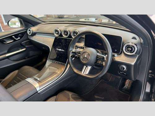Mercedes-Benz C Class C300 AMG Line Premium 5dr 9G-Tronic 11.9" high resolution multimedia colour display, 12.3" digital instrument cluster display, Active blind spot assist, Active brake assist plus, Active lane keeping assist, Attention assist, Cruise control with speedtronic variable speed limiter, DYNAMIC SELECT with a choice of driving modes (Comfort, ECO, Sport, Sport+, Individual), E-call, Easy pack automatic powered tailgate, Extended MBUX functions, Finger print sensor, Fluorescent jacket for driver, MBUX augmented reality for navigation, MBUX navigation premium, MBUX voice control activated by keywords "Hey Mercedes", Mercedes connect me, Mercedes me remote services, Outside temperature gauge, Pre-installation for digital key transfer, Remote boot release, Service indicator (ASSYST), Smartphone integration, Speed limit assist, Sports direct steer speed sensitive steering, Status display for rear seat belts in instrument cluster, Traffic sign assist, Wireless charging system for mobile devices, 66l fuel tank with increased capacity, 9G TRONIC 9 speed automatic transmission, Agility control sports suspension and lowered by 15 mm, Petrol Particulate Filter, Sporty engine sound system, DAB Digital radio, MBUX multimedia system, Adaptive brake lights, Adaptive high beam assist plus, AMG body styling front apron, rear apron and side skirts, AMG front bumper with sporty air intakes and chrome elements, AMG rear bumper with high gloss chrome elements, AMG side skirts in vehicle colour, B-pillar trim in glossy black, Body coloured bumpers, Body coloured door mirrors, Chrome beltline trim, Chrome roof rails, Daytime running lights, Digital light LED headlamps, Electric windows with one touch opening/closing and obstruction sensors, Electrically adjustable and heated door mirrors, Green tinted glass, Heat insulating dark tinted glass, Illuminated front door sill panels, LED Indicators, LED tail lights, LED third brake light, Noise acoustic glass, Powerdomes on bonnet, Privacy glass, Radiator diamond grille with integrated Mercedes Benz star and louvre silver with chrome pins, Radio aerial integrated into rear window, Rain sensor with automatic windscreen wiper activation, Rear side wing doors, Rear wiper, Two visible exhaust pipes integrated into rear bumper, 3 seat bench in 2nd row, 3 spoke flattened bottom AMG multifunction steering wheel in black nappa leather with chrome inserts and perforated leather in grip area, 40:20:40 split folding rear bench seat, Ambient lighting premium, AMG sports seats, Artico man-made leather upholstery, Audio and onboard settings control on multifunction steering wheel, Auto Mercedes-Benz child seat recognition sensor, Black air vents with silver chrome elements, Black floor mats with AMG lettering, Black roof liner, Door trim elements high gloss black with silver chrome surroundings and switches, Double cupholder in centre console, Electrically height/reach adjustable steering column, Folding rear seat backrest, Front and rear head restraints, Front centre armrest with storage compartment, Gearshift paddles on steering wheel, Heated front seats, Illuminated door sills with Mercedes Benz lettering, Illuminated glove compartment stowage, Load compartment cover, Overhead control unit in high gloss black, Rear top tether child seat ISOFIX attachment, Single front passenger seat, Sports pedals with stainless steel surfaces and rubber studs, Sunvisors with illuminated vanity mirrors, THERMATIC 2 zone automatic climate control, Interior lighting package - C Class, Memory package - C Class, Mirror pack - C Class, Parking package with 360 degree camera - C Class, Seat comfort pack - C Class, Stowage space pack - C Class, USB package plus - C Class, 3 rear 3 point seatbelts, Active bonnet pedestrian safety measure which detects an impact and raises bonnet, Adaptive brake system with HOLD function and brake drying in the wet, Anti-lock braking system (ABS), Black seat belts, Brake calipers with Mercedes-Benz lettering + perforated front brake discs, Child proof door locks, Drivers knee airbag, Drivers pelvis airbag, Dual stage driver/passenger airbags, Electric parking brake, Electronic Stability Programme (ESP), Front centre airbag between driver and front passenger seats, Front side airbags, Larger brake discs on front axle, Rear seatbelt warning indicator, Sports braking system, Tyre pressure monitoring system, Warning triangle and first aid kit, Window airbags for driver, front passenger and rear passenger, Central locking with interior switch, automatic locking and crash sensor with emergency opening function, Chrome surround in electric key, Dashcam, Keyless Go, URBAN GUARD vehicle protection (Thatcham Category 1) consisting of break-in, anti-theft alarm system (ATA),interior monitoring and tow-away protection, Artico man-made leather dashboard with contrast stitching, Centre console trim in metal weave, 19" AMG multi spoke light alloy wheels painted himalayas grey with high sheen finish, Noise reduced tyre with foam absorber, Summer tyres, TIREFIT with tyre inflation compressor