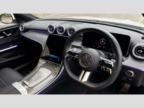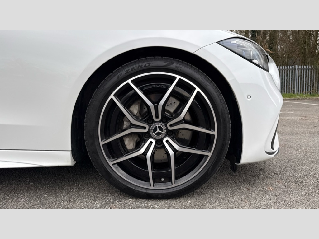 Mercedes-Benz C Class C300 AMG Line Premium 5dr 9G-Tronic 11.9" high resolution multimedia colour display, 12.3" digital instrument cluster display, Active blind spot assist, Active brake assist plus, Active lane keeping assist, Attention assist, Cruise control with speedtronic variable speed limiter, DYNAMIC SELECT with a choice of driving modes (Comfort, ECO, Sport, Sport+, Individual), E-call, Easy pack automatic powered tailgate, Extended MBUX functions, Finger print sensor, Fluorescent jacket for driver, MBUX augmented reality for navigation, MBUX navigation premium, MBUX voice control activated by keywords "Hey Mercedes", Mercedes connect me, Mercedes me remote services, Outside temperature gauge, Pre-installation for digital key transfer, Remote boot release, Service indicator (ASSYST), Smartphone integration, Speed limit assist, Sports direct steer speed sensitive steering, Status display for rear seat belts in instrument cluster, Traffic sign assist, Wireless charging system for mobile devices, 66l fuel tank with increased capacity, 9G TRONIC 9 speed automatic transmission, Agility control sports suspension and lowered by 15 mm, Petrol Particulate Filter, Sporty engine sound system, DAB Digital radio, MBUX multimedia system, Adaptive brake lights, Adaptive high beam assist plus, AMG body styling front apron, rear apron and side skirts, AMG front bumper with sporty air intakes and chrome elements, AMG rear bumper with high gloss chrome elements, AMG side skirts in vehicle colour, B-pillar trim in glossy black, Body coloured bumpers, Body coloured door mirrors, Chrome beltline trim, Chrome roof rails, Daytime running lights, Digital light LED headlamps, Electric windows with one touch opening/closing and obstruction sensors, Electrically adjustable and heated door mirrors, Green tinted glass, Heat insulating dark tinted glass, Illuminated front door sill panels, LED Indicators, LED tail lights, LED third brake light, Noise acoustic glass, Powerdomes on bonnet, Privacy glass, Radiator diamond grille with integrated Mercedes Benz star and louvre silver with chrome pins, Radio aerial integrated into rear window, Rain sensor with automatic windscreen wiper activation, Rear side wing doors, Rear wiper, Two visible exhaust pipes integrated into rear bumper, 3 seat bench in 2nd row, 3 spoke flattened bottom AMG multifunction steering wheel in black nappa leather with chrome inserts and perforated leather in grip area, 40:20:40 split folding rear bench seat, Ambient lighting premium, AMG sports seats, Artico man-made leather upholstery, Audio and onboard settings control on multifunction steering wheel, Auto Mercedes-Benz child seat recognition sensor, Black air vents with silver chrome elements, Black floor mats with AMG lettering, Black roof liner, Door trim elements high gloss black with silver chrome surroundings and switches, Double cupholder in centre console, Electrically height/reach adjustable steering column, Folding rear seat backrest, Front and rear head restraints, Front centre armrest with storage compartment, Gearshift paddles on steering wheel, Heated front seats, Illuminated door sills with Mercedes Benz lettering, Illuminated glove compartment stowage, Load compartment cover, Overhead control unit in high gloss black, Rear top tether child seat ISOFIX attachment, Single front passenger seat, Sports pedals with stainless steel surfaces and rubber studs, Sunvisors with illuminated vanity mirrors, THERMATIC 2 zone automatic climate control, Interior lighting package - C Class, Memory package - C Class, Mirror pack - C Class, Parking package with 360 degree camera - C Class, Seat comfort pack - C Class, Stowage space pack - C Class, USB package plus - C Class, 3 rear 3 point seatbelts, Active bonnet pedestrian safety measure which detects an impact and raises bonnet, Adaptive brake system with HOLD function and brake drying in the wet, Anti-lock braking system (ABS), Black seat belts, Brake calipers with Mercedes-Benz lettering + perforated front brake discs, Child proof door locks, Drivers knee airbag, Drivers pelvis airbag, Dual stage driver/passenger airbags, Electric parking brake, Electronic Stability Programme (ESP), Front centre airbag between driver and front passenger seats, Front side airbags, Larger brake discs on front axle, Rear seatbelt warning indicator, Sports braking system, Tyre pressure monitoring system, Warning triangle and first aid kit, Window airbags for driver, front passenger and rear passenger, Central locking with interior switch, automatic locking and crash sensor with emergency opening function, Chrome surround in electric key, Dashcam, Keyless Go, URBAN GUARD vehicle protection (Thatcham Category 1) consisting of break-in, anti-theft alarm system (ATA),interior monitoring and tow-away protection, Artico man-made leather dashboard with contrast stitching, Centre console trim in metal weave, 19" AMG multi spoke light alloy wheels painted himalayas grey with high sheen finish, Noise reduced tyre with foam absorber, Summer tyres, TIREFIT with tyre inflation compressor