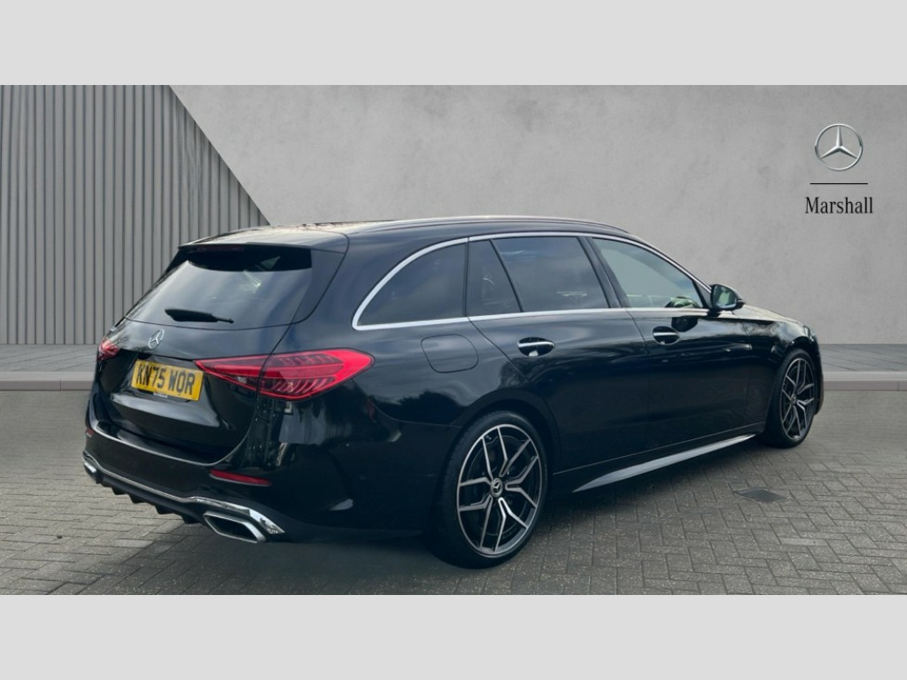 Mercedes-Benz C Class C300 AMG Line Premium [Pan Roof] 5dr 9G-Tronic 11.9" high resolution multimedia colour display, 12.3" digital instrument cluster display, Active lane keeping assist, Active parking assist with PARKTRONIC, Attention assist, Blind spot assist, Cruise control with speedtronic variable speed limiter, DYNAMIC SELECT with a choice of driving modes (Comfort, ECO, Sport, Sport+, Individual), E-call, Extended MBUX functions, Finger print sensor, Fluorescent jacket for driver, Hard disc navigation, MBUX augmented reality for navigation, MBUX navigation premium, Mercedes me remote services, Outside temperature gauge, Service indicator (ASSYST), Smartphone integration, Sports direct steer speed sensitive steering, Status display for rear seat belts in instrument cluster, Traffic sign assist, Wireless charging system for mobile devices, 66 litre fuel tank, 9G TRONIC 9 speed automatic transmission, Petrol Particulate Filter, Sport suspension, Advanced sound system, DAB Digital radio, MBUX multimedia system, Adaptive brake lights, Adaptive high beam assist plus, Aluminium roof rails, AMG body styling front apron, rear apron and side skirts, AMG Line exterior, Body coloured bumpers, Body coloured door mirrors, Digital light LED headlamps, Electric windows with one touch opening/closing and obstruction sensors, Electrically adjustable and heated door mirrors, Heat insulating dark tinted glass, LED daytime running lights, LED Indicators, LED tail lights, LED third brake light, Noise acoustic glass, Panoramic glass sunroof, Radiator diamond grille with integrated Mercedes Benz star with chrome pins, Rain sensor with automatic windscreen wiper activation, Rear side wing doors, Rear wiper, Two visible exhaust pipes integrated into rear bumper, 3 seat bench in 2nd row, 40:20:40 split folding rear bench seat, Ambient lighting premium, Ambient lighting with projection of brand logo, AMG floor mats, AMG line interior, Artico man-made leather upholstery, Auto Mercedes-Benz child seat recognition sensor, Black roof liner, Double cupholder in centre console, Electrically height/reach adjustable steering column, Folding rear seat backrest, Front and rear head restraints, Gearshift paddles on steering wheel, Heated front seats, Illuminated door sills with Mercedes Benz lettering, Illuminated glove compartment stowage, Load compartment cover, Multifunction sports steering wheel in nappa leather, Rear top tether child seat ISOFIX attachment, Single front passenger seat, Sports seats, Sunvisors with illuminated vanity mirrors, THERMATIC 2 zone automatic climate control, Boot comfort package - C Class, Easy pack tailgate - C Class, Interior light package - C Class, Keyless go comfort package - C Class, Memory package - C Class, Mirror package - C Class, Parking package with 360 degree camera - C Class, Stowage space pack - C Class, USB package plus - C Class, 3 rear 3 point seatbelts, Active bonnet pedestrian safety measure which detects an impact and raises bonnet, Active brake assist, Adaptive brake system with HOLD function and brake drying in the wet, Anti-lock braking system (ABS), Black seat belts, Brake calipers with Mercedes-Benz lettering + perforated front brake discs, Child proof door locks, Drivers knee airbag, Drivers pelvis airbag, Dual stage driver/passenger airbags, Electric parking brake, Electronic Stability Programme (ESP), Front centre airbag between driver and front passenger seats, Front side airbags, Tyre pressure monitoring system, Warning triangle and first aid kit, Window airbags for driver, front passenger and rear passenger, Antitheft alarm system, Interior monitoring system and Increased antitheft protection, Central locking with interior switch, automatic locking and crash sensor with emergency opening function, Chrome surround in electric key, Urban guard vehicle protection plus, Anthracite linestructure lime wood trim with centre console in black fine structure look, Dashboard, instrument panel and beltlines in ARTICO man made leather in nappa look, 19" AMG 5 twin spoke light alloy wheels painted in black with high sheen finish, TIREFIT with tyre inflation compressor