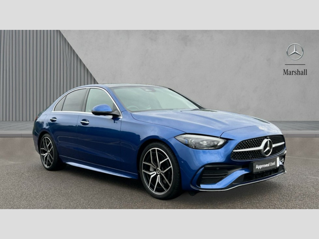 We pride ourselves on not only offering vehicles that meet our high standards but also that offer unrivalled value for money. As part of the Marshall Group, we check our prices daily to ensure that our vehicles are priced correct from day one. 11.9" high resolution multimedia colour display, 12.3" digital instrument cluster display, Active lane keeping assist, Attention assist, DYNAMIC SELECT with a choice of driving modes (Comfort, ECO, Sport, Sport+, Individual), E-call, Extended MBUX functions, Finger print sensor, Fluorescent jacket for driver, Head up Display, MBUX augmented reality for navigation, MBUX navigation premium, MBUX voice control activated by keywords "Hey Mercedes", Mercedes connect me, Mercedes me remote services, Outside temperature gauge, Pre-installation for digital key transfer, Remote boot release, Service indicator (ASSYST), Smartphone integration, Sports direct steer speed sensitive steering, Status display for rear seat belts in instrument cluster, Traffic sign assist, Wireless charging system for mobile devices, 66l fuel tank with increased capacity, 9G TRONIC 9 speed automatic transmission, Agility control sports suspension and lowered by 15 mm, Petrol Particulate Filter, Residual engine heat utilisation, Sporty engine sound system, Burmester 3D surround sound system, DAB Digital radio, MBUX multimedia system, Adaptive brake lights, Adaptive high beam assist plus, AMG body styling front apron, rear apron and side skirts, AMG front bumper with sporty air intakes and chrome elements, AMG rear bumper with high gloss chrome elements, AMG side skirts in vehicle colour, B-pillar trim in glossy black, Body coloured bumpers, Body coloured door mirrors, Chrome beltline trim, Daytime running lights, Digital light LED headlights with projection function, Electric panoramic sliding sunroof, Electric windows with one touch opening/closing and obstruction sensors, Electrically adjustable and heated door mirrors, Green tinted glass, Heat insulating dark tinted glass, Illuminated front door sill panels, LED Indicators, LED tail lights, LED third brake light, Noise acoustic glass, Powerdomes on bonnet, Privacy glass, Radiator diamond grille with integrated Mercedes Benz star and louvre silver with chrome pins, Radio aerial integrated into rear window, Rain sensor with automatic windscreen wiper activation, Rear boot, Rear side wing doors, Two visible exhaust pipes integrated into rear bumper, 3 seat bench in 2nd row, 3 spoke flattened bottom AMG multifunction steering wheel in black nappa leather with chrome inserts and perforated leather in grip area, 40:20:40 split folding rear bench seat, Ambient lighting premium, AMG sports seats, Artico man-made leather upholstery, Audio and onboard settings control on multifunction steering wheel, Auto Mercedes-Benz child seat recognition sensor, Black air vents with silver chrome elements, Black floor mats with AMG lettering, Black roof liner, Door trim elements high gloss black with silver chrome surroundings and switches, Double cupholder in centre console, Electrically height/reach adjustable steering column, Folding rear seat backrest, Front and rear head restraints, Front centre armrest with storage compartment, Gearshift paddles on steering wheel, Heated front seats, Illuminated door sills with Mercedes Benz lettering, Illuminated glove compartment stowage, Overhead control unit in high gloss black, Rear top tether child seat ISOFIX attachment, Single front passenger seat, Sports pedals with stainless steel surfaces and rubber studs, Sunvisors with illuminated vanity mirrors, Thermotronic automatic 4 zone climate control, Interior lighting package - C Class, Memory package - C Class, Mirror pack - C Class, Parking package with 360 degree camera - C Class, Seat comfort pack - C Class, Stowage space pack - C Class, USB package plus - C Class, 3 rear 3 point seatbelts, Active bonnet pedestrian safety measure which detects an impact and raises bonnet, Adaptive brake system with HOLD function and brake drying in the wet, Anti-lock braking system (ABS), Black seat belts, Brake calipers with Mercedes-Benz lettering + perforated front brake discs, Child proof door locks, Drivers knee airbag, Drivers pelvis airbag, Dual stage driver/passenger airbags, Electric parking brake, Electronic Stability Programme (ESP), Front centre airbag between driver and front passenger seats, Front side airbags, Larger brake discs on front axle, Rear seatbelt warning indicator, Sports braking system, Tyre pressure monitoring system, Warning triangle and first aid kit, Window airbags for driver, front passenger and rear passenger, Central locking with interior switch, automatic locking and crash sensor with emergency opening function, Chrome surround electric key, Dashcam, Keyless Go, URBAN GUARD vehicle protection (Thatcham Category 1) consisting of break-in, anti-theft alarm system (ATA),interior monitoring and tow-away protection, Artico man-made leather dashboard with contrast stitching, Centre console trim in anthracite line structure lime wood, 19" AMG 5 twin spoke light alloy wheels aerodynamically optimised painted in black with high sheen finish, Noise reduced tyre with foam absorber, Summer tyres, TIREFIT with tyre inflation compressor