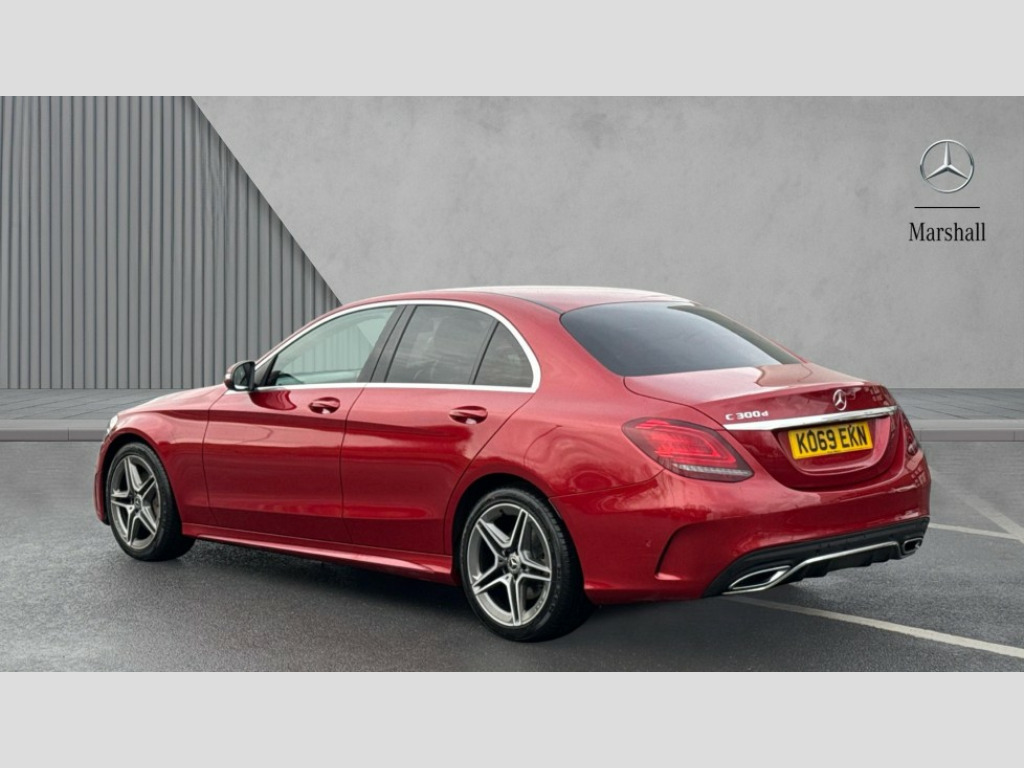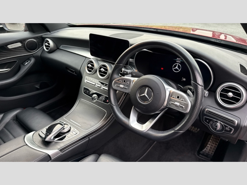 Mercedes-Benz C Class C300d AMG Line Edition Premium 4dr 9G-Tronic 12.3" digital instrument cluster display, Active park assist with parktronic system, Attention assist, Collision prevention assist plus, Colour display - 10.25" colour display screen, Comand Online HDD Nav with media interface,radio/CD/DVD/MP3, 10.25 screen, linguatronic voice control, DYNAMIC SELECT with a choice of driving modes (ECO, Comfort, Sport, Sport+ and Individual), Mercedes connect me, Multi function trip computer, Outside temperature gauge, Remote boot release, Reversing camera, Service indicator (ASSYST PLUS), Smartphone integration with Apple CarPlay and Android auto, Wireless charging, Diesel particulate filter, 2 USB ports in centre console, Audio 20 with integrated media interface and bluetooth handsfree function, DAB Digital radio, Frontbass loudspeakers, Mid-range sound system with 7 speakers and 225W amplifier, SD card slot, Steering wheel mounted audio controls, Adaptive brake lights, AMG body styling front apron, rear apron and side skirts, Body coloured bumpers, Body coloured door mirrors, Chrome pins diamond radiator grille with integrated stars, Electric windows one touch open/close, Electrically adjustable and heated door mirrors, Green tinted glass, Heated windscreen washers, LED Indicators, LED tail lights, LED third brake light, Multi beam LED headlights, Privacy glass (rear side windows and rear screen), Radio aerial integrated into rear window, Rain sensor windscreen wipers, Side windows surround in polished aluminium, Twin exhaust pipes, 2 cupholders in front centre console, 3 spoke flat bottom AMG steering wheel in nappa leather with chrome inserts perforated leather grip, 40:20:40 split folding rear seats, AMG sports seats, Auto Mercedes-Benz child seat recognition sensor, Black floor mats with AMG lettering, Dual zone automatic climate control, Electric front seat height adjustment, Front and rear head restraints, Front centre armrest with storage compartment, Front door sills with Mercedes Benz lettering, Gearshift paddles on steering wheel, Heated front seats, Illuminated glovebox, Interior lighting - 64 colour Ambient lighting, Leather upholstery, Multifunction steering wheel, Rear top tether child seat ISOFIX attachment, Sports pedals with stainless steel surfaces and rubber studs, Sunvisors with illuminated vanity mirrors, Lighting pack - C class, Mirror pack - C Class, Seat comfort pack - C Class, Stowage space pack - C Class, 3 rear 3 point seatbelts, Active bonnet, Adaptive brake system, Black seat belts, Brake calipers with Mercedes-Benz lettering + perforated brake discs, Child proof door locks, Drivers knee airbag, Drivers pelvis airbag, Dual stage driver/passenger airbags, Electronic parking brake, ESP with ASR, Front passenger seat occupancy sensor, Front side airbags, Hill start assist, Rear seatbelt warning indicator, Tyre pressure monitoring system, Warning triangle and first aid kit, Window airbags, Alarm system/interior protection/immobiliser, Central locking with interior switch, automatic locking and crash sensor with emergency opening function, Chrome surround in electric key, Black ash wood open pore trim with analogue clock, Tyre inflation kit