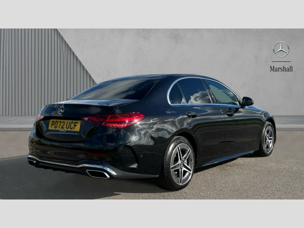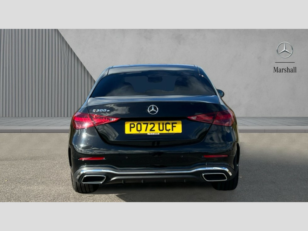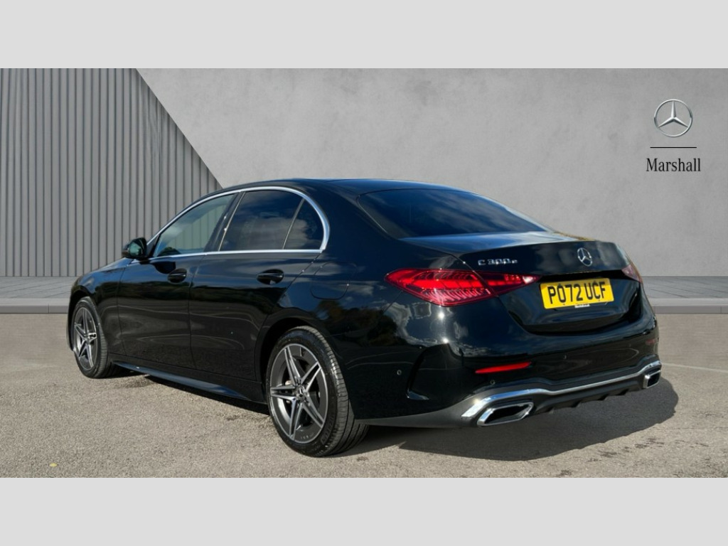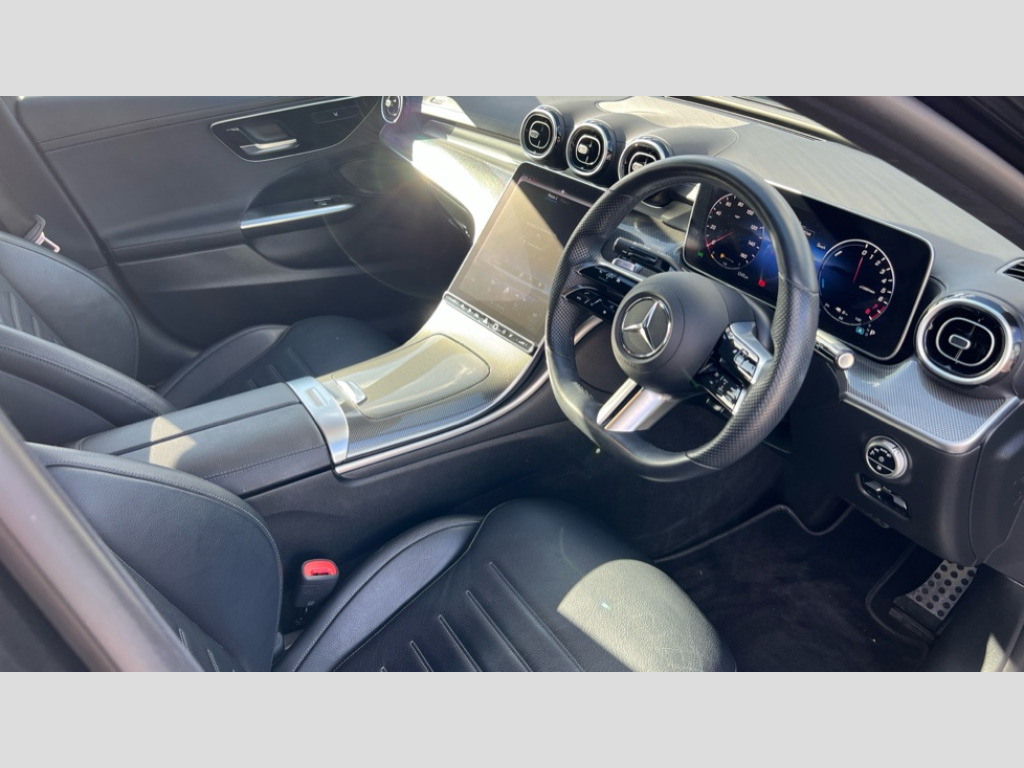 Mercedes-Benz C Class C300e AMG Line 4dr 9G-Tronic 11.9" high resolution multimedia colour display, 12.3" digital instrument cluster display, Active blind spot assist, Active brake assist plus, Active lane keeping assist, AMG DYNAMIC SELECT with a choice of driving modes (Slippery, Comfort, Sport, Sport+, Individual), Attention assist, Cruise control with speedtronic variable speed limiter, E-call, Extended MBUX functions, Finger print sensor, Fluorescent jacket for driver, MBUX navigation premium, MBUX voice control activated by keywords "Hey Mercedes", Mercedes connect me, Mercedes me remote services, Outside temperature gauge, Pre-installation for digital key transfer, Remote boot release, Service indicator (ASSYST), Smartphone integration, Sports direct steer speed sensitive steering, Status display for rear seat belts in instrument cluster, 11 kW AC onboard charger, 5m charging cable for wall box/public charging stations(mode 3), 66l fuel tank with increased capacity, 9G TRONIC 9 speed automatic transmission, Agility control sports suspension and lowered by 15 mm, Petrol Particulate Filter, Sporty engine sound system, DAB Digital radio, MBUX multimedia system, Adaptive brake lights, Adaptive high beam assist, AMG body styling front apron, rear apron and side skirts, AMG front bumper with sporty air intakes and chrome elements, AMG rear bumper with high gloss chrome elements, AMG side skirts in vehicle colour, B-pillar trim in glossy black, Body coloured bumpers, Body coloured door mirrors, Chrome beltline trim, Daytime running lights, Electric windows with one touch opening/closing and obstruction sensors, Electrically adjustable and heated door mirrors, Green tinted glass, LED high performance headlamps, LED Indicators, LED tail lights, LED third brake light, Powerdomes on bonnet, Privacy glass, Radiator diamond grille with integrated Mercedes Benz star and louvre silver with chrome pins, Radio aerial integrated into rear window, Rain sensor with automatic windscreen wiper activation, Rear boot, Rear side wing doors, Side windows surround in polished aluminium, Two visible exhaust pipes integrated into rear bumper, 3 spoke flattened bottom AMG multifunction steering wheel in black nappa leather with chrome inserts and perforated leather in grip area, 40:20:40 split folding rear bench seat, AMG Leather upholstery, AMG sports seats, Audio and onboard settings control on multifunction steering wheel, Auto Mercedes-Benz child seat recognition sensor, Black air vents with silver chrome elements, Black floor mats with AMG lettering, Black roof liner, Door trim elements high gloss black with silver chrome surroundings and switches, Double cupholder in centre console, Folding rear seat backrest, Front and rear head restraints, Front centre armrest with storage compartment, Front door sills with Mercedes Benz lettering, Gearshift paddles on steering wheel, Heated front seats, Illuminated glove compartment stowage, Manually height and reach adjustable steering column, Overhead control unit in high gloss black, Rear top tether child seat ISOFIX attachment, Single front passenger seat, Sports pedals with stainless steel surfaces and rubber studs, Sunvisors with illuminated vanity mirrors, THERMATIC 2 zone automatic climate control, Interior lighting package - C Class, Mirror pack - C Class, Parking package with reversing camera - C Class, Seat comfort pack - C Class, Stowage space pack - C Class, USB package - C Class, 3 rear 3 point seatbelts, Active bonnet pedestrian safety measure which detects an impact and raises bonnet, Adaptive brake system with HOLD function and brake drying in the wet, Anti-lock braking system (ABS), Black seat belts, Brake calipers with Mercedes-Benz lettering + perforated front brake discs, Child proof door locks, Drivers knee airbag, Drivers pelvis airbag, Dual stage driver/passenger airbags, Electric parking brake, Electronic Stability Programme (ESP), Front centre airbag between driver and front passenger seats, Front side airbags, Larger brake discs on front axle, Rear passenger airbag, Rear seatbelt warning indicator, Sports braking system with perforated front disc brakes, Tyre pressure monitoring system, Warning triangle and first aid kit, Window airbags, Central locking with interior switch, automatic locking and crash sensor with emergency opening function, Chrome surround in electric key, URBAN GUARD vehicle protection (Thatcham Category 1) consisting of break-in, anti-theft alarm system (ATA),interior monitoring and tow-away protection, Artico man-made leather dashboard with contrast stitching, Centre console trim in metal weave, 18" AMG 5 spoke design aerodynamically optimised alloy wheels painted in tantalite grey with high sheen finish, Summer tyres, TIREFIT with tyre inflation compressor