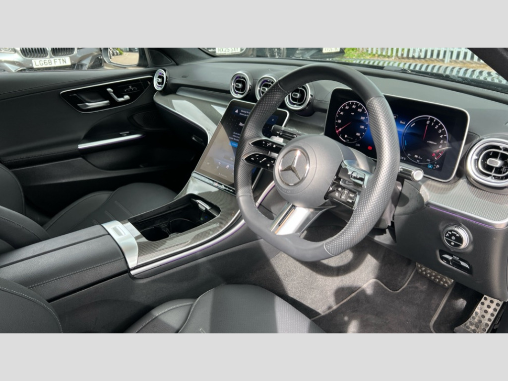 Mercedes-Benz C Class C300e AMG Line Premium 4dr 9G-Tronic 11.9" high resolution multimedia colour display, 12.3" digital instrument cluster display, Acoustic ambient protection, Active blind spot assist, Active brake assist plus, Active lane keeping assist, Attention assist, Cruise control with speedtronic variable speed limiter, DYNAMIC SELECT with a choice of driving modes (Comfort, ECO, Sport, Sport+, Individual), E-call, Extended MBUX functions, Finger print sensor, Fluorescent jacket for driver, MBUX augmented reality for navigation, MBUX navigation premium, MBUX voice control activated by keywords "Hey Mercedes", Mercedes connect me, Mercedes me remote services, Outside temperature gauge, Pre-installation for digital key transfer, Remote boot release, Service indicator (ASSYST), Smartphone integration, Speed limit assist, Sports direct steer speed sensitive steering, Status display for rear seat belts in instrument cluster, Traffic sign assist, Wireless charging system for mobile devices, 11 kW AC onboard charger, 50l fuel tank with increased capacity, 5m charging cable for household socket (mode 2), 5m charging cable for wall box/public charging stations(mode 3), 9G TRONIC 9 speed automatic transmission, Agility control sports suspension and lowered by 15 mm, Petrol Particulate Filter, Sporty engine sound system, DAB Digital radio, MBUX multimedia system, Adaptive brake lights, Adaptive high beam assist plus, AMG body styling front apron, rear apron and side skirts, AMG front bumper with sporty air intakes and chrome elements, AMG rear bumper with high gloss chrome elements, AMG side skirts in vehicle colour, B-pillar trim in glossy black, Body coloured bumpers, Body coloured door mirrors, Chrome beltline trim, Daytime running lights, Digital light LED headlamps, Electric windows with one touch opening/closing and obstruction sensors, Electrically adjustable and heated door mirrors, Green tinted glass, Heat insulating dark tinted glass, Illuminated front door sill panels, LED Indicators, LED tail lights, LED third brake light, Noise acoustic glass, Powerdomes on bonnet, Privacy glass, Radiator diamond grille with integrated Mercedes Benz star and louvre silver with chrome pins, Radio aerial integrated into rear window, Rain sensor with automatic windscreen wiper activation, Rear boot, Rear side wing doors, Two visible exhaust pipes integrated into rear bumper, 3 seat bench in 2nd row, 3 spoke flattened bottom AMG multifunction steering wheel in black nappa leather with chrome inserts and perforated leather in grip area, 40:20:40 split folding rear bench seat, Ambient lighting premium, AMG sports seats, Artico man-made leather upholstery, Audio and onboard settings control on multifunction steering wheel, Auto Mercedes-Benz child seat recognition sensor, Black air vents with silver chrome elements, Black floor mats with AMG lettering, Black roof liner, Door trim elements high gloss black with silver chrome surroundings and switches, Double cupholder in centre console, Electrically height/reach adjustable steering column, Folding rear seat backrest, Front and rear head restraints, Front centre armrest with storage compartment, Gearshift paddles on steering wheel, Heated front seats, Illuminated door sills with Mercedes Benz lettering, Illuminated glove compartment stowage, Overhead control unit in high gloss black, Rear top tether child seat ISOFIX attachment, Single front passenger seat, Sports pedals with stainless steel surfaces and rubber studs, Sunvisors with illuminated vanity mirrors, THERMATIC 2 zone automatic climate control, Interior lighting package - C Class, Memory package - C Class, Mirror pack - C Class, Parking package with 360 degree camera - C Class, Seat comfort pack - C Class, Stowage space pack - C Class, USB package plus - C Class, 3 rear 3 point seatbelts, Active bonnet pedestrian safety measure which detects an impact and raises bonnet, Adaptive brake system with HOLD function and brake drying in the wet, Anti-lock braking system (ABS), Black seat belts, Brake calipers with Mercedes-Benz lettering + perforated front brake discs, Child proof door locks, Drivers knee airbag, Drivers pelvis airbag, Dual stage driver/passenger airbags, Electric parking brake, Electronic Stability Programme (ESP), Front centre airbag between driver and front passenger seats, Front side airbags, Larger brake discs on front axle, Rear seatbelt warning indicator, Sports braking system, Tyre pressure monitoring system, Warning triangle and first aid kit, Window airbags for driver, front passenger and rear passenger, Central locking with interior switch, automatic locking and crash sensor with emergency opening function, Chrome surround in electric key, Dashcam, Keyless Go, URBAN GUARD vehicle protection (Thatcham Category 1) consisting of break-in, anti-theft alarm system (ATA),interior monitoring and tow-away protection, Artico man-made leather dashboard with contrast stitching, Centre console trim in metal weave, 18" AMG 5 spoke design aerodynamically optimised alloy wheels painted in tantalite grey with high sheen finish, Noise reduced tyre with foam absorber, Summer tyres, TIREFIT with tyre inflation compressor