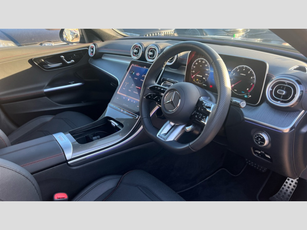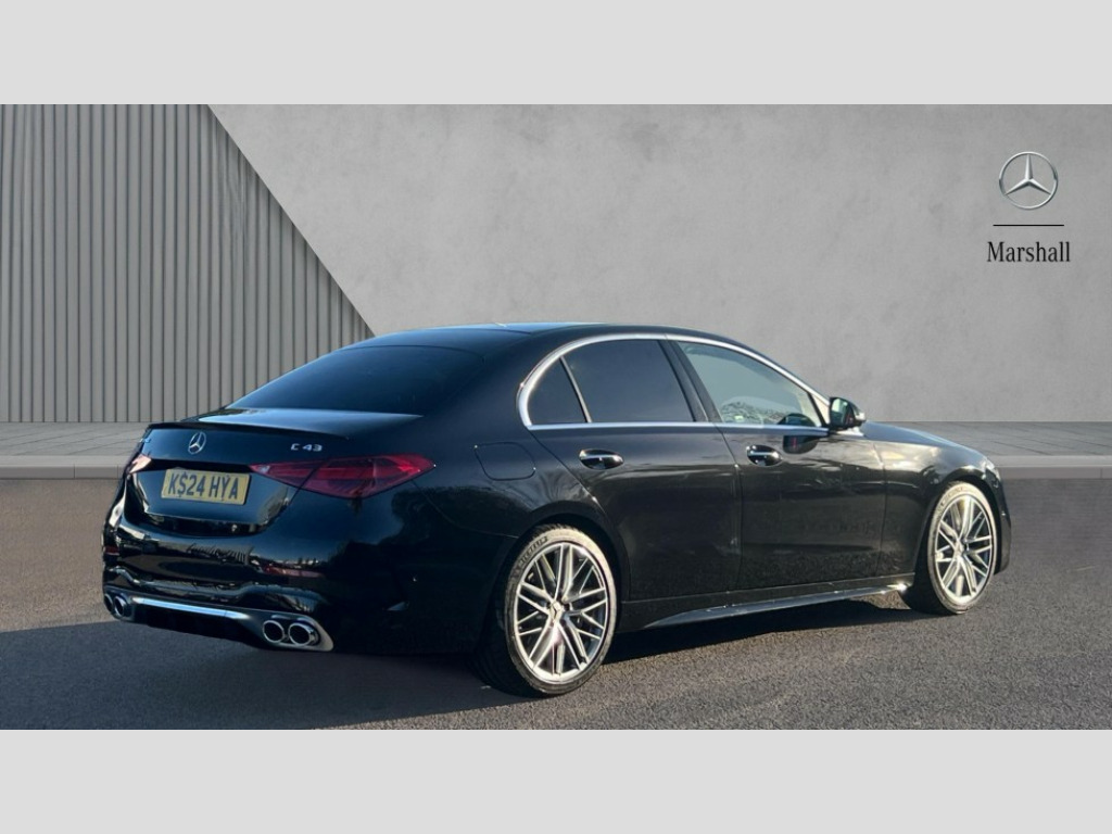 Mercedes-Benz C Class C43 4Matic Premium 4dr 9G-Tronic 11.9" high resolution multimedia colour display, 12.3" digital instrument cluster display, Active lane keeping assist, AMG DYNAMIC SELECT with a choice of driving modes (Slippery, Comfort, Sport, Sport+, Individual), Attention assist, E-call, Extended MBUX functions, Finger print sensor, Fluorescent jacket for driver, MBUX augmented reality for navigation, MBUX navigation premium, MBUX voice control activated by keywords "Hey Mercedes", Mercedes connect me, Mercedes me remote services, Outside temperature gauge, Pre-installation for digital key transfer, Rear axle steering, Remote boot release, Service indicator (ASSYST), Smartphone integration, Sports direct steer speed sensitive steering, Status display for rear seat belts in instrument cluster, Traffic sign assist, Wireless charging system for mobile devices, 57 litre fuel tank, 9G TRONIC 9 speed automatic transmission, Agility control sports suspension with adaptive damping system, Petrol Particulate Filter, Sporty engine sound system, DAB Digital radio, MBUX multimedia system, Adaptive brake lights, Adaptive high beam assist plus, AMG body styling front apron, rear apron and side skirts, AMG front bumper with sporty air intakes and chrome elements, AMG illuminated door sills with AMG lettering and with exchangeable cover, AMG lip spoiler, AMG rear bumper with high gloss chrome elements, AMG side skirts in vehicle colour, B-pillar trim in glossy black, Body coloured bumpers, Body coloured door mirrors, Chrome beltline trim, Daytime running lights, Digital light LED headlamps, Electric windows with one touch opening/closing and obstruction sensors, Electrically adjustable and heated door mirrors, Exhaust system with two round twin tailpipe trim elements in high gloss chrome, Green tinted glass, Heat insulating dark tinted glass, Illuminated front door sill panels, LED Indicators, LED tail lights, LED third brake light, Mercedes AMG exterior, Noise acoustic glass, Powerdomes on bonnet, Privacy glass, Radiator diamond grille with integrated Mercedes Benz star and louvre silver with chrome pins, Radio aerial integrated into rear window, Rain sensor with automatic windscreen wiper activation, Rear boot, Rear side wing doors, 3 seat bench in 2nd row, 3 spoke flattened bottom AMG multifunction steering wheel in black nappa leather with chrome inserts and perforated leather in grip area, 40:20:40 split folding rear bench seat, AMG Leather upholstery, AMG sports seats, AMG steering wheel buttons, Audio and onboard settings control on multifunction steering wheel, Auto Mercedes-Benz child seat recognition sensor, Black air vents with silver chrome elements, Black floor mats with AMG lettering, Black roof liner, Door trim elements high gloss black with silver chrome surroundings and switches, Double cupholder in centre console, Electrically height/reach adjustable steering column, Folding rear seat backrest, Front and rear head restraints, Front centre armrest with storage compartment, Gearshift paddles on steering wheel, Heated front seats, Illuminated glove compartment stowage, Interior lighting - 64 colour Ambient lighting, Mercedes AMG interior, Overhead control unit in high gloss black, Rear top tether child seat ISOFIX attachment, Single front passenger seat, Sports pedals with stainless steel surfaces and rubber studs, Sunvisors with illuminated vanity mirrors, THERMATIC 2 zone automatic climate control, Interior lighting package - C Class, Memory package - C Class, Mirror pack - C Class, Parking package with 360 degree camera - C Class, Seat comfort pack - C Class, Stowage space pack - C Class, USB package plus - C Class, 3 rear 3 point seatbelts, Active bonnet pedestrian safety measure which detects an impact and raises bonnet, Adaptive brake system with HOLD function and brake drying in the wet, Anodised silver colour brake calipers with Mercedes-Benz lettering + perforated front brake discs, Anti-lock braking system (ABS), Child proof door locks, Drivers knee airbag, Drivers pelvis airbag, Dual stage driver/passenger airbags, Electric parking brake, Electronic Stability Programme (ESP), Front centre airbag between driver and front passenger seats, Front side airbags, Larger brake discs on front axle, Rear seatbelt warning indicator, Sports braking system, Tyre pressure monitoring system, Warning triangle and first aid kit, Window airbags for driver, front passenger and rear passenger, Central locking with interior switch, automatic locking and crash sensor with emergency opening function, Chrome surround in electric key, Dashcam, Guard 360 degree vehicle protection, Keyless Go comfort access, URBAN GUARD vehicle protection (Thatcham Category 1) consisting of break-in, anti-theft alarm system (ATA),interior monitoring and tow-away protection, Artico man-made leather dashboard with contrast stitching, Centre console trim in anthracite line structure lime wood, 19" AMG 5 twin spoke light alloy wheels aerodynamically optimised in titanium grey with high sheen finish, Noise reduced tyre with foam absorber, Summer tyres, TIREFIT with tyre inflation compressor