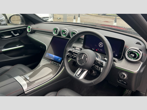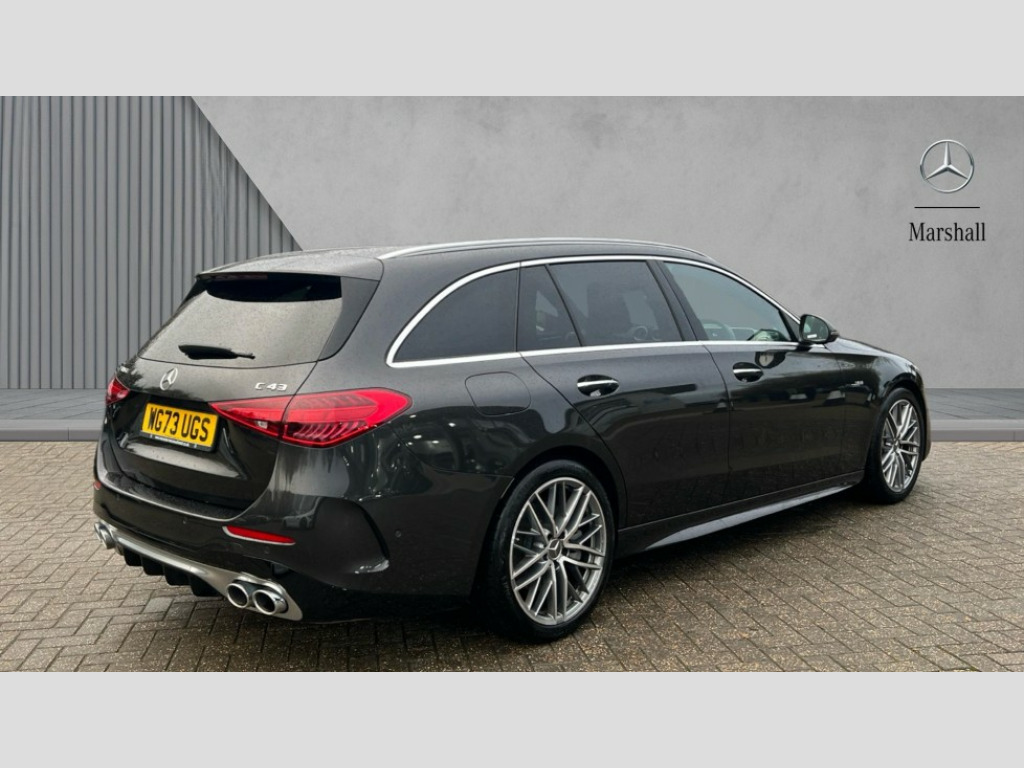 Mercedes-Benz C Class C43 4Matic Premium 5dr 9G-Tronic 11.9" high resolution multimedia colour display, 12.3" digital instrument cluster display, Active lane keeping assist, AMG DYNAMIC SELECT with a choice of driving modes (Slippery, Comfort, Sport, Sport+, Individual), Attention assist, E-call, Easy pack automatic powered tailgate, Extended MBUX functions, Finger print sensor, Fluorescent jacket for driver, MBUX augmented reality for navigation, MBUX navigation premium, MBUX voice control activated by keywords "Hey Mercedes", Mercedes connect me, Mercedes me remote services, Outside temperature gauge, Pre-installation for digital key transfer, Rear axle steering, Remote boot release, Service indicator (ASSYST), Smartphone integration, Sports direct steer speed sensitive steering, Status display for rear seat belts in instrument cluster, Traffic sign assist, Wireless charging system for mobile devices, 57 litre fuel tank, 9G TRONIC 9 speed automatic transmission, Agility control sports suspension with adaptive damping system, Petrol Particulate Filter, Sporty engine sound system, DAB Digital radio, MBUX multimedia system, Adaptive brake lights, Adaptive high beam assist plus, AMG body styling front apron, rear apron and side skirts, AMG front bumper with sporty air intakes and chrome elements, AMG illuminated door sills with AMG lettering and with exchangeable cover, AMG rear bumper with high gloss chrome elements, AMG side skirts in vehicle colour, B-pillar trim in glossy black, Body coloured bumpers, Body coloured door mirrors, Chrome beltline trim, Chrome roof rails, Daytime running lights, Digital light LED headlamps, Electric windows with one touch opening/closing and obstruction sensors, Electrically adjustable and heated door mirrors, Exhaust system with two round twin tailpipe trim elements in high gloss chrome, Green tinted glass, Heat insulating dark tinted glass, Illuminated front door sill panels, LED Indicators, LED tail lights, LED third brake light, Mercedes AMG exterior, Noise acoustic glass, Powerdomes on bonnet, Privacy glass, Radiator diamond grille with integrated Mercedes Benz star and louvre silver with chrome pins, Radio aerial integrated into rear window, Rain sensor with automatic windscreen wiper activation, Rear side wing doors, Rear wiper, 3 seat bench in 2nd row, 3 spoke flattened bottom AMG multifunction steering wheel in black nappa leather with chrome inserts and perforated leather in grip area, 40:20:40 split folding rear bench seat, AMG Leather upholstery, AMG sports seats, AMG steering wheel buttons, Audio and onboard settings control on multifunction steering wheel, Auto Mercedes-Benz child seat recognition sensor, Black air vents with silver chrome elements, Black floor mats with AMG lettering, Black roof liner, Door trim elements high gloss black with silver chrome surroundings and switches, Double cupholder in centre console, Electrically height/reach adjustable steering column, Folding rear seat backrest, Front and rear head restraints, Front centre armrest with storage compartment, Gearshift paddles on steering wheel, Heated front seats, Illuminated glove compartment stowage, Interior lighting - 64 colour Ambient lighting, Load compartment cover, Mercedes AMG interior, Overhead control unit in high gloss black, Rear top tether child seat ISOFIX attachment, Single front passenger seat, Sports pedals with stainless steel surfaces and rubber studs, Sunvisors with illuminated vanity mirrors, THERMATIC 2 zone automatic climate control, Interior lighting package - C Class, Memory package - C Class, Mirror pack - C Class, Parking package with 360 degree camera - C Class, Seat comfort pack - C Class, Stowage space pack - C Class, USB package plus - C Class, 3 rear 3 point seatbelts, Active bonnet pedestrian safety measure which detects an impact and raises bonnet, Adaptive brake system with HOLD function and brake drying in the wet, Anodised silver colour brake calipers with Mercedes-Benz lettering + perforated front brake discs, Anti-lock braking system (ABS), Child proof door locks, Drivers knee airbag, Drivers pelvis airbag, Dual stage driver/passenger airbags, Electric parking brake, Electronic Stability Programme (ESP), Front centre airbag between driver and front passenger seats, Front side airbags, Larger brake discs on front axle, Rear seatbelt warning indicator, Sports braking system, Tyre pressure monitoring system, Warning triangle and first aid kit, Window airbags for driver, front passenger and rear passenger, Central locking with interior switch, automatic locking and crash sensor with emergency opening function, Chrome surround in electric key, Dashcam, Guard 360 degree vehicle protection, Keyless Go comfort access, URBAN GUARD vehicle protection (Thatcham Category 1) consisting of break-in, anti-theft alarm system (ATA),interior monitoring and tow-away protection, Artico man-made leather dashboard with contrast stitching, Centre console trim in anthracite line structure lime wood, 19" AMG 5 twin spoke light alloy wheels aerodynamically optimised in titanium grey with high sheen finish, Noise reduced tyre with foam absorber, Summer tyres, TIREFIT with tyre inflation compressor