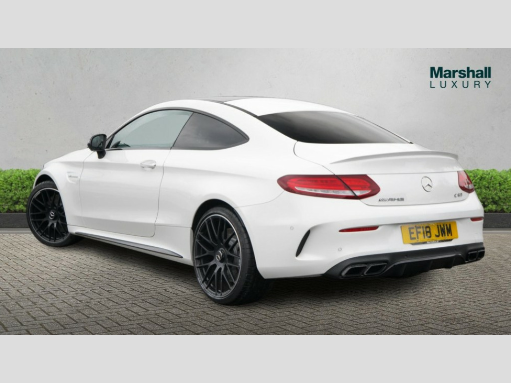 Mercedes-Benz C Class C63 Premium 2dr Auto 8.4" high resolution display, Active park assist with parktronic system, AMG instrument cluster, Attention assist, Bluetooth interface for hands free telephone, Collision prevention assist plus, COMAND online nav with colour display, radio/CD/DVD/MP3, SD card, 10GB music, Emergency Call system, speed limit assist, linguatronic voice control, DYNAMIC SELECT with a choice of driving modes (ECO, Comfort, Sport, Sport+ and Individual), Instrument cluster with 5.5-inch TFT multi-function display, Multi function trip computer, Outside temperature gauge, Remote boot release, Service indicator (ASSYST), Speed sensitive steering, 66 litre fuel tank, AMG rear axle limited slip differential lock, AMG Ride Control sports suspension, 2 USB ports, Burmester surround sound system, DAB digital radio module, Frontbass loudspeakers, Steering column mounted multifunction controls, Adaptive brake lights, AMG boot lid spoiler in body colour, AMG front, rear apron and side skirts, AMG performance exhaust system, Auto dimming driver's door mirror, Auto dimming rear view mirror, Body coloured bumpers, Electric adjustable/heated/folding door mirrors, Electric front sliding and fixed rear panoramic glass sunroof, Electric windows one touch open/close, Green tinted glass, Heated windscreen washers, Intelligent LED headlight system with active Light System, cornering light function, Adaptive High Beam Assist and blue LED locator lighting, LED daytime running lights, LED tail lights, Rain sensor windscreen wipers, Side windows surround in polished aluminium, 2 cupholders in front centre console, 2 rear head restraints, 3 spoke AMG Performance steering wheel in black nappa leather, 4-way lumbar support for drivers seat, 4-way lumbar support for front passenger seat, 40:20:40 split folding rear seats, Advanced multicolour ambient light and LED interior light, AMG floormats, AMG illuminated door sills, Artico man-made leather dashboard and beltline with contrast stitching, Auto dual-zone climate control system, Auto Mercedes-Benz child seat recognition sensor, Door courtesy lamps, Electric front seats, Electric height adjustable front seats, Electric height/reach adjustable steering column, Front centre armrest with storage compartment, Front footwell illumination, Heated front seats, Illuminated front/rear door handle recesses, Illuminated glovebox, Isofix rear child seat fastenings, LED reading lights, Nappa leather upholstery, Sports pedals with stainless steel surfaces and rubber studs, Steering wheel gearshift paddles, Sunvisors with illuminated vanity mirrors, Exclusive pack - C class, Memory pack - C Class, Stowage space pack - C Class, 2 rear seatbelts, ABS + BAS, Active bonnet, Adaptive brake system, AMG high performance braking system, Drivers knee airbag, Drivers pelvis airbag, Dual stage driver/passenger airbags, Electronic parking brake, ESP with ASR, Front side airbags, Hill hold control, Hill start assist, Silver painted brake calipers, Tyre pressure monitoring system, Warning triangle and first aid kit, Window airbags, Alarm system/interior protection/immobiliser, Chrome surround in electric key, Keyless entry and keyless start, Remote central locking, High gloss black with aluminium trim, Tyre inflation kit