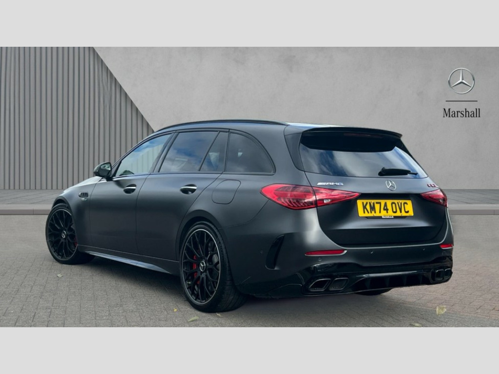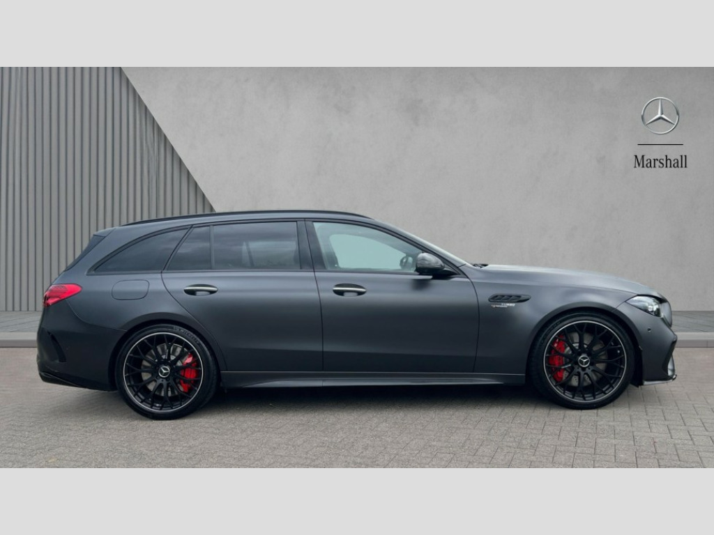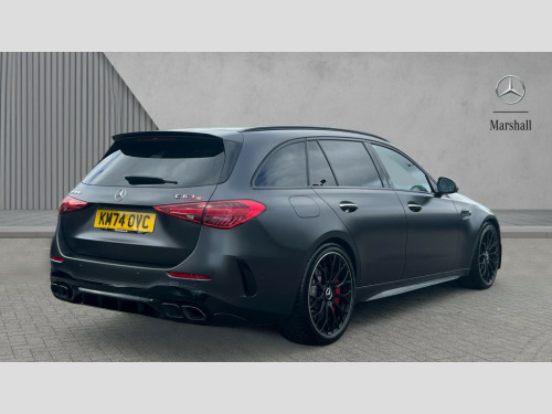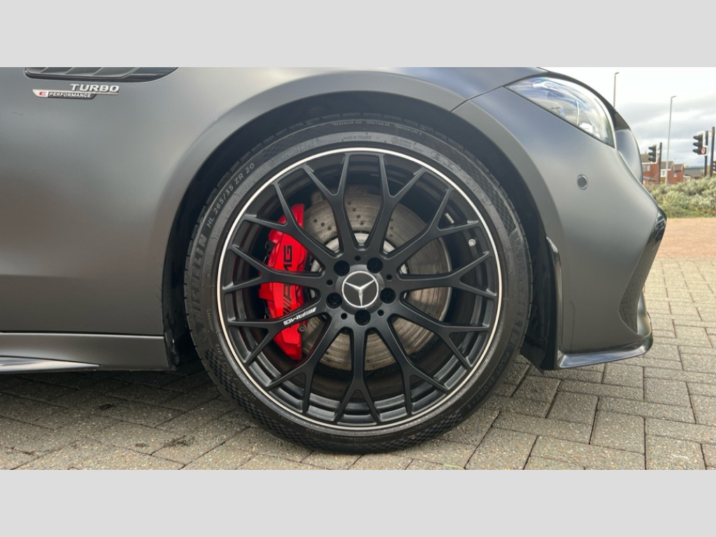 Mercedes-Benz C Class C63 S e 4Matic+ Night Ed Premium + 5dr MCT 11.9" high resolution multimedia colour display, 12.3" digital instrument cluster display, Acoustic ambient protection, Active parking assist with PARKTRONIC, AMG DYNAMIC SELECT with a choice of eight driving modes(Electric, Comfort, Battery Hold, Sport, Sport+, Race, Slippery and Individual), AMG track pace, Attention assist, Charging services plus, E-call, Extended MBUX functions, Finger print sensor, Fluorescent jacket for driver, Hard disc navigation, Head up Display, MBUX augmented reality for navigation, MBUX navigation premium, Mercedes me remote services, Outside temperature gauge, Rear axle steering, Service indicator (ASSYST), Smartphone integration, Sports direct steer speed sensitive steering, Status display for rear seat belts in instrument cluster, Tailgate, Traffic sign assist, Wireless charging system for mobile devices, 5m charging cable for household socket (mode 2), 5m charging cable for wall box/public charging stations(mode 3), AC charging, AMG Ride Control suspension, AMG speedshift MCT 9G with wet starting clutch and race start function, Petrol Particulate Filter, Suspension with adaptive damping system, Burmester 3D surround sound system, DAB Digital radio, MBUX multimedia system, Adaptive brake lights, Adaptive high beam assist plus, AMG body styling front apron, rear apron and side skirts, AMG fuel cap, AMG illuminated door sills with AMG lettering and with exchangeable cover, AMG Real Performance Sound, Black roof rails, Body coloured bumpers, Digital light LED headlamps, Electric panoramic glass sunroof, Electric windows with one touch opening/closing and obstruction sensors, Electrically adjustable and heated door mirrors, Flared wheel arches, Heat insulating dark tinted glass, High gloss black AMG performance spoiler lip, LED daytime running lights, LED Indicators, LED tail lights, LED third brake light, Mercedes AMG exterior, Noise acoustic glass, Rain sensor with automatic windscreen wiper activation, Rear side wing doors, Rear wiper, 3 seat bench in 2nd row, 40:20:40 split folding rear bench seat, Ambient lighting premium, Ambient lighting with projection of brand logo, AMG floor mats, AMG Nappa leather upholstery, AMG Performance steering wheel in nappa leather/microcut microfibre, AMG steering wheel buttons, Auto Mercedes-Benz child seat recognition sensor, Black roof liner, Double cupholder in centre console, Electrically height/reach adjustable steering column, Folding rear seat backrest, Front and rear head restraints, Gearshift paddles on steering wheel, Illuminated glove compartment stowage, Load compartment cover, Mercedes AMG interior, Rear top tether child seat ISOFIX attachment, Single front passenger seat, Sunvisors with illuminated vanity mirrors, THERMATIC 2 zone automatic climate control, AMG aerodynamics package - C Class C63, AMG drivers pack - C Class, AMG exterior night pack - C Class, Boot comfort package - C Class, Easy pack tailgate - C Class, Interior light package - C Class, Keyless go comfort package - C Class, Memory package - C Class, Mirror package - C Class, Parking package with 360 degree camera - C Class, Stowage space pack - C Class, USB package plus - C Class, 3 rear 3 point seatbelts, Active bonnet pedestrian safety measure which detects an impact and raises bonnet, Adaptive brake system with HOLD function and brake drying in the wet, Anti-lock braking system (ABS), Black seat belts, Child proof door locks, Drivers knee airbag, Drivers pelvis airbag, Dual stage driver/passenger airbags, Electric parking brake, Electronic Stability Programme (ESP), Front centre airbag between driver and front passenger seats, Front side airbags, Red brake callipers, Tyre pressure monitoring system, Warning triangle and first aid kit, Window airbags for driver, front passenger and rear passenger, Antitheft alarm system, Interior monitoring system and Increased antitheft protection, Central locking with interior switch, automatic locking and crash sensor with emergency opening function, Chrome surround in electric key, Dashcam, Urban guard vehicle protection plus, Carbon fibre trim with centre console in high gloss black, Dashboard, instrument panel and beltlines in ARTICO man made leather in nappa look, 20" AMG cross spoke light alloy wheels painted in high gloss black with high sheen finish, TIREFIT with tyre inflation compressor