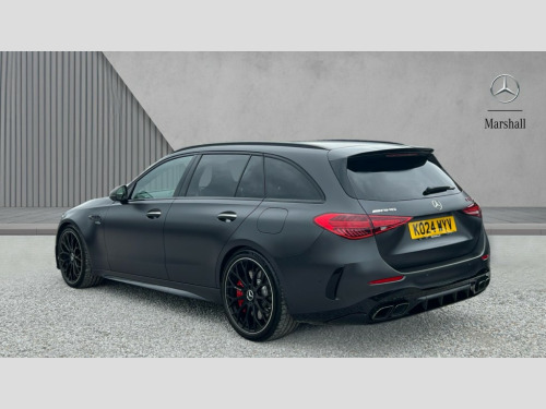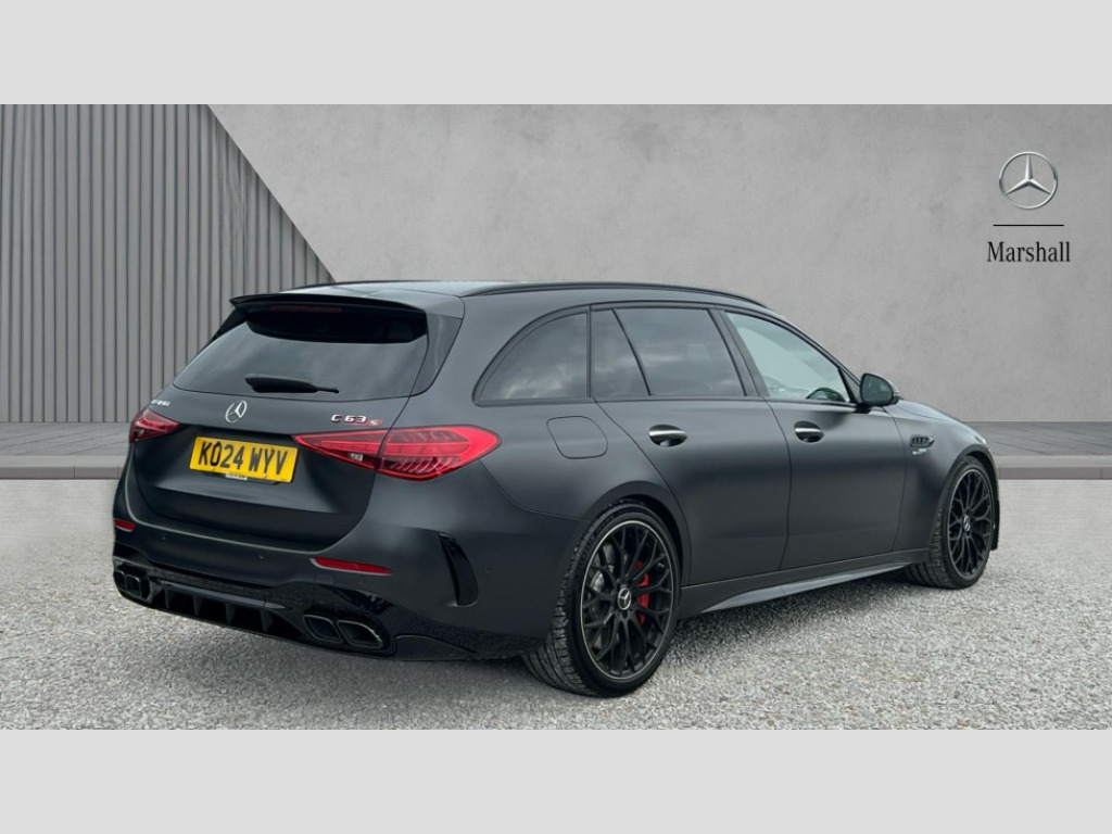 Mercedes-Benz C Class C63 S e 4Matic+ Night Ed Premium + 5dr MCT 11.9" high resolution multimedia colour display, 12.3" digital instrument cluster display, Acoustic ambient protection, Active parking assist with PARKTRONIC, AMG DYNAMIC SELECT with a choice of eight driving modes(Electric, Comfort, Battery Hold, Sport, Sport+, Race, Slippery and Individual), AMG track pace, Attention assist, Charging services plus, E-call, Extended MBUX functions, Finger print sensor, Fluorescent jacket for driver, Hard disc navigation, Head up Display, MBUX augmented reality for navigation, MBUX navigation premium, Mercedes me remote services, Outside temperature gauge, Rear axle steering, Service indicator (ASSYST), Smartphone integration, Sports direct steer speed sensitive steering, Status display for rear seat belts in instrument cluster, Tailgate, Traffic sign assist, Wireless charging system for mobile devices, 5m charging cable for household socket (mode 2), 5m charging cable for wall box/public charging stations(mode 3), AC charging, AMG Ride Control suspension, AMG speedshift MCT 9G with wet starting clutch and race start function, Petrol Particulate Filter, Suspension with adaptive damping system, Burmester 3D surround sound system, DAB Digital radio, MBUX multimedia system, Adaptive brake lights, Adaptive high beam assist plus, AMG body styling front apron, rear apron and side skirts, AMG fuel cap, AMG illuminated door sills with AMG lettering and with exchangeable cover, AMG Real Performance Sound, Black roof rails, Body coloured bumpers, Digital light LED headlamps, Electric panoramic glass sunroof, Electric windows with one touch opening/closing and obstruction sensors, Electrically adjustable and heated door mirrors, Flared wheel arches, Heat insulating dark tinted glass, High gloss black AMG performance spoiler lip, LED daytime running lights, LED Indicators, LED tail lights, LED third brake light, Mercedes AMG exterior, Noise acoustic glass, Rain sensor with automatic windscreen wiper activation, Rear side wing doors, Rear wiper, 3 seat bench in 2nd row, 40:20:40 split folding rear bench seat, Ambient lighting premium, Ambient lighting with projection of brand logo, AMG floor mats, AMG Nappa leather upholstery, AMG Performance steering wheel in nappa leather/microcut microfibre, AMG steering wheel buttons, Auto Mercedes-Benz child seat recognition sensor, Black roof liner, Double cupholder in centre console, Electrically height/reach adjustable steering column, Folding rear seat backrest, Front and rear head restraints, Gearshift paddles on steering wheel, Illuminated glove compartment stowage, Load compartment cover, Mercedes AMG interior, Rear top tether child seat ISOFIX attachment, Single front passenger seat, Sunvisors with illuminated vanity mirrors, THERMATIC 2 zone automatic climate control, AMG aerodynamics package - C Class C63, AMG drivers pack - C Class, AMG exterior night pack - C Class, Boot comfort package - C Class, Easy pack tailgate - C Class, Interior light package - C Class, Keyless go comfort package - C Class, Memory package - C Class, Mirror package - C Class, Parking package with 360 degree camera - C Class, Stowage space pack - C Class, USB package plus - C Class, 3 rear 3 point seatbelts, Active bonnet pedestrian safety measure which detects an impact and raises bonnet, Adaptive brake system with HOLD function and brake drying in the wet, Anti-lock braking system (ABS), Black seat belts, Child proof door locks, Drivers knee airbag, Drivers pelvis airbag, Dual stage driver/passenger airbags, Electric parking brake, Electronic Stability Programme (ESP), Front centre airbag between driver and front passenger seats, Front side airbags, Red brake callipers, Tyre pressure monitoring system, Warning triangle and first aid kit, Window airbags for driver, front passenger and rear passenger, Antitheft alarm system, Interior monitoring system and Increased antitheft protection, Central locking with interior switch, automatic locking and crash sensor with emergency opening function, Chrome surround in electric key, Dashcam, Urban guard vehicle protection plus, Carbon fibre trim with centre console in high gloss black, Dashboard, instrument panel and beltlines in ARTICO man made leather in nappa look, 20" AMG cross spoke light alloy wheels painted in high gloss black with high sheen finish, TIREFIT with tyre inflation compressor