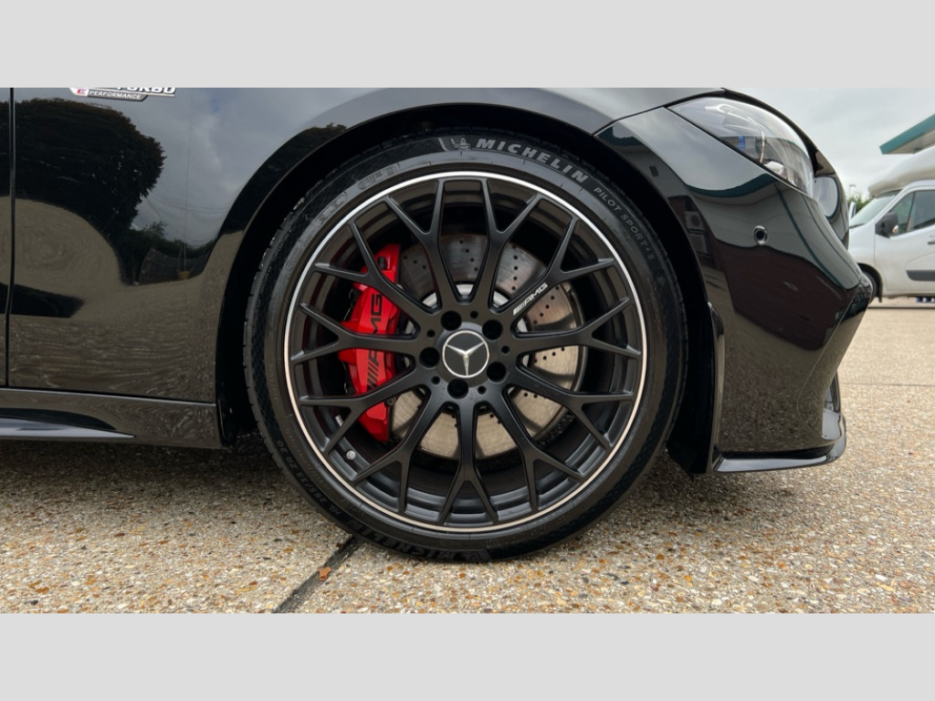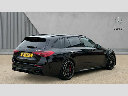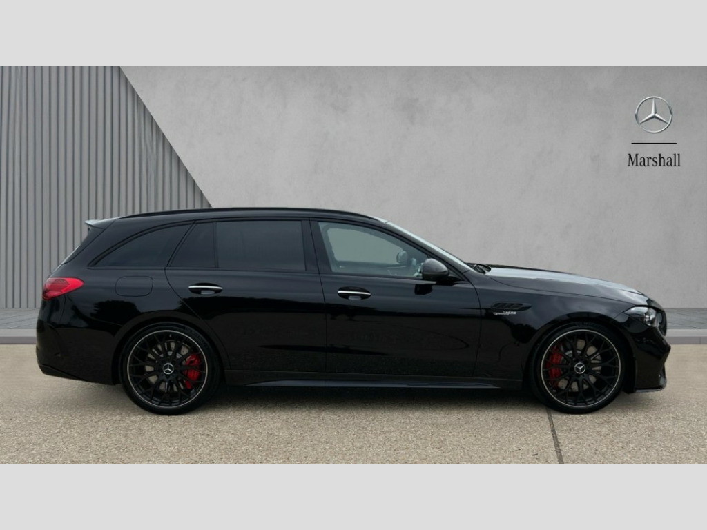 Mercedes-Benz C Class C63 S e 4Matic+ Night Ed Premium + 5dr MCT 11.9" high resolution multimedia colour display, 12.3" digital instrument cluster display, Acoustic ambient protection, Active parking assist with PARKTRONIC, AMG DYNAMIC SELECT with a choice of eight driving modes(Electric, Comfort, Battery Hold, Sport, Sport+, Race, Slippery and Individual), AMG track pace, Attention assist, Charging services plus, E-call, Extended MBUX functions, Finger print sensor, Fluorescent jacket for driver, Hard disc navigation, Head up Display, MBUX augmented reality for navigation, MBUX navigation premium, Mercedes me remote services, Outside temperature gauge, Rear axle steering, Service indicator (ASSYST), Smartphone integration, Sports direct steer speed sensitive steering, Status display for rear seat belts in instrument cluster, Tailgate, Traffic sign assist, Wireless charging system for mobile devices, 5m charging cable for household socket (mode 2), 5m charging cable for wall box/public charging stations(mode 3), AC charging, AMG Ride Control suspension, AMG speedshift MCT 9G with wet starting clutch and race start function, Petrol Particulate Filter, Suspension with adaptive damping system, Burmester 3D surround sound system, DAB Digital radio, MBUX multimedia system, Adaptive brake lights, Adaptive high beam assist plus, AMG body styling front apron, rear apron and side skirts, AMG fuel cap, AMG illuminated door sills with AMG lettering and with exchangeable cover, AMG Real Performance Sound, Black roof rails, Body coloured bumpers, Digital light LED headlamps, Electric panoramic glass sunroof, Electric windows with one touch opening/closing and obstruction sensors, Electrically adjustable and heated door mirrors, Flared wheel arches, Heat insulating dark tinted glass, High gloss black AMG performance spoiler lip, LED daytime running lights, LED Indicators, LED tail lights, LED third brake light, Mercedes AMG exterior, Noise acoustic glass, Rain sensor with automatic windscreen wiper activation, Rear side wing doors, Rear wiper, 3 seat bench in 2nd row, 40:20:40 split folding rear bench seat, Ambient lighting premium, Ambient lighting with projection of brand logo, AMG floor mats, AMG Nappa leather upholstery, AMG Performance steering wheel in nappa leather/microcut microfibre, AMG steering wheel buttons, Auto Mercedes-Benz child seat recognition sensor, Black roof liner, Double cupholder in centre console, Electrically height/reach adjustable steering column, Folding rear seat backrest, Front and rear head restraints, Gearshift paddles on steering wheel, Illuminated glove compartment stowage, Load compartment cover, Mercedes AMG interior, Rear top tether child seat ISOFIX attachment, Single front passenger seat, Sunvisors with illuminated vanity mirrors, THERMATIC 2 zone automatic climate control, AMG aerodynamics package - C Class C63, AMG drivers pack - C Class, AMG exterior night pack - C Class, Boot comfort package - C Class, Easy pack tailgate - C Class, Interior light package - C Class, Keyless go comfort package - C Class, Memory package - C Class, Mirror package - C Class, Parking package with 360 degree camera - C Class, Stowage space pack - C Class, USB package plus - C Class, 3 rear 3 point seatbelts, Active bonnet pedestrian safety measure which detects an impact and raises bonnet, Adaptive brake system with HOLD function and brake drying in the wet, Anti-lock braking system (ABS), Black seat belts, Child proof door locks, Drivers knee airbag, Drivers pelvis airbag, Dual stage driver/passenger airbags, Electric parking brake, Electronic Stability Programme (ESP), Front centre airbag between driver and front passenger seats, Front side airbags, Red brake callipers, Tyre pressure monitoring system, Warning triangle and first aid kit, Window airbags for driver, front passenger and rear passenger, Antitheft alarm system, Interior monitoring system and Increased antitheft protection, Central locking with interior switch, automatic locking and crash sensor with emergency opening function, Chrome surround in electric key, Dashcam, Urban guard vehicle protection plus, Carbon fibre trim with centre console in high gloss black, Dashboard, instrument panel and beltlines in ARTICO man made leather in nappa look, 20" AMG cross spoke light alloy wheels painted in high gloss black with high sheen finish, TIREFIT with tyre inflation compressor