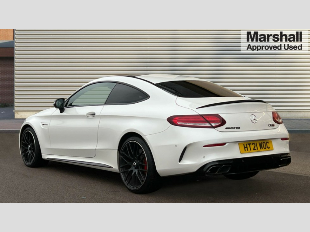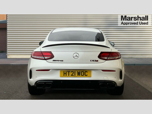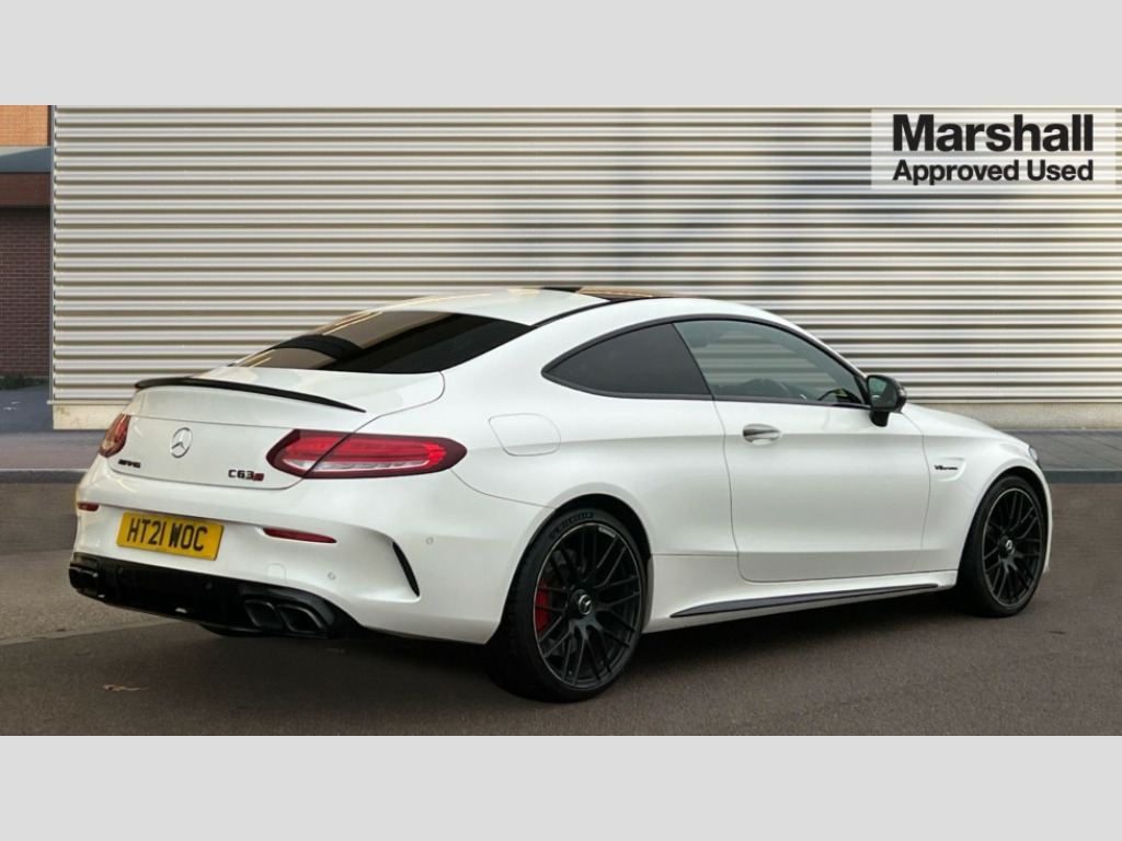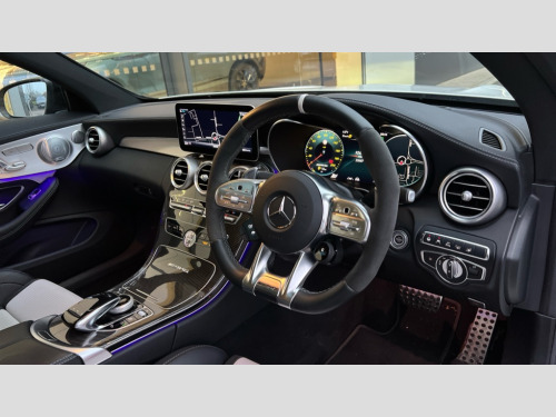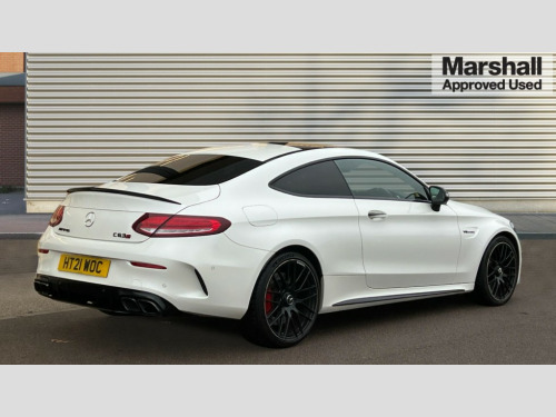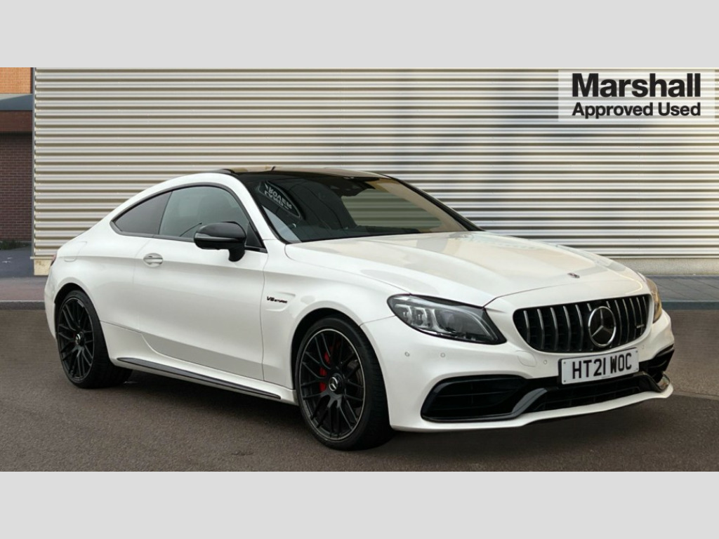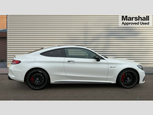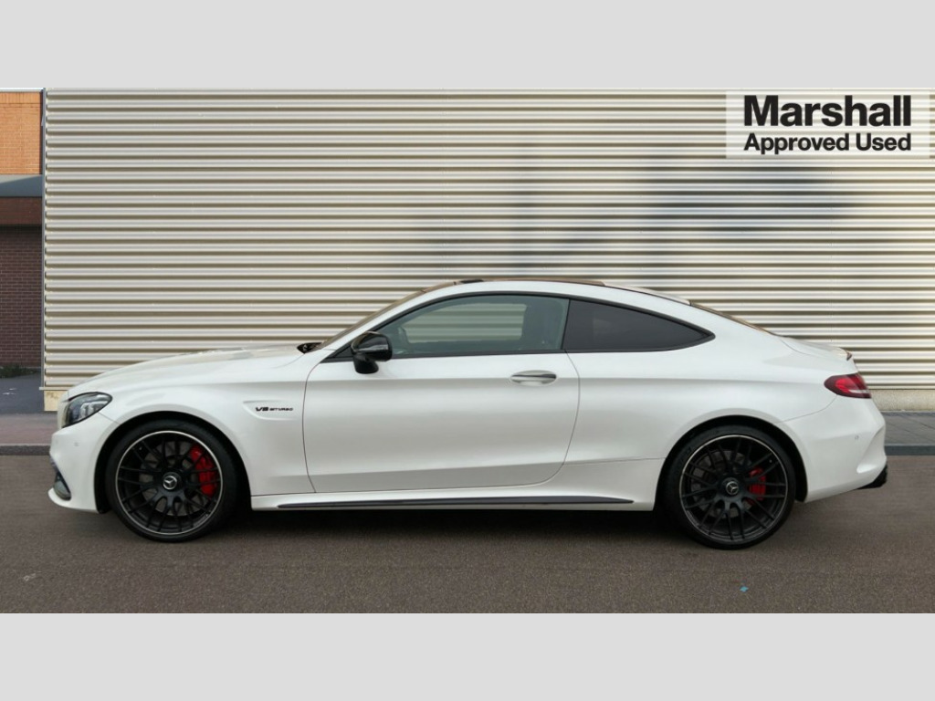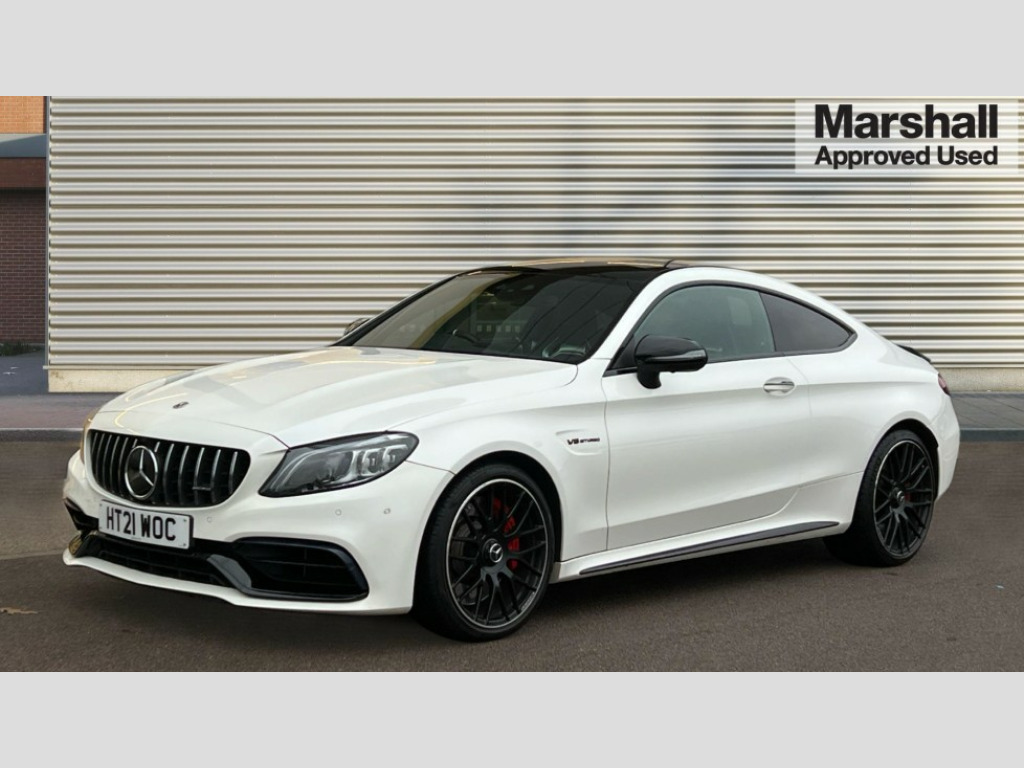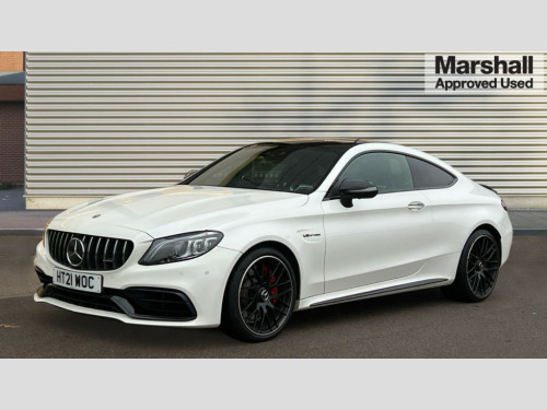 Mercedes-Benz C Class C63 S Night Edition Premium Plus 2dr MCT 12.3" digital instrument cluster display with AMG specific selectable display "Supersport", 3 stage speed sensitive sport steering, 360 degree view camera, Active park assist with parktronic system, AMG boot logo in central screen, AMG DYNAMIC SELECT with a choice of driving modes - Comfort, Sport, Sport+, Individual and Race, AMG track pace, Attention assist, Bluetooth interface for hands free telephone, Collision prevention assist plus, Comand Online HDD Nav with media interface,radio/CD/DVD/MP3, 10.25 screen, linguatronic voice control, Cruise control with speedtronic variable speed limiter, ECO start/stop function, Head up Display, High resolution 10.25" multimedia colour display, Mercedes me connect including emergency call system, accident recovery, breakdown and maintenance management, Multi function trip computer, Outside temperature display, Pre-wiring for SD navigation system, Remote boot release, Reversing camera, Service indicator (ASSYST), Status display for rear seat belts in instrument cluster, 66l fuel tank with increased capacity, AMG rear axle limited slip differential lock, AMG Ride Control sports suspension, AMG SPEEDSHIFT MCT 9 speed automatic sports transmission, Petrol Particulate Filter, Burmester surround sound system, DAB digital radio tuner, Frontbass loudspeakers, SD card slot, Two USB ports and one SD Card slot in centre console, Adaptive brake lights, AMG bodystyling - front apron with distinctive air intakes and AMG rear apron with diffuser look, AMG bonnet with powerdomes, AMG boot lid spoiler in black, AMG front apron with A-wing in high-gloss black, AMG performance exhaust system, AMG rear apron with 4 diffuser fins, diffuser board plus trim strip painted in matt iridium silver, AMG side sill panels with silver chrome inserts, AMG specific radiator grille in high sheen chrome with AMG lettering, Body coloured bumpers, Door sill panels with AMG lettering, Electric panoramic glass sunroof, Electric windows with one touch opening/closing and obstruction sensors, Exterior mirrors heated and electronically adjustable, Full LED tail lamps, Green tinted glass, LED daytime running lights, LED Indicators, LED third brake light, Mercedes AMG C 63 S badging at the rear, Multi beam LED headlights, Privacy glass rear side windows B pillars and rear windscreen, Radio aerial integrated into rear window, Rain sensor windscreen wipers, Side windows surround in polished aluminium, V8 BITURBO badging with flared AMG wings, 2 cupholders in front centre console, 2 rear head restraints, 3-spoke AMG performance flat lower lthr steeringwheel in nappa lthr/dina microfibre 12ock black silver alumin gearshift paddle + touch control button, 40:20:40 split folding rear seats, AMG emblem in front head restraints, AMG performance seats, Auto Mercedes-Benz child seat recognition sensor, Floor mats with black leather edging, red piping and AMG logo, Front centre armrest with storage compartment, Front head restraints, Front LED reading lights, Heated front seats, Illuminated glove compartment stowage, Interior lighting - 64 colour Ambient lighting, Nappa leather upholstery, Sports pedals with stainless steel surfaces and rubber studs, Steering wheel gearshift paddles, Steering wheel touch control buttons for audio and onboard settings, Sunvisors with illuminated vanity mirrors, THERMATIC 2 zone automatic climate control, AMG Driver's Package - C Class Coupe, AMG night package - C Class, Driving Assistance plus pack - C Class, Interior lighting package - C Class, Memory pack with steering column memory - C Class, Mirror package - C Class, Stowage space pack - C Class, 2 rear seatbelts, 3 point automatic seatbelts, Active bonnet, Adaptive brake system with hold function and brake drying function, AMG high performance braking system, Anti-lock braking system (ABS), Automatic seatbelt pretensioner for driver and front passenger, Dual stage airbags - driver and front passenger, front sidebags, driver kneebag, pelvis bag and windowbags for driver, front and rear passengers, Electronic parking brake, Electronic Stability Programme (ESP), ISOFIX child seat attachment points with top tether in rear, Red brake calipers with AMG lettering, Seat belts in Crystal grey, Tyre pressure monitoring system, Warning triangle and first aid kit, Anti-theft alarm system/interior protection with tow-away protection and interior monitoring systems, Central locking with interior switch, automatic locking and crash sensor with emergency opening function, Chrome surround in electric key, Immobiliser, KEYLESS-GO starting function, AMG carbon fibre trim, Artico man-made leather dashboard with contrast stitching, Light longitudinal grain aluminium trim painted, 19" front / 20" rear forged AMG cross spoke design matt black alloy wheels, TIREFIT with tyre inflation compressor