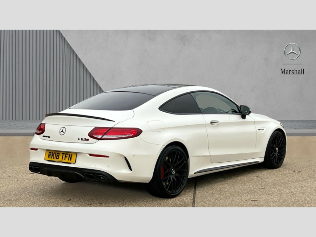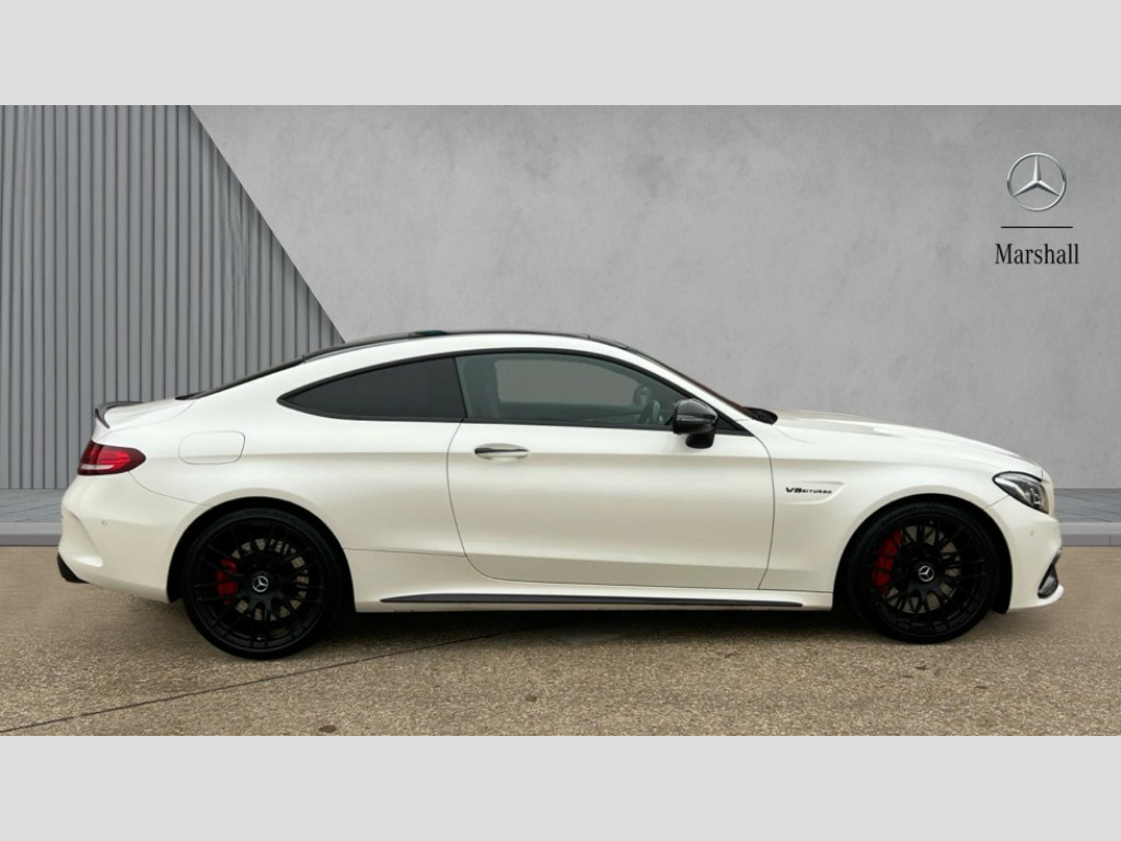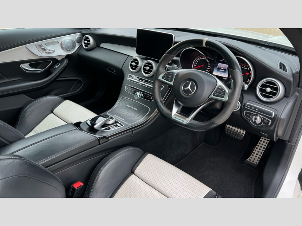 Mercedes-Benz C Class C63 S Premium 2dr Auto 8.4" high resolution display, Active park assist with parktronic system, AMG instrument cluster, Attention assist, Bluetooth interface for hands free telephone, Collision prevention assist plus, COMAND online nav with colour display, radio/CD/DVD/MP3, SD card, 10GB music, Emergency Call system, speed limit assist, linguatronic voice control, DYNAMIC SELECT with a choice of driving modes (ECO, Comfort, Sport, Sport+ and Individual), Instrument cluster with 5.5-inch TFT multi-function display, Multi function trip computer, Outside temperature gauge, Remote boot release, Service indicator (ASSYST), Speed sensitive steering, 66 litre fuel tank, AMG rear axle limited slip differential lock, AMG Ride Control sports suspension, 2 USB ports, Burmester surround sound system, DAB digital radio module, Frontbass loudspeakers, Steering column mounted multifunction controls, Adaptive brake lights, AMG boot lid spoiler in body colour, AMG front, rear apron and side skirts, AMG performance exhaust system, Auto dimming driver's door mirror, Auto dimming rear view mirror, Body coloured bumpers, Electric adjustable/heated/folding door mirrors, Electric front sliding and fixed rear panoramic glass sunroof, Electric windows one touch open/close, Green tinted glass, Heated windscreen washers, Intelligent LED headlight system with active Light System, cornering light function, Adaptive High Beam Assist and blue LED locator lighting, LED daytime running lights, LED tail lights, Rain sensor windscreen wipers, Side windows surround in polished aluminium, 2 cupholders in front centre console, 2 rear head restraints, 3 spoke AMG steering wheel in Nappa leather/Dinamica, 4-way lumbar support for drivers seat, 4-way lumbar support for front passenger seat, 40:20:40 split folding rear seats, Advanced multicolour ambient light and LED interior light, AMG floormats, AMG illuminated door sills, AMG performance seats, Artico man-made leather dashboard and beltline with contrast stitching, Auto dual-zone climate control system, Auto Mercedes-Benz child seat recognition sensor, Door courtesy lamps, Electric front seats, Electric height adjustable front seats, Electric height/reach adjustable steering column, Front centre armrest with storage compartment, Front footwell illumination, Heated front seats, Illuminated front/rear door handle recesses, Illuminated glovebox, Isofix rear child seat fastenings, LED reading lights, Nappa leather upholstery, Sports pedals with stainless steel surfaces and rubber studs, Steering wheel gearshift paddles, Sunvisors with illuminated vanity mirrors, Driver's pack - C63 AMG, Exclusive pack - C class, Memory pack - C Class, Stowage space pack - C Class, 2 rear seatbelts, ABS + BAS, Active bonnet, Adaptive brake system, Drivers knee airbag, Drivers pelvis airbag, Dual stage driver/passenger airbags, Electronic parking brake, ESP with ASR, Front side airbags, Grey seatbelts, Hill hold control, Hill start assist, Red brake calipers, Tyre pressure monitoring system, Warning triangle and first aid kit, Window airbags, Alarm system/interior protection/immobiliser, Chrome surround in electric key, Keyless entry and keyless start, Remote central locking, Tyre inflation kit