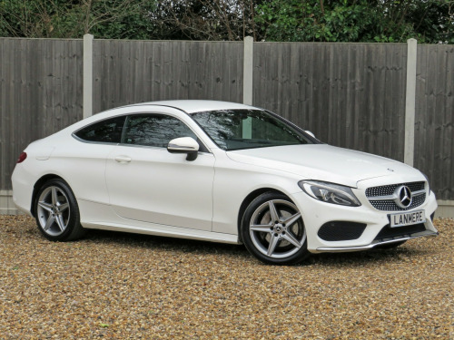 New arrival!, , Fabulous specification July 2016 16 reg Mercedes Benz C Class C220d AMG Line Bluetec Coupe 9 speed Automatic finished in stunning Polar White with Black leather upholstery. , Only two owners from new (the most recent lady owner since January 2019) having covered just 58,000 miles alongside seven Mercedes Benz service visits. , Specification includes, rear view camera, power folding exterior mirrors, front and rear Parktronic parking guidance with active park assist, heated seats, SD card Satellite Navigation preparation, nine speed automatic gearbox, AMG Line interior and exterior Sports Package, AMG Styling Package, Sports suspension, 18 inch AMG spoked alloy wheels, auto lights, rain sensor, cruise control, led running lights, ambient illumination, Audio 20 radio system with DAB radio tuner, Bluetooth telephone, Bluetooth audio and USB connection. Compartment Package, Parking Package, Mirrors Package, Theft Protection Package, Ergonomics Package, multi function three spoke Sports leather steering wheel, aluminium interior trim, Euro 6 rating, ULEZ compliant, £20 road tax banding, plus much much more!, , A lovely example finished in stunning Polar White, viewing is highly recommended. , New arrival, register your interest today!, , The Lanmere Motor Company is a family run business based in Colchester, Essex. We pride ourselves on supplying handpicked, great value, fully prepared vehicles at highly competitive prices. All our vehicles are HPi checked. Competitive finance options available, subject to status. National RAC warranty included for peace of mind. Part exchange welcome. Delivery service available. No hidden fees or admin charges! Buy with confidence. Viewing by appointment.