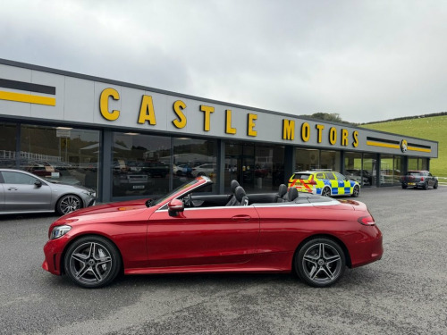 C300d AMG LINE Convertible Diesel Auto. Facelift model in Metallic Red with Black Artico leather and Suede, AMG Body and AMG wheels, heated seats plus Airscalf Neck warmers, widescreen Navigation, reversing camera, Multibeam LED headlights, fully digital dashboard display, adjustable driving modes, cruise and limiter plus more. Covered 54,500 miles freshly serviced before sale. Powerful 245PS yet economical diesel convertible 18in Alloy Wheels - AMG Aero 5-Twin-Spok, ABS - Anti-Lock Braking System, Acoustic Soft-Top - with Enhanced Climat, Active Bonnet - Pedestrian Safety Measur, Active Parking Assist including PARKTRON, Adaptive Brake Assist with Hold Function, Adaptive Brake Lamps, Agility Control - Sports Suspension - Lo, AIRCAP - Wind Deflector and Draught-Stop, AIRSCARF - Neck Level Heating System, AMG Bodystyling - Front and Rear Apron a, Anti-Theft Protection Package, ATTENTION Assist, Audio 20 CD, Automatic Child Seat Recognition Sensor, Automatic Seat-Belt Presenter for Driver, Brake Calipers - with Mercedes-Benz Lett, Central Locking with Interior Switch - A, Collision Prevention Assist Plus, DAB Digit