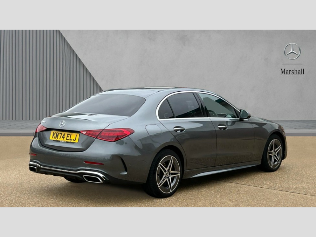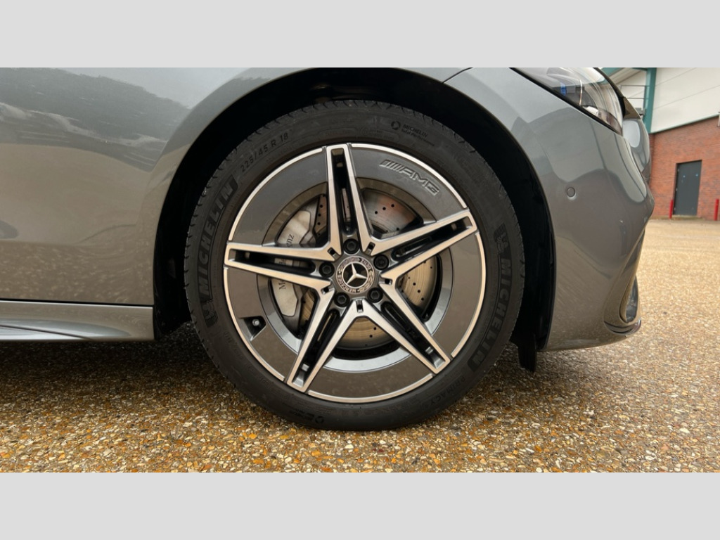 Mercedes-Benz C Class C300e AMG Line Premium 4dr 9G-Tronic 11.9" high resolution multimedia colour display, 12.3" digital instrument cluster display, Acoustic ambient protection, Active blind spot assist, Active brake assist plus, Active lane keeping assist, Attention assist, Cruise control with speedtronic variable speed limiter, DYNAMIC SELECT with a choice of driving modes (Comfort, ECO, Sport, Sport+, Individual), E-call, Extended MBUX functions, Finger print sensor, Fluorescent jacket for driver, MBUX augmented reality for navigation, MBUX navigation premium, MBUX voice control activated by keywords "Hey Mercedes", Mercedes connect me, Mercedes me remote services, Outside temperature gauge, Pre-installation for digital key transfer, Remote boot release, Service indicator (ASSYST), Smartphone integration, Speed limit assist, Sports direct steer speed sensitive steering, Status display for rear seat belts in instrument cluster, Traffic sign assist, Wireless charging system for mobile devices, 11 kW AC onboard charger, 50l fuel tank with increased capacity, 5m charging cable for household socket (mode 2), 5m charging cable for wall box/public charging stations(mode 3), 9G TRONIC 9 speed automatic transmission, Agility control sports suspension and lowered by 15 mm, Petrol Particulate Filter, Sporty engine sound system, DAB Digital radio, MBUX multimedia system, Adaptive brake lights, Adaptive high beam assist plus, AMG body styling front apron, rear apron and side skirts, AMG front bumper with sporty air intakes and chrome elements, AMG rear bumper with high gloss chrome elements, AMG side skirts in vehicle colour, B-pillar trim in glossy black, Body coloured bumpers, Body coloured door mirrors, Chrome beltline trim, Daytime running lights, Digital light LED headlamps, Electric windows with one touch opening/closing and obstruction sensors, Electrically adjustable and heated door mirrors, Green tinted glass, Heat insulating dark tinted glass, Illuminated front door sill panels, LED Indicators, LED tail lights, LED third brake light, Noise acoustic glass, Powerdomes on bonnet, Privacy glass, Radiator diamond grille with integrated Mercedes Benz star and louvre silver with chrome pins, Radio aerial integrated into rear window, Rain sensor with automatic windscreen wiper activation, Rear boot, Rear side wing doors, Two visible exhaust pipes integrated into rear bumper, 3 seat bench in 2nd row, 3 spoke flattened bottom AMG multifunction steering wheel in black nappa leather with chrome inserts and perforated leather in grip area, 40:20:40 split folding rear bench seat, Ambient lighting premium, AMG sports seats, Artico man-made leather upholstery, Audio and onboard settings control on multifunction steering wheel, Auto Mercedes-Benz child seat recognition sensor, Black air vents with silver chrome elements, Black floor mats with AMG lettering, Black roof liner, Door trim elements high gloss black with silver chrome surroundings and switches, Double cupholder in centre console, Electrically height/reach adjustable steering column, Folding rear seat backrest, Front and rear head restraints, Front centre armrest with storage compartment, Gearshift paddles on steering wheel, Heated front seats, Illuminated door sills with Mercedes Benz lettering, Illuminated glove compartment stowage, Overhead control unit in high gloss black, Rear top tether child seat ISOFIX attachment, Single front passenger seat, Sports pedals with stainless steel surfaces and rubber studs, Sunvisors with illuminated vanity mirrors, THERMATIC 2 zone automatic climate control, Interior lighting package - C Class, Memory package - C Class, Mirror pack - C Class, Parking package with 360 degree camera - C Class, Seat comfort pack - C Class, Stowage space pack - C Class, USB package plus - C Class, 3 rear 3 point seatbelts, Active bonnet pedestrian safety measure which detects an impact and raises bonnet, Adaptive brake system with HOLD function and brake drying in the wet, Anti-lock braking system (ABS), Black seat belts, Brake calipers with Mercedes-Benz lettering + perforated front brake discs, Child proof door locks, Drivers knee airbag, Drivers pelvis airbag, Dual stage driver/passenger airbags, Electric parking brake, Electronic Stability Programme (ESP), Front centre airbag between driver and front passenger seats, Front side airbags, Larger brake discs on front axle, Rear seatbelt warning indicator, Sports braking system, Tyre pressure monitoring system, Warning triangle and first aid kit, Window airbags for driver, front passenger and rear passenger, Central locking with interior switch, automatic locking and crash sensor with emergency opening function, Chrome surround in electric key, Dashcam, Keyless Go, URBAN GUARD vehicle protection (Thatcham Category 1) consisting of break-in, anti-theft alarm system (ATA),interior monitoring and tow-away protection, Artico man-made leather dashboard with contrast stitching, Centre console trim in metal weave, 18" AMG 5 spoke design aerodynamically optimised alloy wheels painted in tantalite grey with high sheen finish, Noise reduced tyre with foam absorber, Summer tyres, TIREFIT with tyre inflation compressor