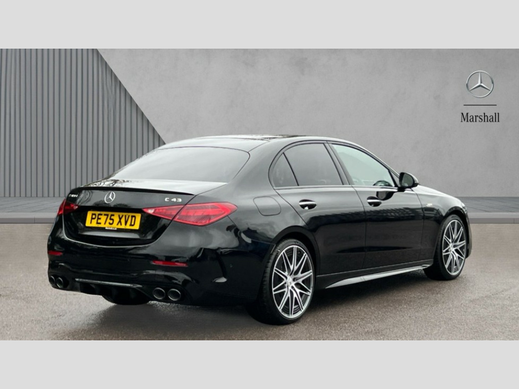 Mercedes-Benz C Class C43 [421] 4Matic Night Ed Premium + 4dr 9G-Tronic 11.9" high resolution multimedia colour display, 12.3" digital instrument cluster display, AMG DYNAMIC SELECT with a choice of driving modes (Slippery, Comfort, Sport, Sport+, Individual), Attention assist, E-call, Extended MBUX functions, Finger print scanner, Fluorescent jacket for driver, Hard disc navigation, Head up Display, MBUX augmented reality for navigation, MBUX navigation premium, Outside temperature gauge, Rear axle steering, Remote services, Service indicator (ASSYST), Smartphone integration, Sports direct steer speed sensitive steering, Status display for rear seat belts in instrument cluster, Traffic sign assist, Wireless charging system for mobile devices, 66 litre fuel tank, 9G TRONIC 9 speed automatic transmission, AMG Ride Control suspension, Petrol Particulate Filter, Suspension with adaptive damping system, Burmester 3D surround sound system with sound personalisation, DAB Digital radio, MBUX multimedia system, Adaptive brake lights, Adaptive high beam assist plus, AMG body styling front apron, rear apron and side skirts, AMG fuel cap, AMG Real Performance Sound, AMG spoiler lip in body colour, Body coloured bumpers, Digital light LED headlamps, Electric panoramic glass sunroof, Electric windows with one touch opening/closing and obstruction sensors, Electrically adjustable and heated door mirrors, Flared wheel arches, High gloss black door mirror housing, LED daytime running lights, LED Indicators, LED tail lights, LED third brake light, Mercedes AMG exterior, Noise acoustic glass, Rain sensor with automatic windscreen wiper activation, Rear boot, Rear side wing doors, 3 seat bench in 2nd row, 40:20:40 split folding rear bench seat, Ambient lighting premium, Ambient lighting with projection of brand logo, AMG floor mats, AMG illuminated door sills, AMG Performance steering wheel in nappa leather, AMG steering wheel buttons, Auto Mercedes-Benz child seat recognition sensor, Black roof liner, Boot lid convenience closing feature, Double cupholder in centre console, Electrically height/reach adjustable steering column, Folding rear seat backrest, Front and rear head restraints, Gearshift paddles on steering wheel, Heated front seats, Mercedes AMG interior, Multicontour and climatised front seats, Rear top tether child seat ISOFIX attachment, Single front passenger seat, Sports seats, Stowage glove compartment, Sunvisors with vanity mirrors, THERMATIC automatic climate control, AMG exterior night pack - C Class, Interior light package - C Class, Keyless go comfort package - C Class, Memory package - C Class, Mirror package - C Class, Parking package with 360 degree camera - C Class, Stowage space pack - C Class, USB package plus - C Class, 3 rear 3 point seatbelts, Active bonnet pedestrian safety measure which detects an impact and raises bonnet, Adaptive brake system with HOLD function and brake drying in the wet, AMG high performance braking system, Anti-lock braking system (ABS), Child proof door locks, Drivers knee airbag, Drivers pelvis airbag, Dual stage driver/passenger airbags, Electric parking brake, Electronic Stability Programme (ESP), Front and rear window airbags, Front centre airbag between driver and front passenger seats, Front side airbags, Silver brake callipers, Tyre pressure monitoring system, Warning triangle and first aid kit, Antitheft alarm system, Interior monitoring system and Increased antitheft protection, Central locking with interior switch, automatic locking and crash sensor with emergency opening function, Chrome surround in electric key, Dashcam, Urban guard vehicle protection plus, Carbon fibre trim with centre console in high gloss black, Dashboard, instrument panel and beltlines in ARTICO man made leather in nappa look, 20" AMG 10 twin spoke light alloy wheels aerodynamically optimised in tanatalite grey with high sheen finish, TIREFIT with tyre inflation compressor